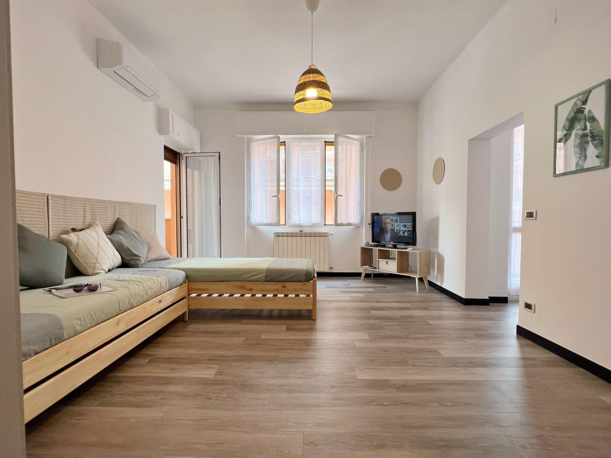 House Nena is a bright and modern flat located in Arenzano a few steps from the beach. The recently renovated accommodation offers a bright and cosy atmosphere with a contemporary design and elegant details. It comprises a living room with two single beds joined to form a relaxation corner, an independent kitchen with dining area and balcony, a double bedroom, a twin bedroom and a bathroom with shower and bidet. The apartment enjoys every comfort such as air conditioning and Wi-Fi and has 3 balconies. Throughout the flat the lighting is well thought out, the walls are painted in neutral colours or pastel shades, giving a sense of calm and brightness to the rooms. House Nena is very convenient to transport and services. Its proximity to Arenzano train station (about 1 km) makes it an ideal starting point for discovering the beauty of the Ligurian territory.