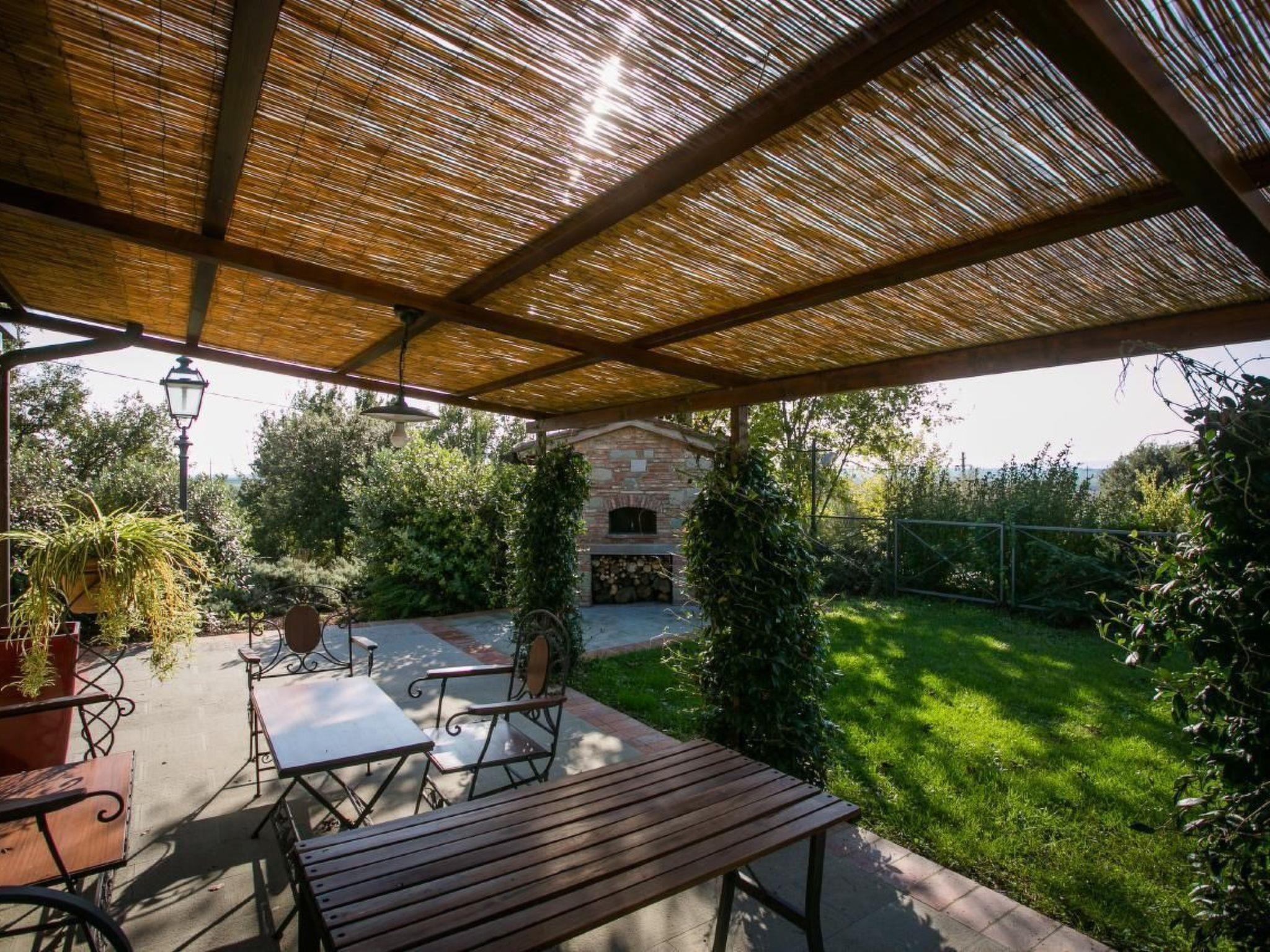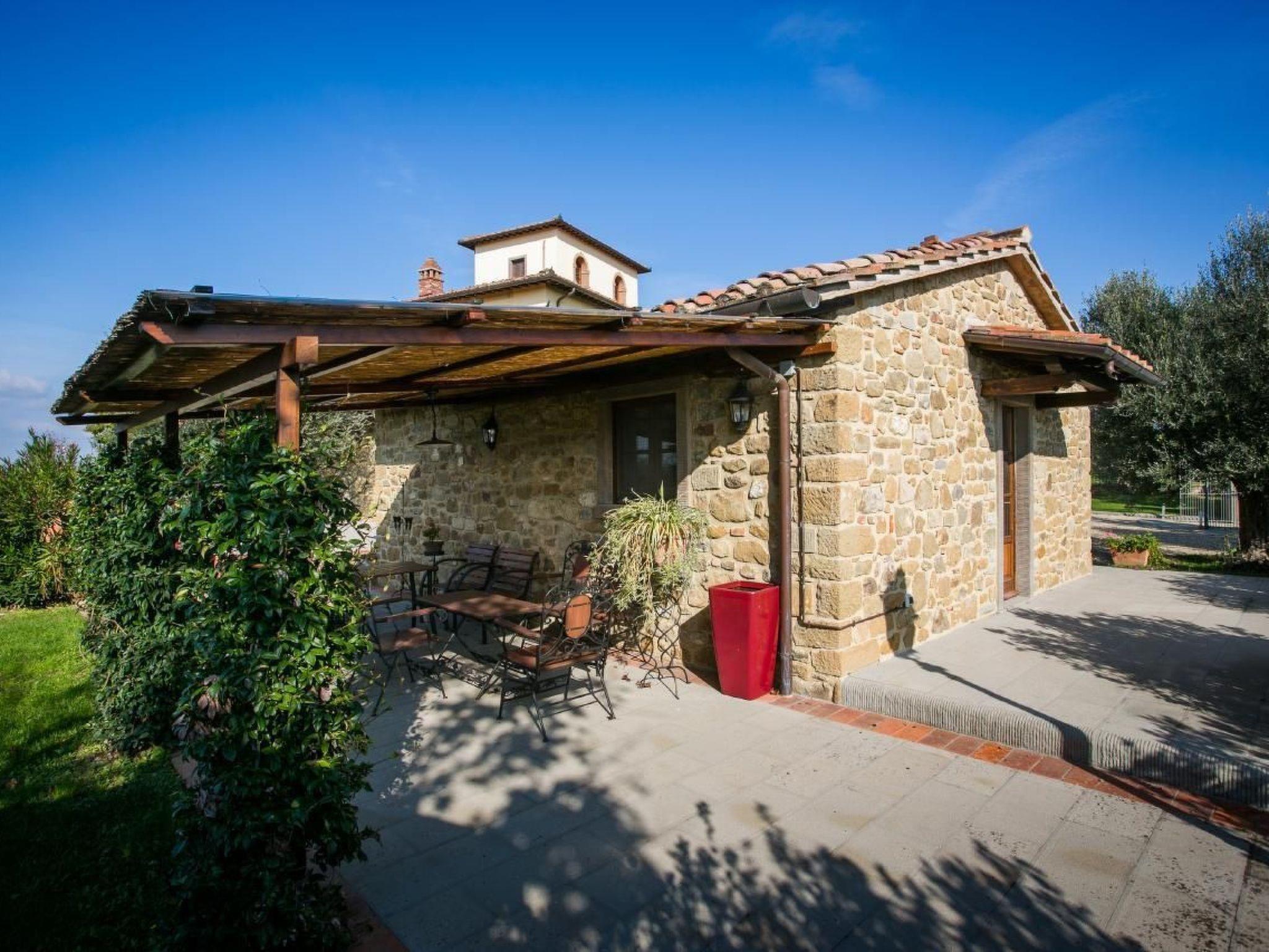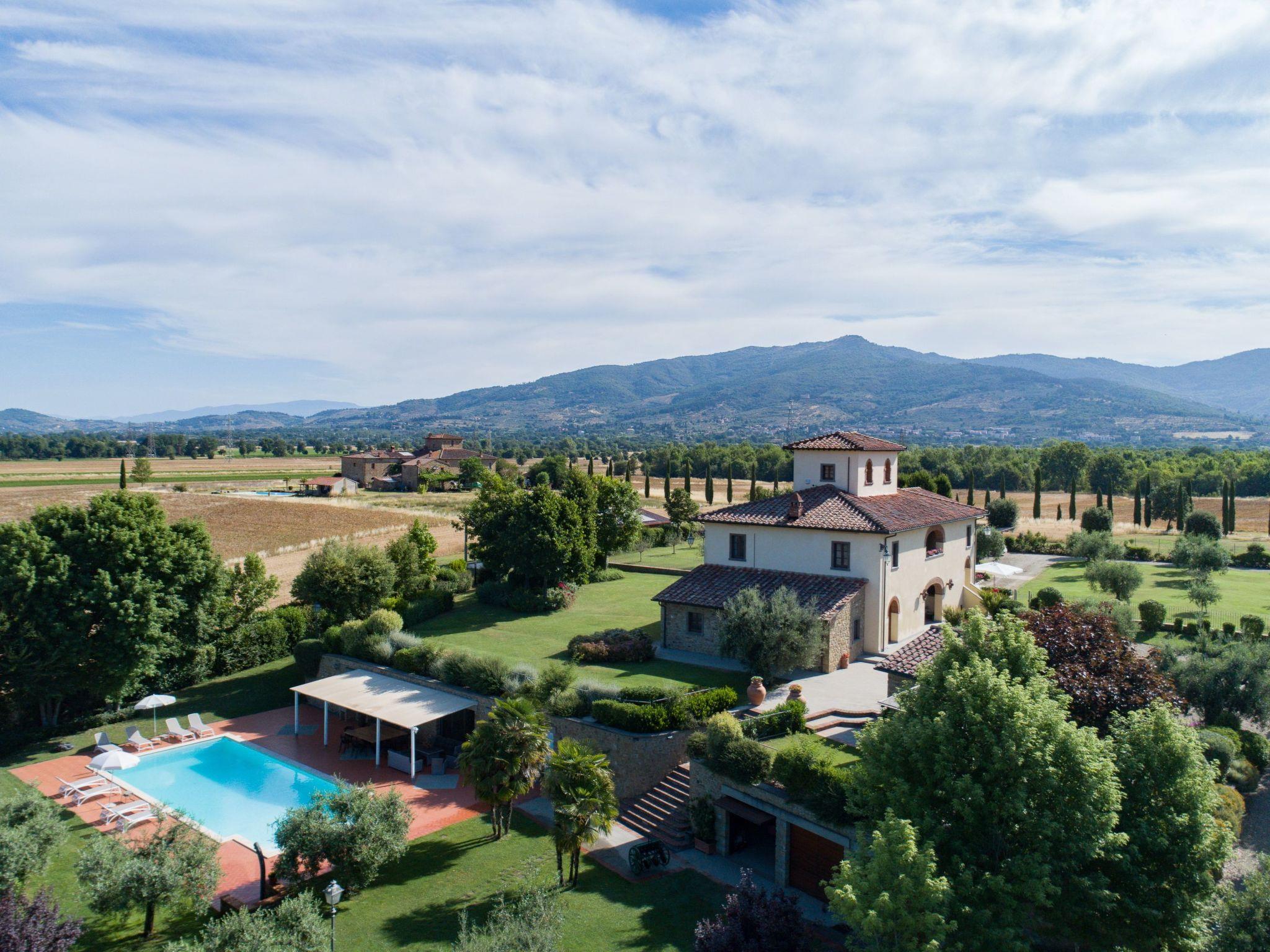 Villa Leopoldina, immersed in a wide Italian-style meadow with a breathtaking view on the countryside and the surrounding hills, is a splendid sample of Tuscan rural architecture, dating back to the reclamation of the Valdichiana, established in the 18th Century by Granduca Leopoldo di Lorena, after who the architectural style and the villa itself are named.The whole complex, which hosts a chapel still consacrated, has been recently restored according to the new "green" philosphy that provided it with a photovoltaic system designed to guarantee the independence from the energetic point of view. Building materials, pieces of furniture and accessories in contemporary style make this villa a modern and elegant place: welcoming and comfortable, yet maintaining the authentic "taste" of the beautiful and majestic structure, untouched by time.The stone farmhouse: LeopoldinaThe ground floor boasts a spacious and elegant living room with stone fireplace and sitting area with sofas and satellite TV; magnificent dining room with large table ideal for groups up to 16 people; adjacent modern kitchen equipped with central island and up-to-date cooking devices. The floor is completed by a double bedroom with private bathroom, another bathroom with shower and laundry area. The first floor, used as sleeping area just like in the past, is accessible by both inner and outer staircase, the latter covered by a loggia. It is composed of two double bedrooms with private bathroom and two additional bedrooms, a double and a triple one, sharing a full bathroom with shower. In the Torre colombaia (the very top part of the house), which is another distinguishing feature of the Leopoldina architecture, there is a romantic double bedroom with private bathroom. Finally a triple bedroom with bathroom is located in the lovely stone annex.Garden and Pool:Inside the wide garden, guests can find the BBQ area, equipped with oven and grills; a gazebo where to enjoy al fresco meals overwhelmed by the smell of jasmine bushes and experience romantic sunsets in this part of countryside. The pool, equipped with solarium area and sunbeds can be reached both through the lovely staircase and the grassy ramp. Under the outer loggia it is possible to find a shadowed area with sofas and table where to eat open-air and an additional covered area equipped with kitchenette, fridge, sofas, TV, bathroom and dressing room. Villa Leopoldina is the perfect place for those who are looking for a relaxing though high quality holiday. The city centre is located just 10km away: there one can find services, museums, churches, monuments that worth a visit. Upon arrival, guests will be welcomed with a welcome basket with breakfast products.Short description 1Number of kitchens : 1SurroundingNearby sports facilities : Bike tours, Golf course, Indoor riding arena, Mountainbiking, Riding possibilitiesGarden and outdoorGarden facilities : Garden furniture provided, GrillOn-site leisure facilities : Outdoor swimming pool exclusive use, Solarium, Swimming poolService benefitsService facilities (may incur additional costs) : Breakfast, Chambermaid, Cleaning service during your stay, Cook, Shopping service before arrival