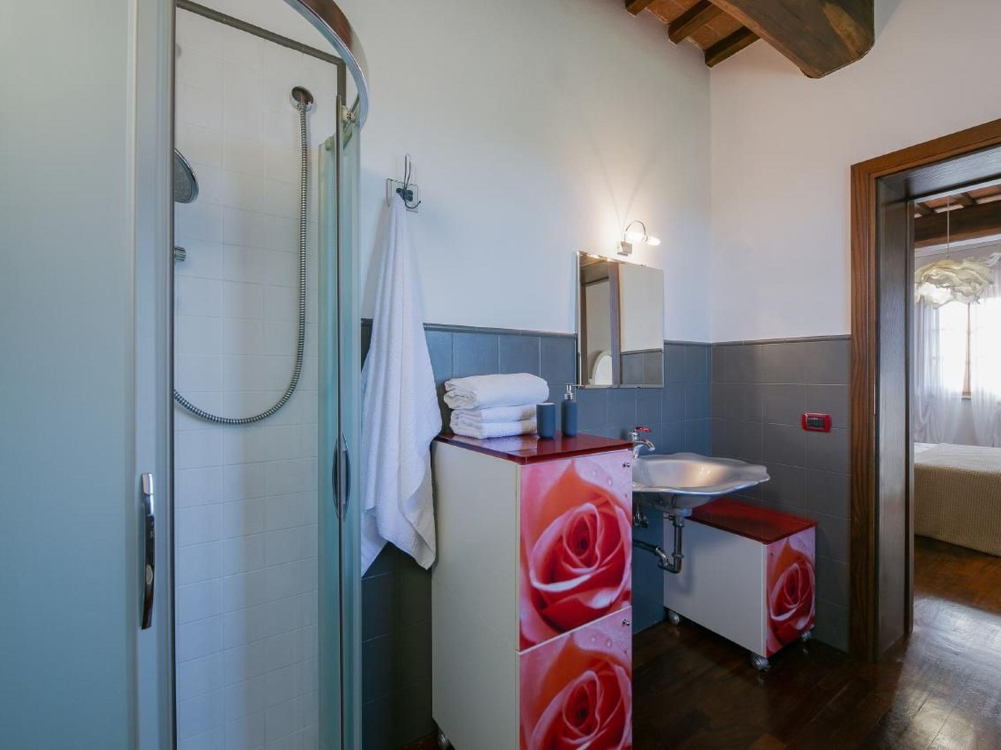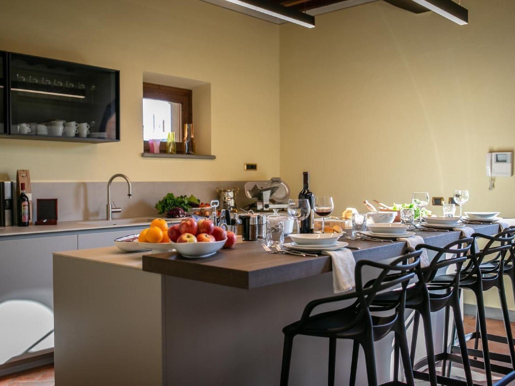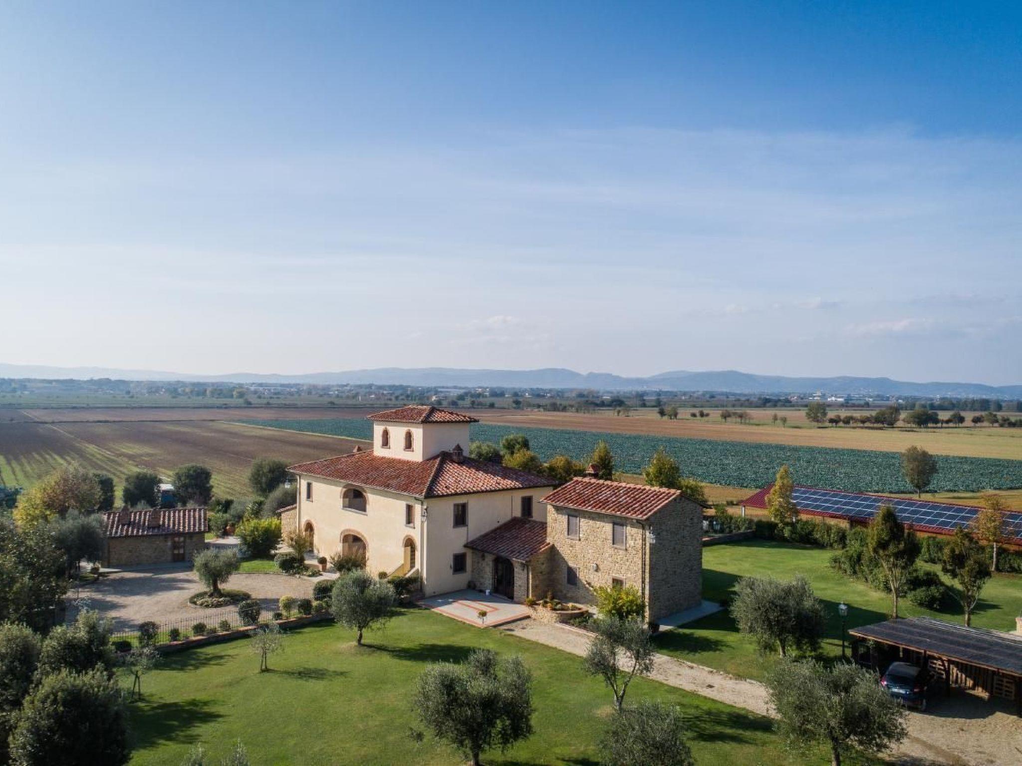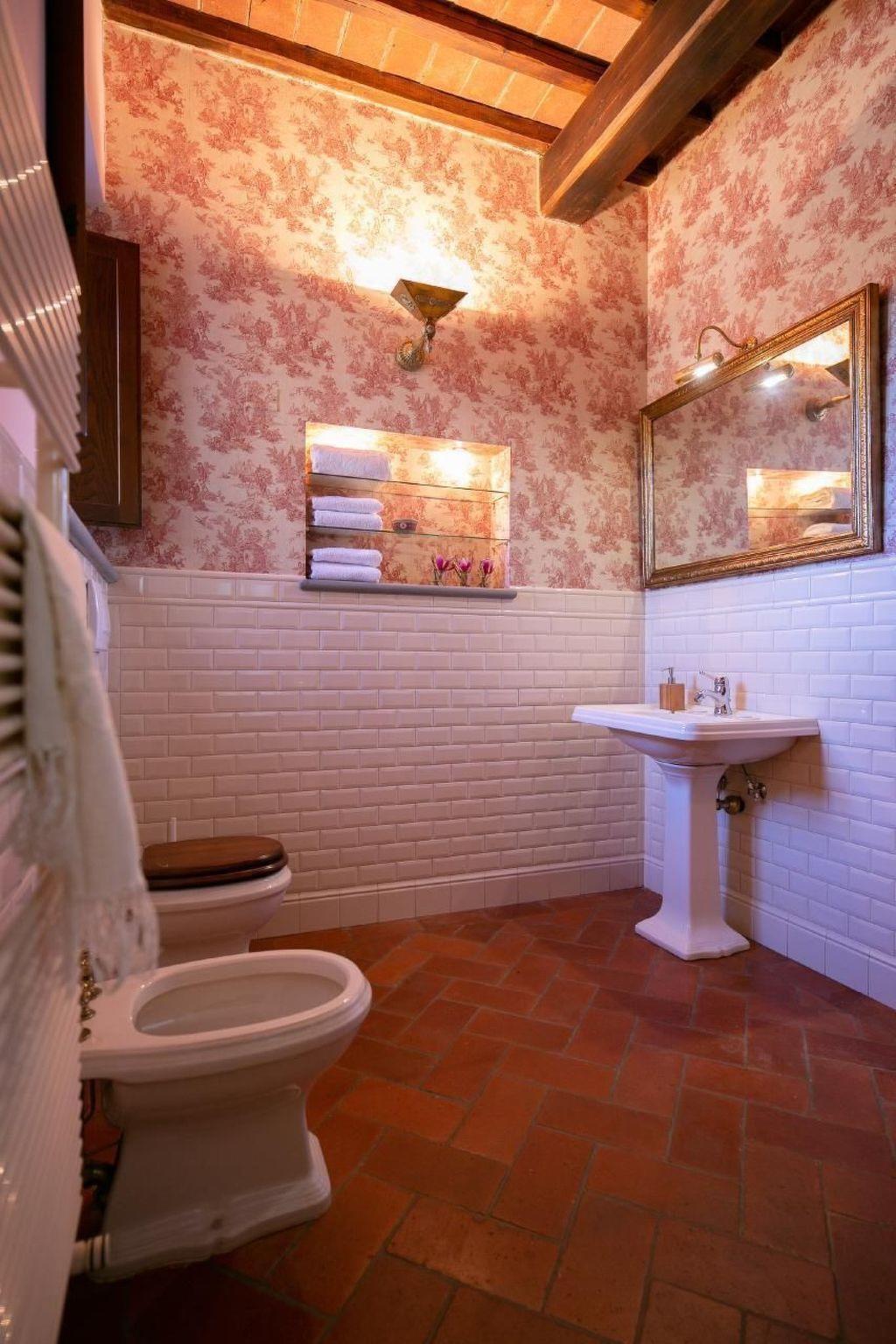 Villa Leopoldina, immersed in a wide Italian-style meadow with a breathtaking view on the countryside and the surrounding hills, is a splendid sample of Tuscan rural architecture, dating back to the reclamation of the Valdichiana, established in the 18th Century by Granduca Leopoldo di Lorena, after who the architectural style and the villa itself are named.The whole complex, which hosts a chapel still consacrated, has been recently restored according to the new "green" philosphy that provided it with a photovoltaic system designed to guarantee the independence from the energetic point of view. Building materials, pieces of furniture and accessories in contemporary style make this villa a modern and elegant place: welcoming and comfortable, yet maintaining the authentic "taste" of the beautiful and majestic structure, untouched by time.The stone farmhouse: LeopoldinaThe ground floor boasts a spacious and elegant living room with stone fireplace and sitting area with sofas and satellite TV; magnificent dining room with large table ideal for groups up to 16 people; adjacent modern kitchen equipped with central island and up-to-date cooking devices. The floor is completed by a double bedroom with private bathroom, another bathroom with shower and laundry area. The first floor, used as sleeping area just like in the past, is accessible by both inner and outer staircase, the latter covered by a loggia. It is composed of two double bedrooms with private bathroom and two additional bedrooms, a double and a triple one, sharing a full bathroom with shower. In the Torre colombaia (the very top part of the house), which is another distinguishing feature of the Leopoldina architecture, there is a romantic double bedroom with private bathroom. Finally a triple bedroom with bathroom is located in the lovely stone annex.Garden and Pool:Inside the wide garden, guests can find the BBQ area, equipped with oven and grills; a gazebo where to enjoy al fresco meals overwhelmed by the smell of jasmine bushes and experience romantic sunsets in this part of countryside. The pool, equipped with solarium area and sunbeds can be reached both through the lovely staircase and the grassy ramp. Under the outer loggia it is possible to find a shadowed area with sofas and table where to eat open-air and an additional covered area equipped with kitchenette, fridge, sofas, TV, bathroom and dressing room. Villa Leopoldina is the perfect place for those who are looking for a relaxing though high quality holiday. The city centre is located just 10km away: there one can find services, museums, churches, monuments that worth a visit. Upon arrival, guests will be welcomed with a welcome basket with breakfast products.Short description 1Number of kitchens : 1SurroundingNearby sports facilities : Bike tours, Golf course, Indoor riding arena, Mountainbiking, Riding possibilitiesGarden and outdoorGarden facilities : Garden furniture provided, GrillOn-site leisure facilities : Outdoor swimming pool exclusive use, Solarium, Swimming poolService benefitsService facilities (may incur additional costs) : Breakfast, Chambermaid, Cleaning service during your stay, Cook, Shopping service before arrival