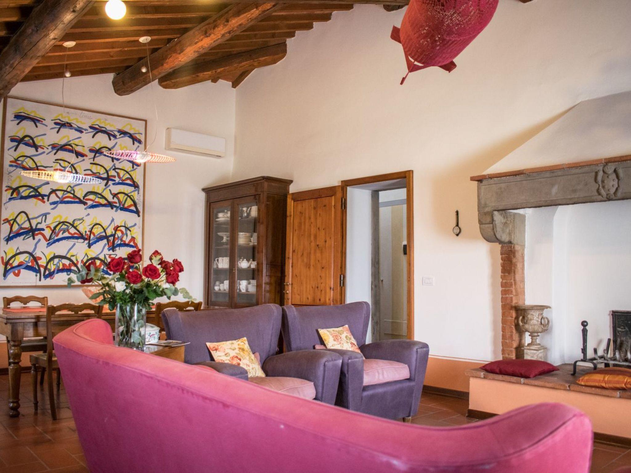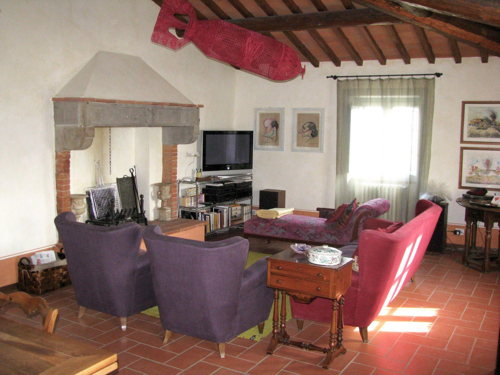 The flat is located on the first floor of a 19th-century Tuscan residence, just a few kilometres from the historical centre of Arezzo, which can be easily reached by car or by train, given the proximity of the facilities to a local station that leads directly to the central railway station. The flat is on one floor of about 110 square metres and consists of a large living room with an antique fireplace (not working), flat-screen TV, stereo system, three-seater sofa, two armchairs and a chaise longue; a fully equipped kitchen with cooker, oven, microwave oven, fridge with freezer, chest freezer, bottle-holder fridge and dining table with white marble top, storage room with shelves and washing machine; a double bedroom with bathroom with shower, a bedroom with French bed and bathroom with shower