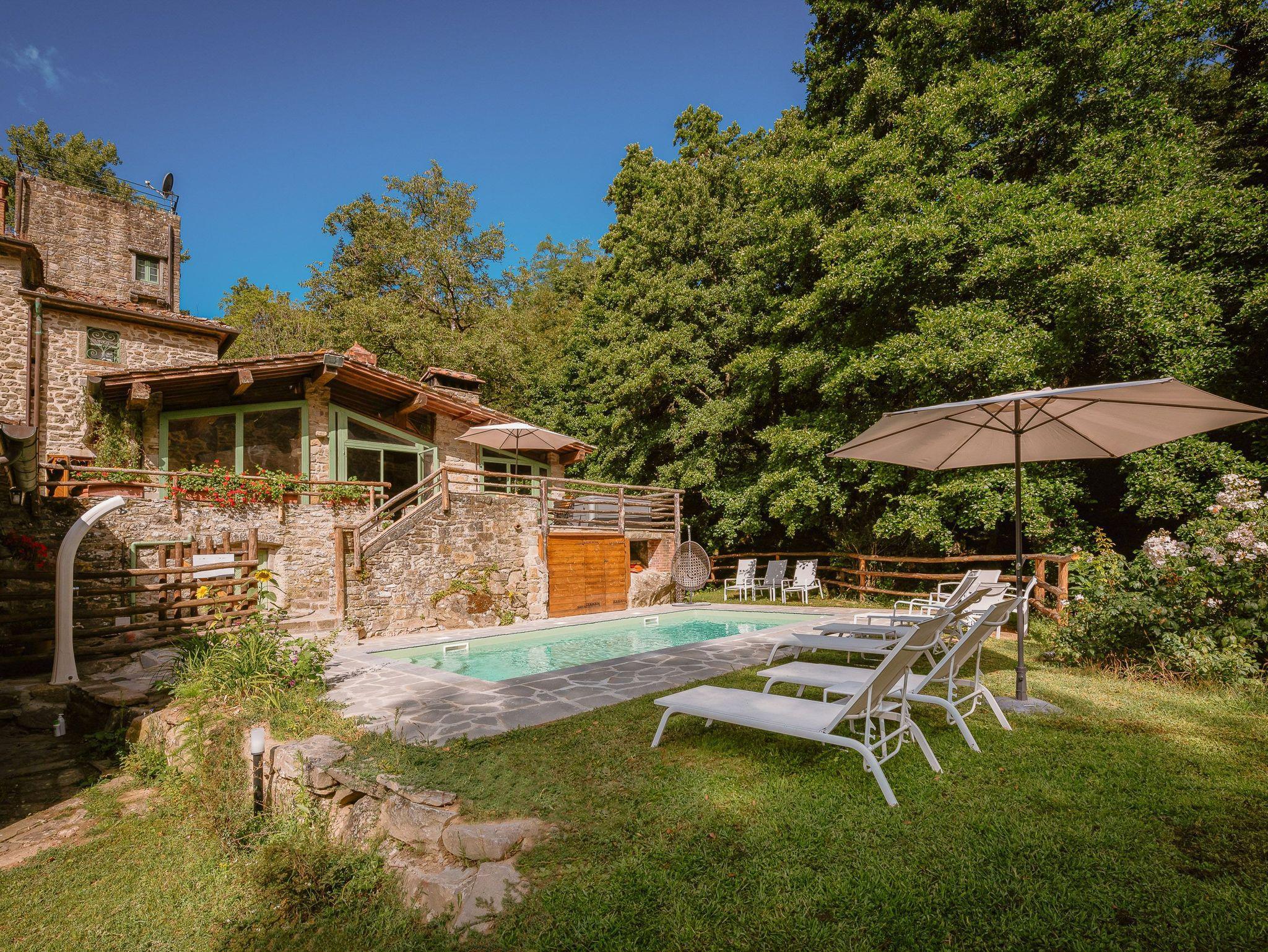 Das märchenhafte Anwesen erstreckt sich über ein 80.000 qm großes Grundstück, von dem 4 Hektar mit einem 2 Meter hohen Zaun ausbruchsicher geschlossen sind. Der große Pool auf dem Sonnendeck lässt die Herzen von Sonnenanbetern höher schlagen. Die kleinen Bächlein, die das Grundstück durchziehen, haben Trinkwasserqualität und sind bekannt für ihre Sauberkeit. Ein weiterer Swimmingpool mit Sonnenliegen befindet sich im vorderen Bereich des Hauses. Zahlreiche Hängematten wurden zwischen den Bäumen am Ufer angebracht, sodass jeder seinen persönlichen Ruheplatz finden kann. In den heißen Sommermonaten sorgt der hohe und dichte Baumbestand für ein angenehm kühles Klima. Der Bach fließt etwa 1000 Meter durch das gesamte Grundstück und bildet dabei zwei große natürliche Badebecken mit eigenen Wasserfällen, ideal zum Bauen von Staudämmen und zum sicheren Toben für Kleinkinder. Oberhalb des Hauses befindet sich ein großer Platz, der als Tennisplatz oder Volleyballfeld genutzt werden kann. Das Grundstück verfügt über sechs Parkplätze. Dank der etwa 100 cm dicken Wände benötigt die Casa nel Bosco keine Klimaanlage und bietet zu jeder Jahreszeit ein angenehmes Wohnklima.