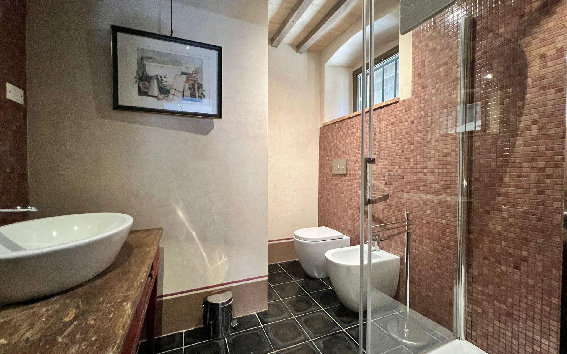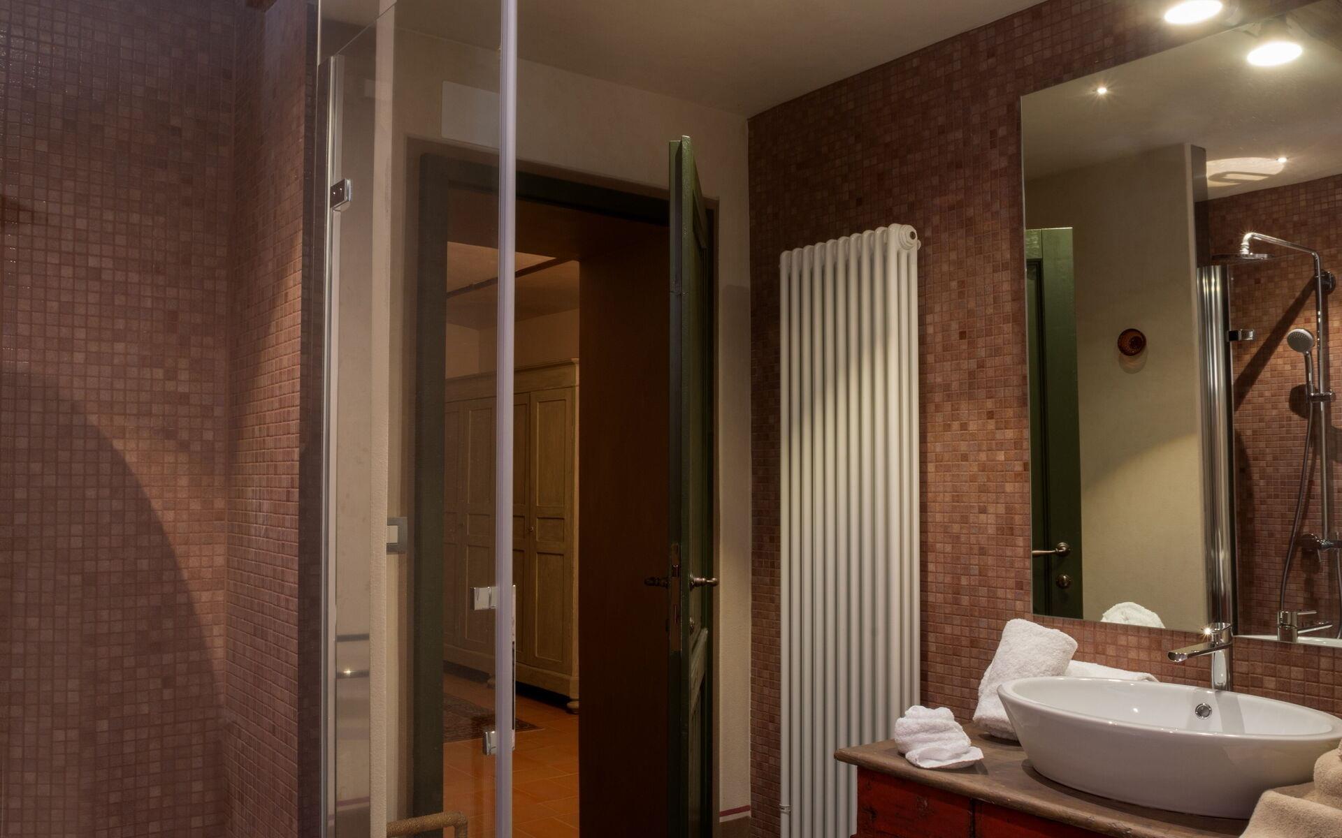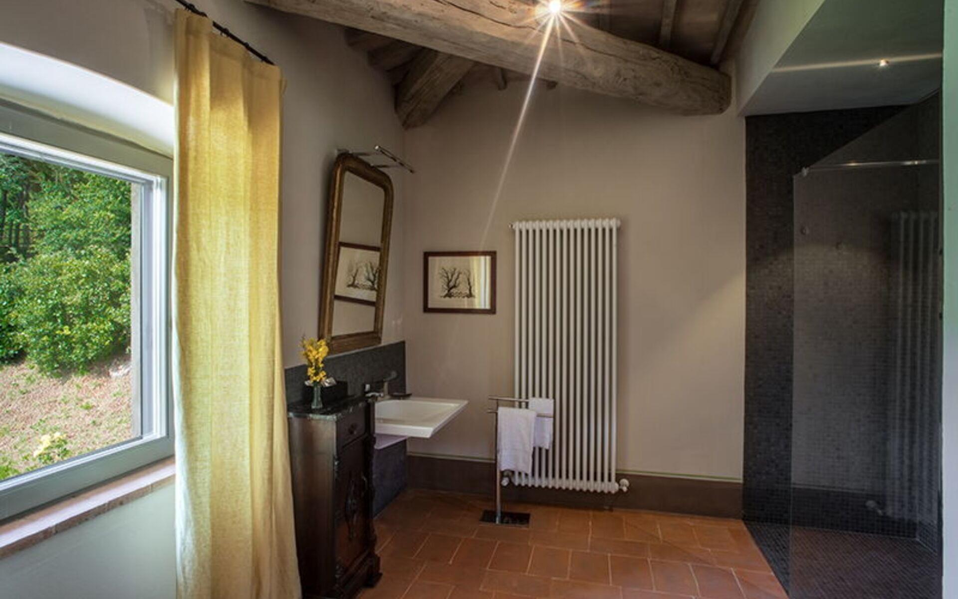 Von der offenen Loggia im Erdgeschoss gelangt man über eine Steintreppe in die geschlossene Loggia im ersten Stock, von der aus man auch im Winter einen herrlichen Blick auf das Tal und die Stadt Arezzo genießen kann.