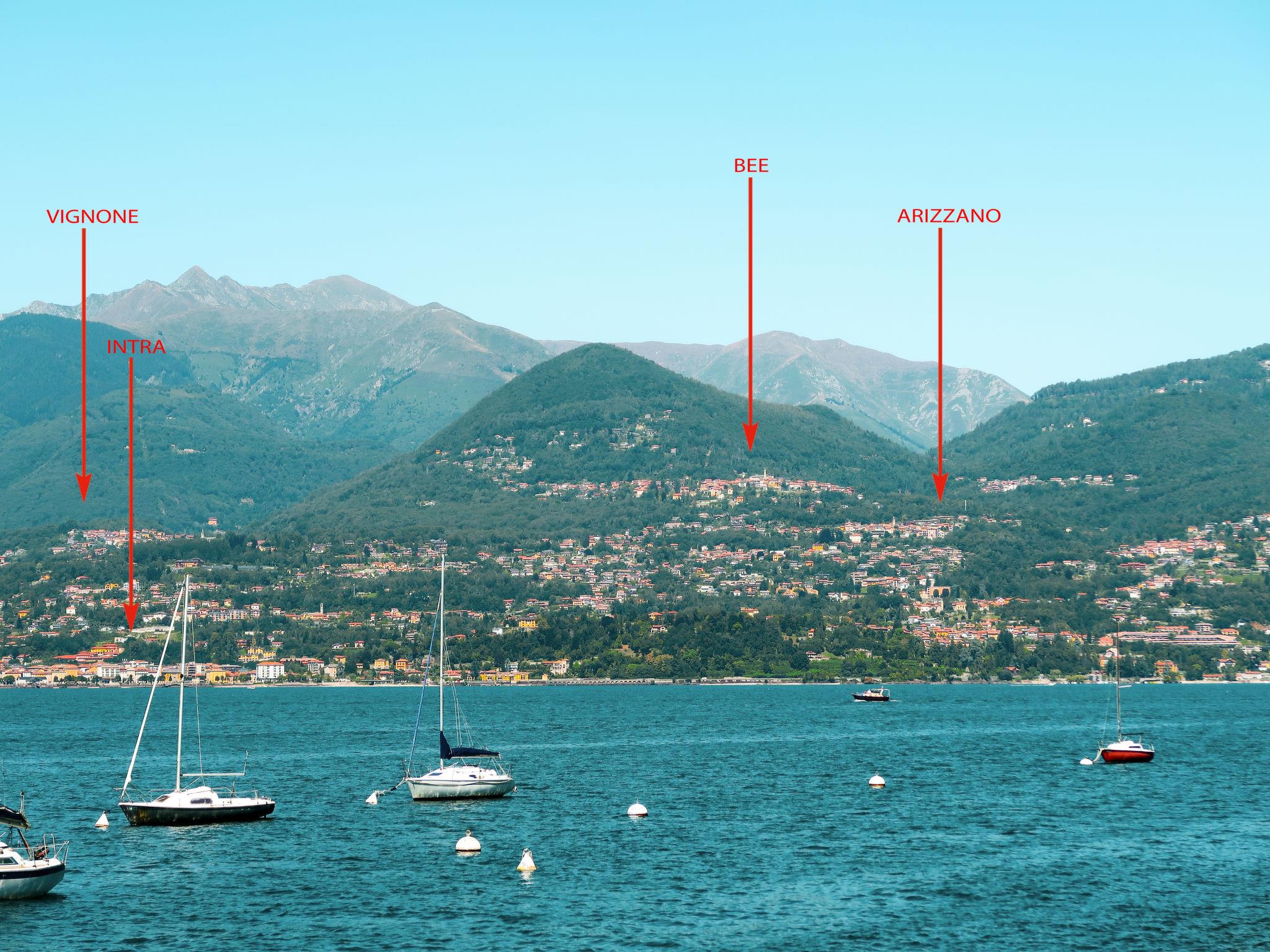 2-family house "Sky & Lake". 5 km from the centre of Verbania Intra, in an elevated position on a slope, 5 km from the lake. Private: garden (fenced) with lawn. Barbecue. Motor access to 50 m from the house. Stepped path (5 steps) to the house. Public parking 50 m. Supermarket 5 km, restaurant 700 m, bar 1.5 km, bus stop "arizzano" 500 m, railway station "verbania pallanza" 14.8 km. Children's playground 500 m. Nearby attractions: Albagnano Healing Meditation Centre 1.5 km. Please note: car recommended.