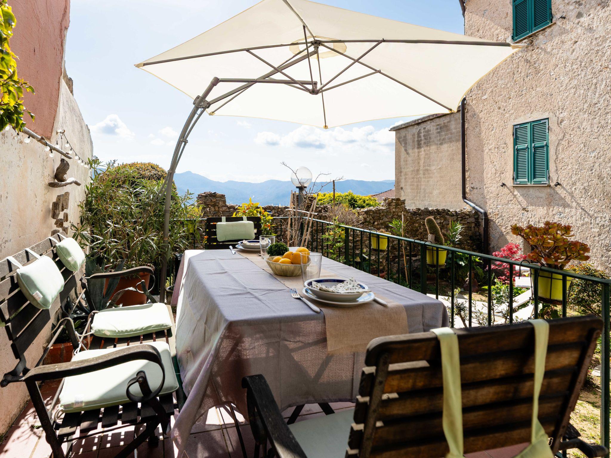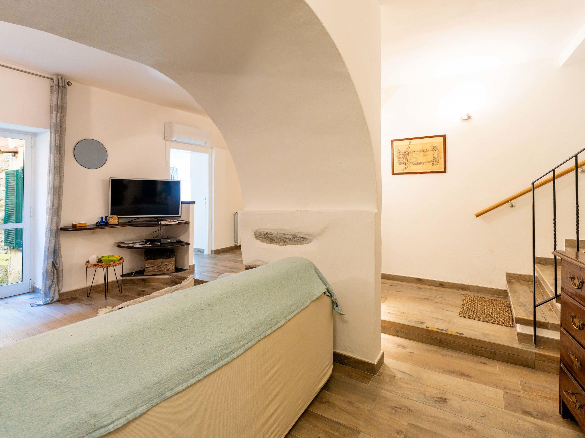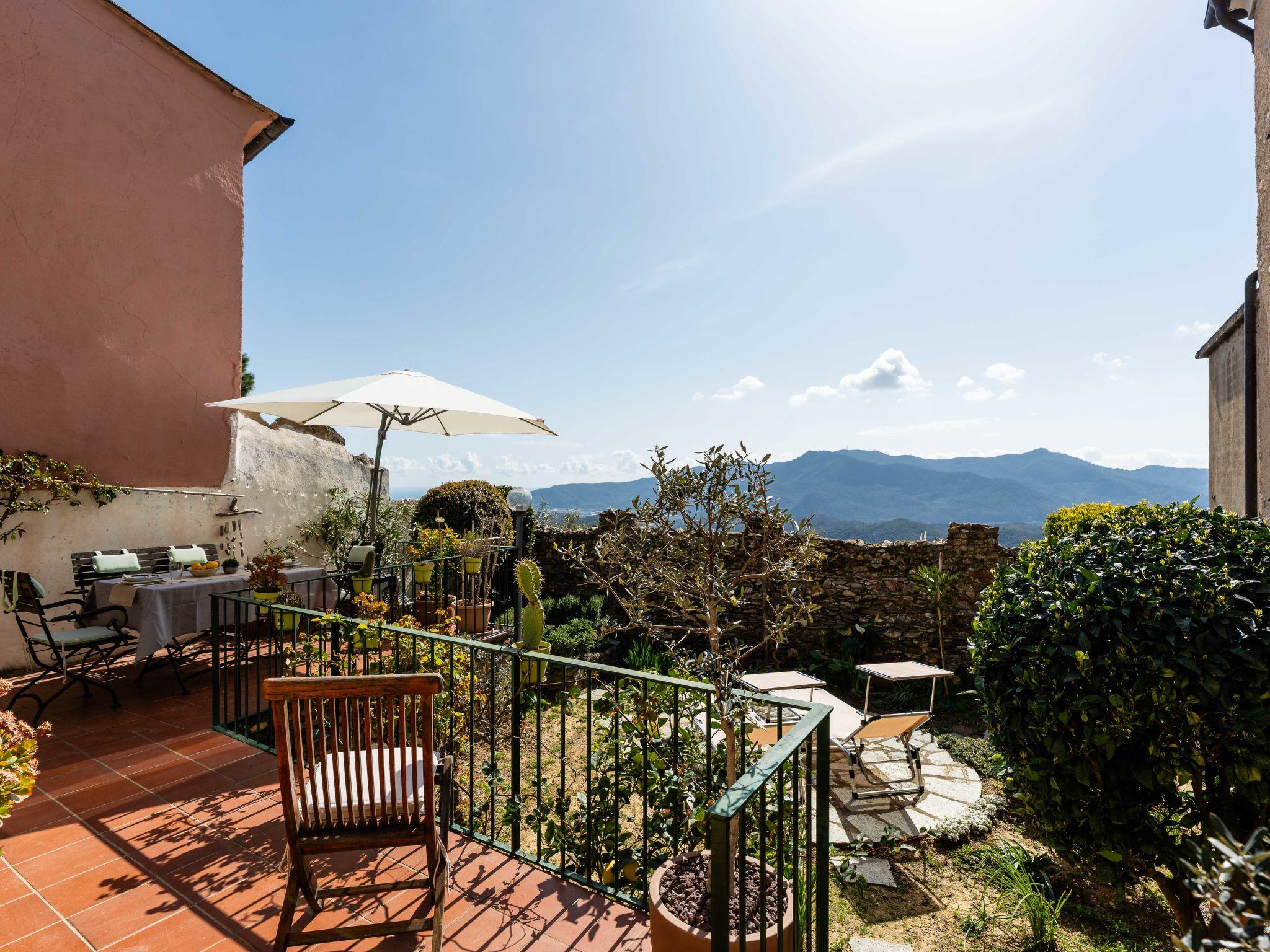 "Al Forte", 2-room apartment on the ground floor. Comfortable and rustic furnishings: living room, window onto the courtyard with 1 double sofabed and open-hearth fireplace (only for decoration), TV and air conditioning. Exit to the patio. 1 double bedroom. Exit to the terrace. Kitchen (oven, dishwasher, 2 induction hot plates, kettle, microwave, electric coffee machine) with dining table. Shower/bidet/WC. Gas heating (extra), air-conditioning, forced-air heating. Heating available only from 15.10. to 15.04. Natural stone floors. Terrace. Terrace furniture. Panoramic view of the sea and the mountains. Facilities: baby cot, hair dryer. Internet (WiFi, free). Please note: smoke alarm, fire extinguisher. IT009007C2YLLS6MGY