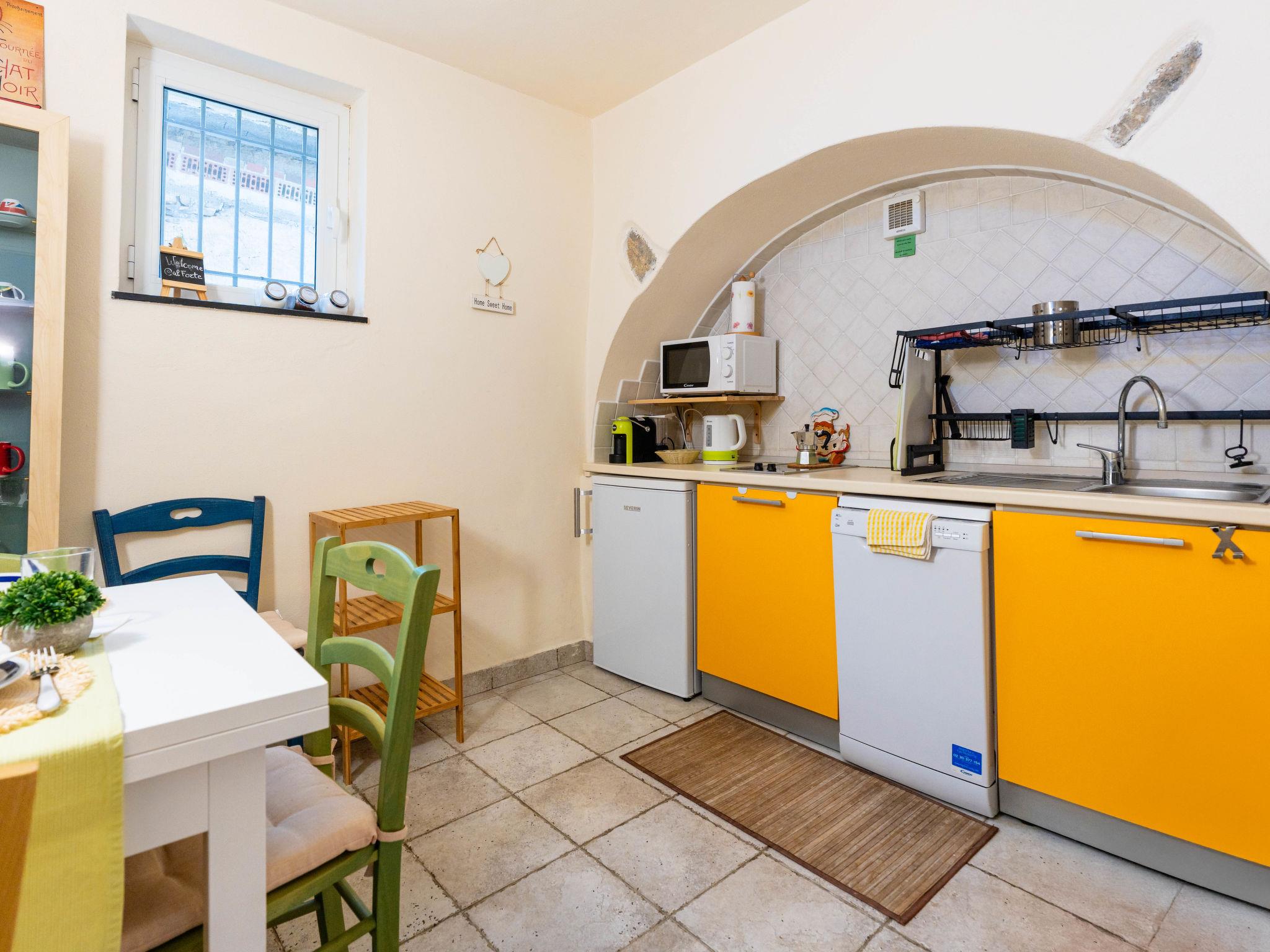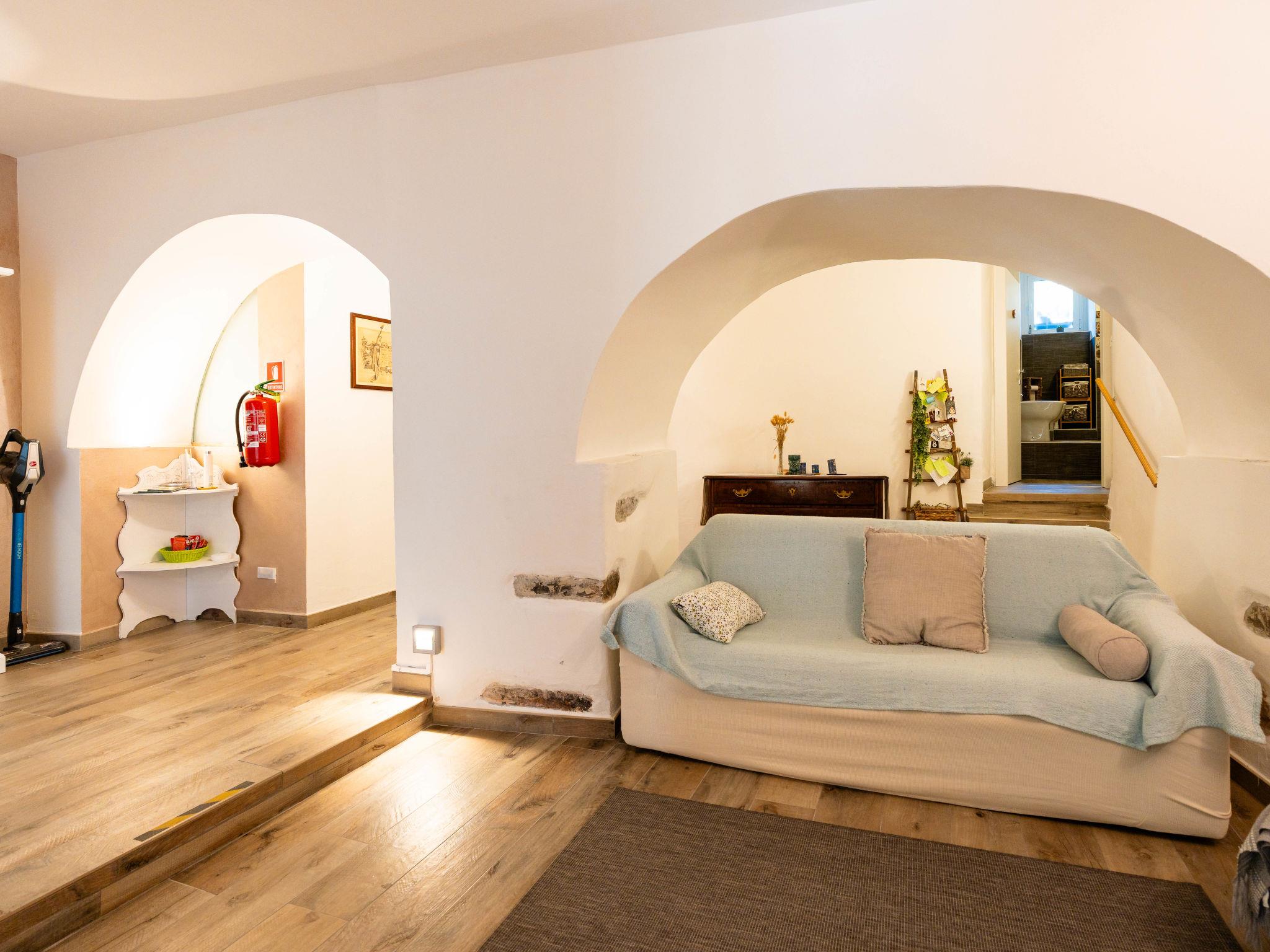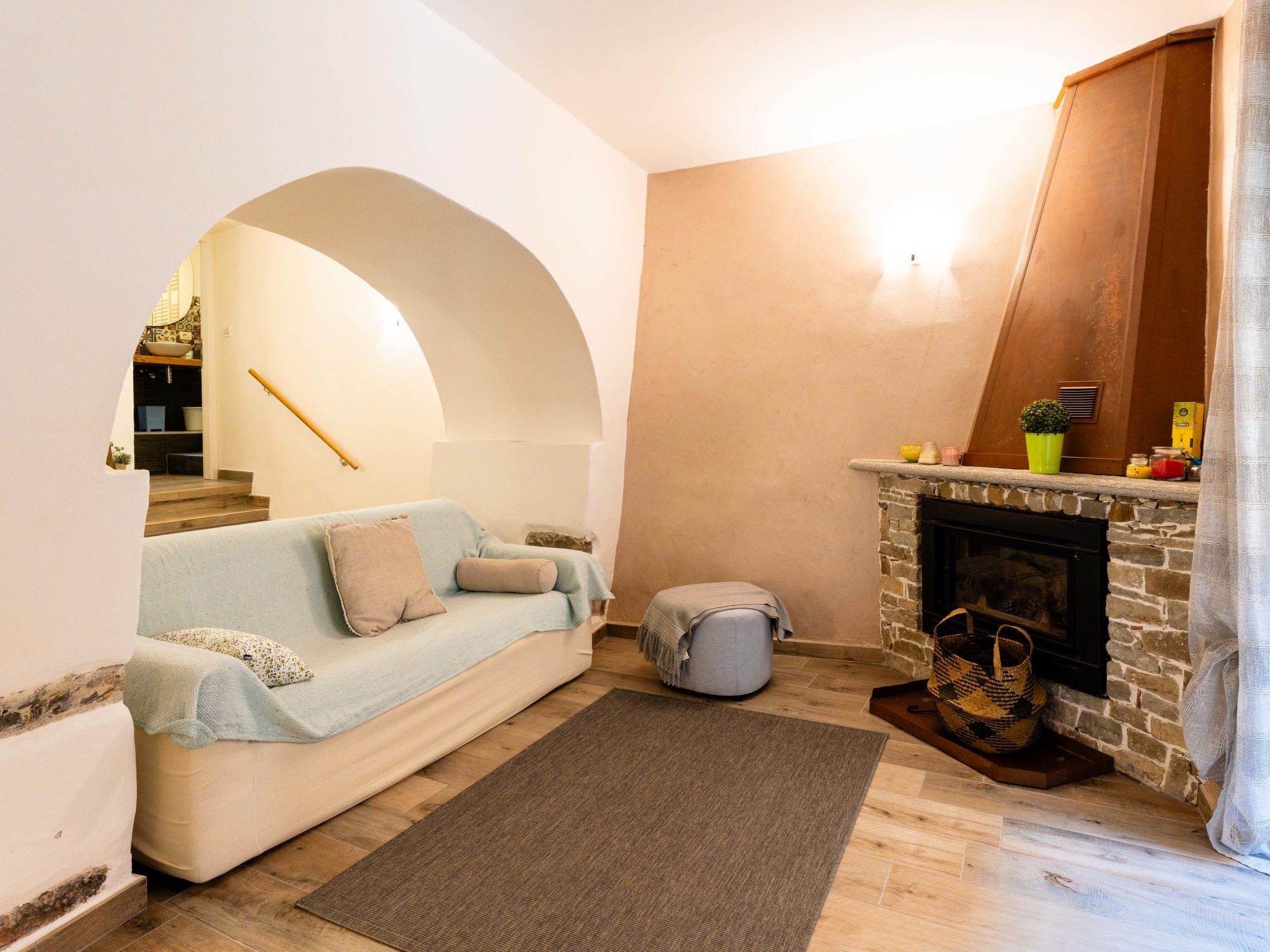 "Al Forte", 2-room apartment on the ground floor. Comfortable and rustic furnishings: living room, window onto the courtyard with 1 double sofabed and open-hearth fireplace (only for decoration), TV and air conditioning. Exit to the patio. 1 double bedroom. Exit to the terrace. Kitchen (oven, dishwasher, 2 induction hot plates, kettle, microwave, electric coffee machine) with dining table. Shower/bidet/WC. Gas heating (extra), air-conditioning, forced-air heating. Heating available only from 15.10. to 15.04. Natural stone floors. Terrace. Terrace furniture. Panoramic view of the sea and the mountains. Facilities: baby cot, hair dryer. Internet (WiFi, free). Please note: smoke alarm, fire extinguisher. IT009007C2YLLS6MGY