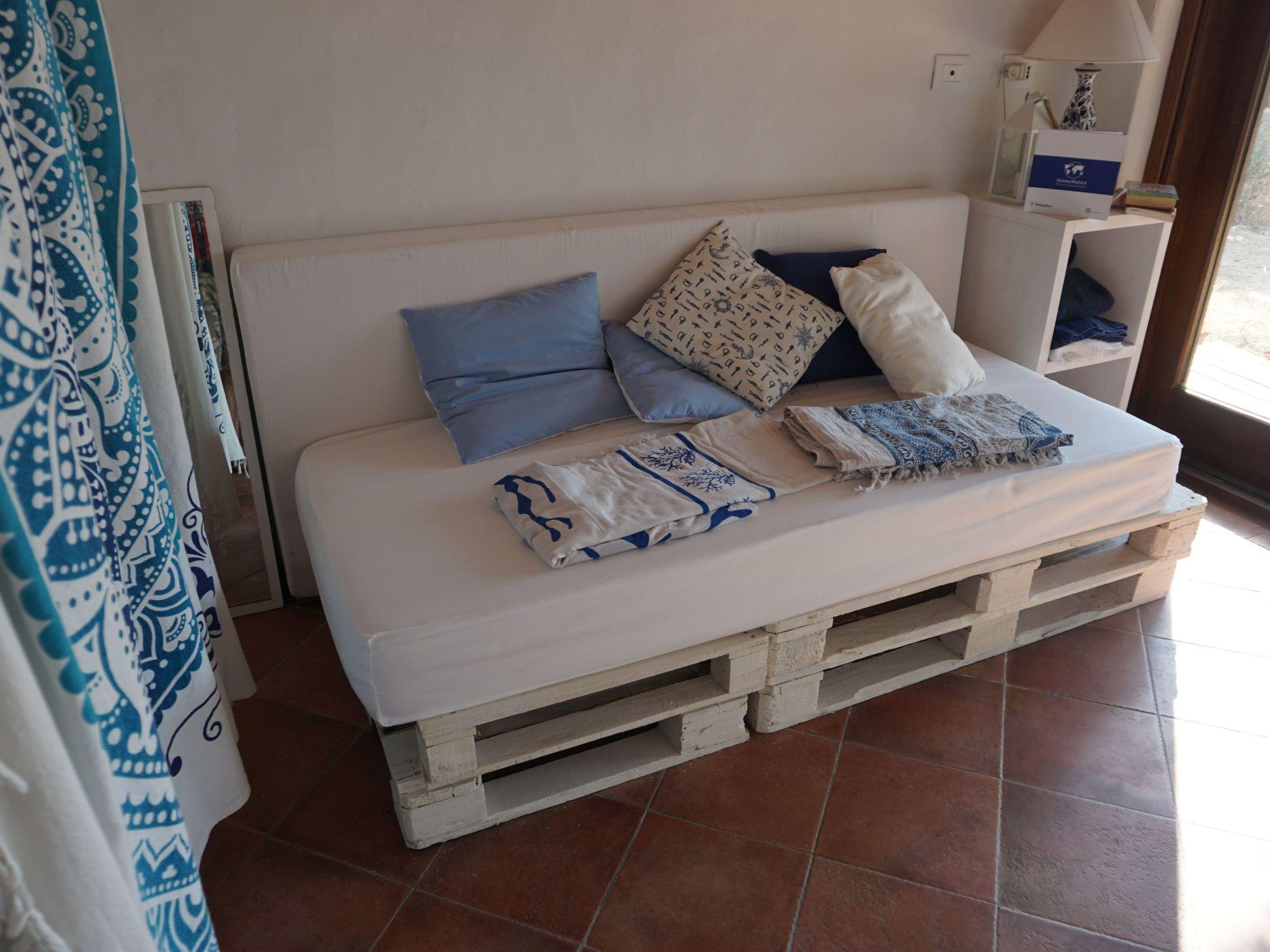 The accommodation, powered by green energy, is on one level, each room has direct access to the large outdoor area of about 5000 square metres. Internally, the accommodation consists of a living room with mezzanine and sleeping area with a double bed, an independent kitchen, a double bedroom, a single bedroom and a bathroom. Sa selvaggia is equipped with every comfort such as air conditioning and Wi-Fi. The accommodation has a partly covered and lit terrace where you can dine al fresco and enjoy moments of conviviality with your loved ones. There is also an outdoor stone shower surrounded by myrtle plants.