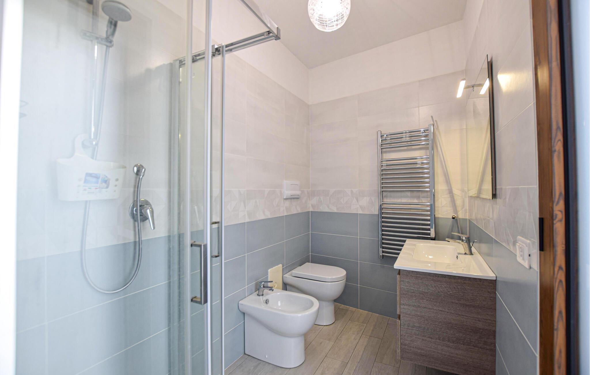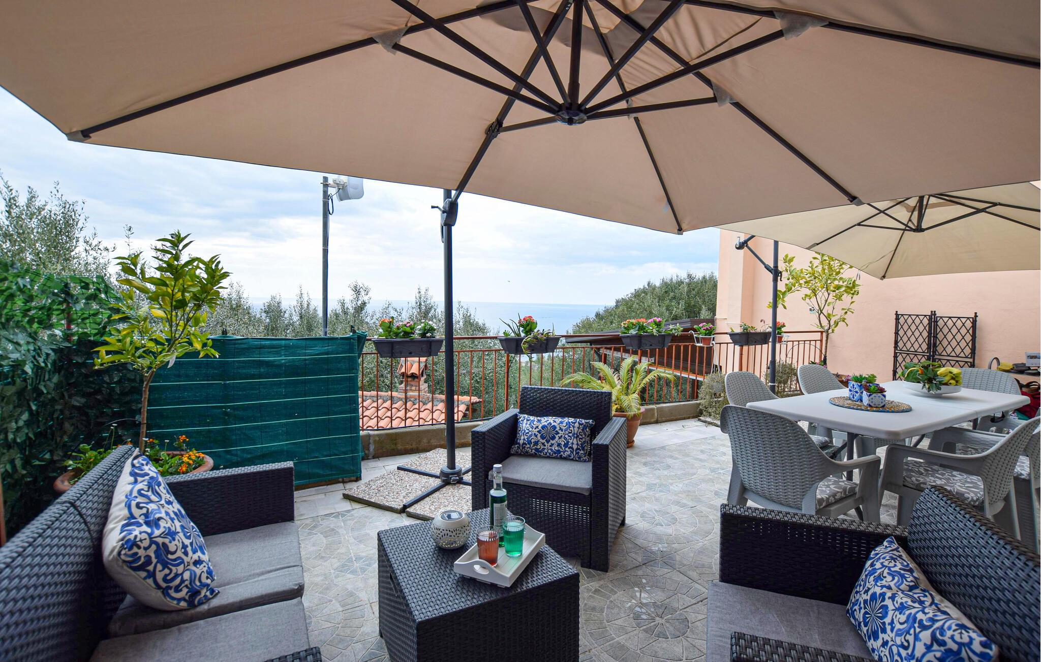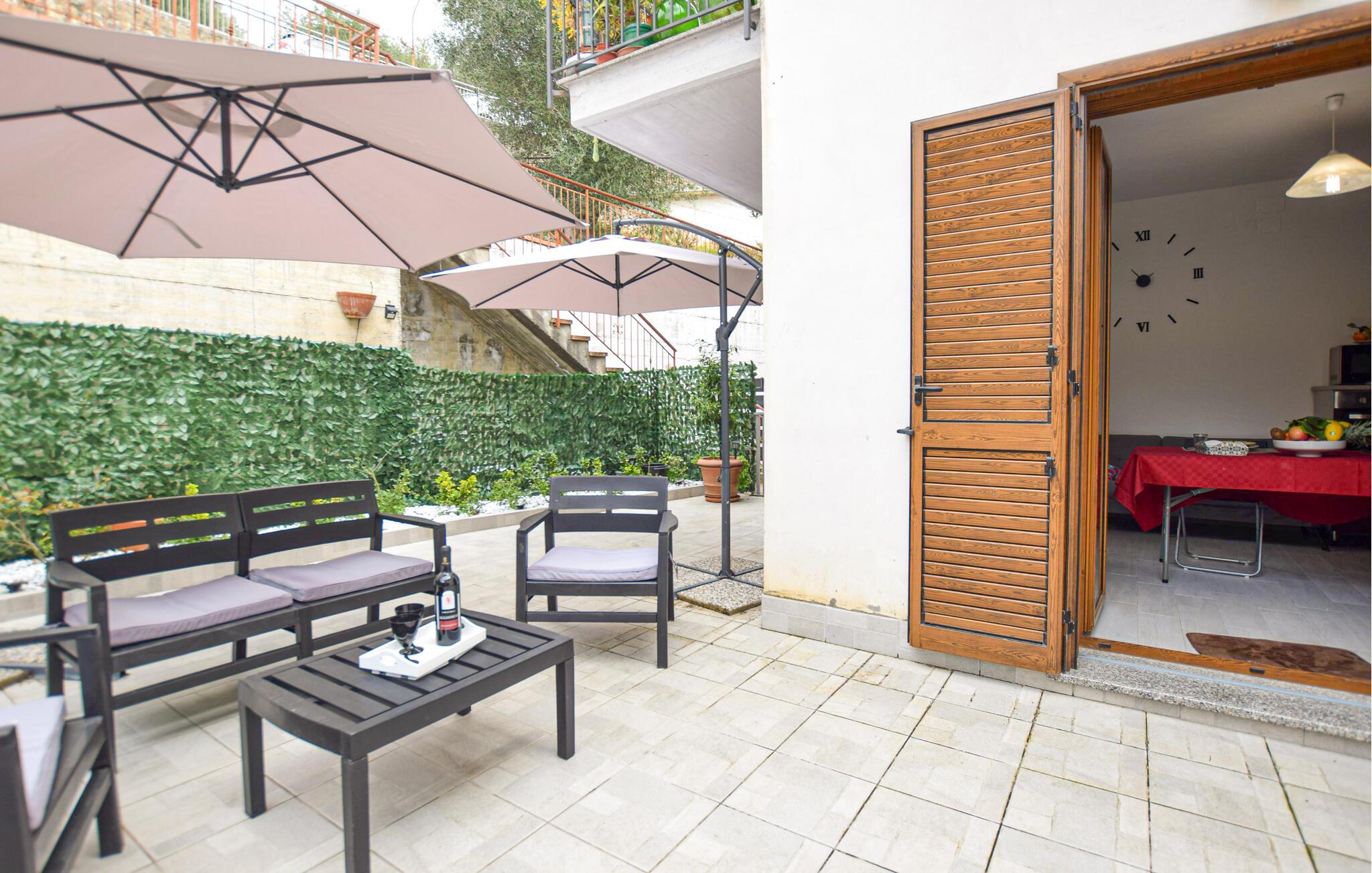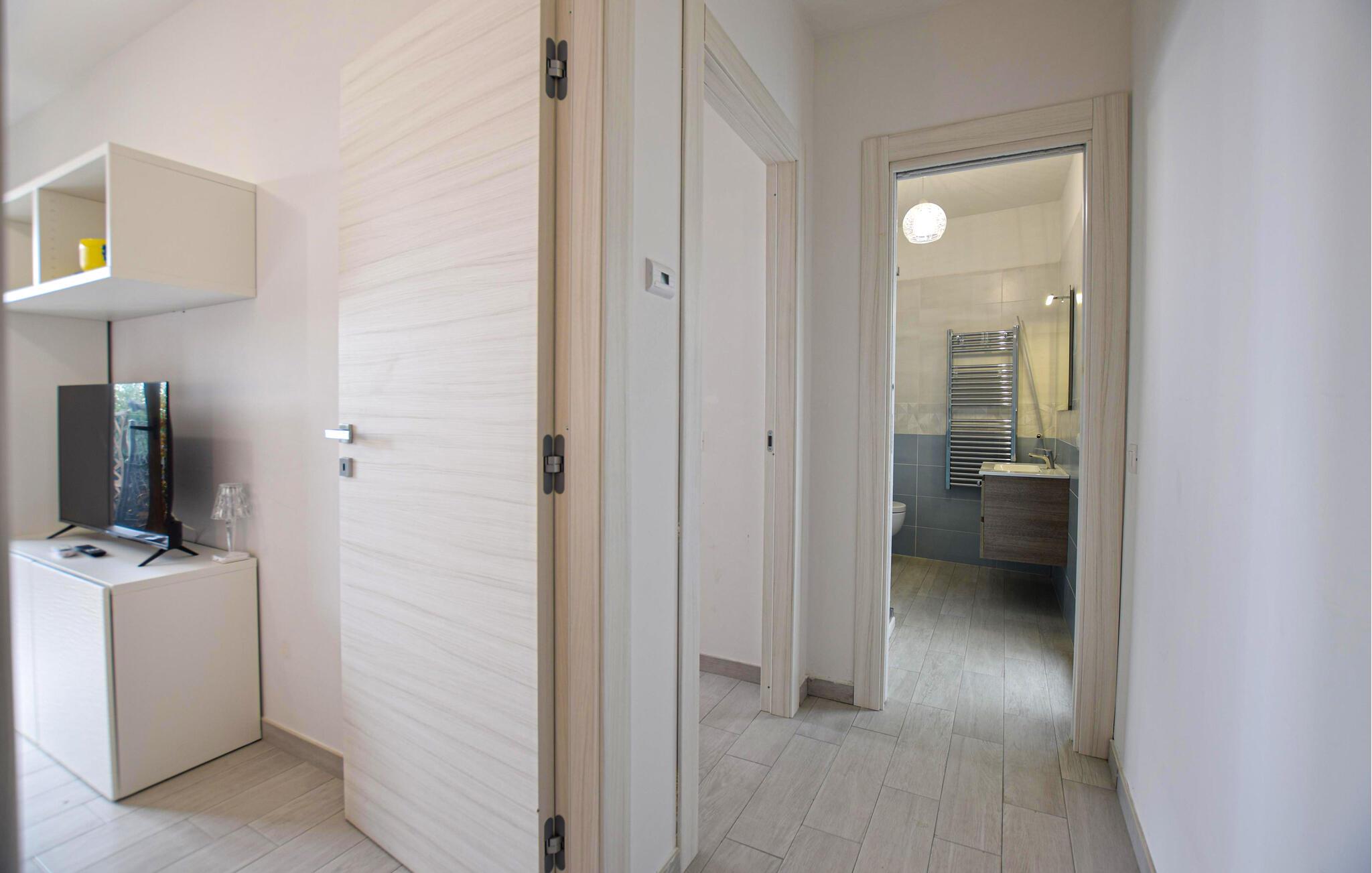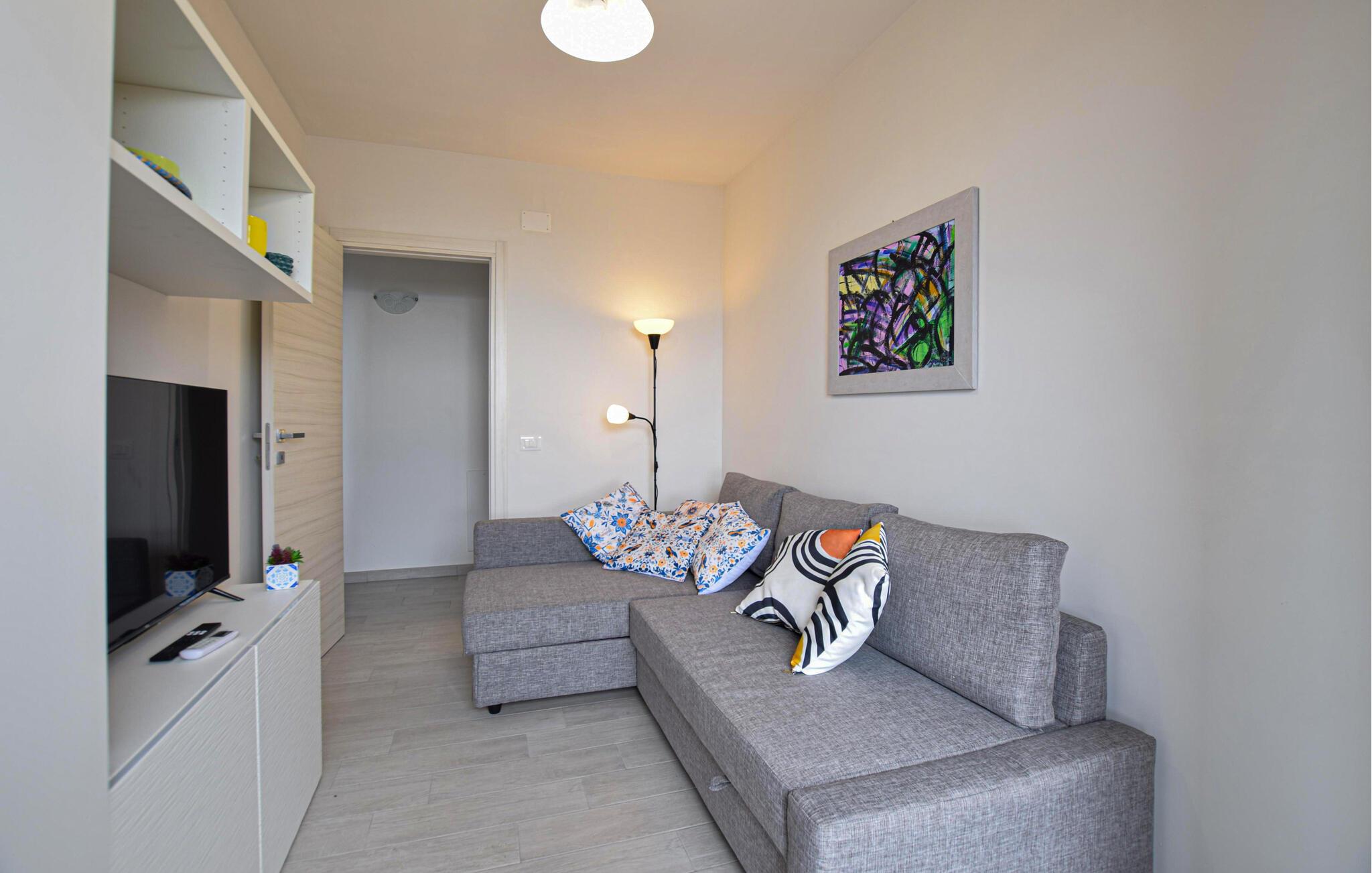 Træd ind i den moderne ferielejlighed og nyd dens indbydende design. Opholdsstuen tilbyder et komfortabelt tilflugtssted. Sæt jer godt til rette i sofaen og tilbring afslappende timer foran fjernsynet. Tilbered jeres måltider i det åbne køkken og drag fordel af de praktiske faciliteter til jeres daglige feriebehov. Sæt jer ved spisebordet og nyd fælles øjeblikke i en afslappet atmosfære. Åbn døren til terrassen og lad lys og frisk luft komme ind i rummet.