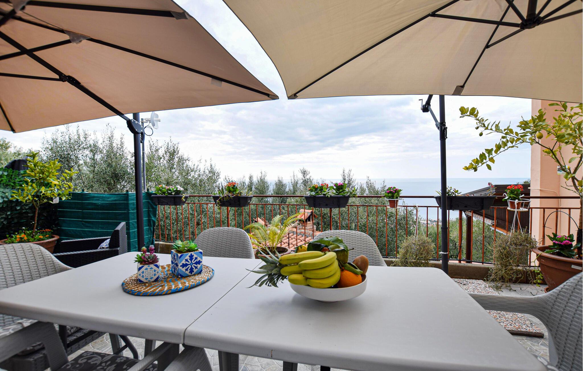 Træd ud i det rummelige udendørsområde og nyd udsigten over den omkringliggende natur og havet i det fjerne. Tag plads under de store parasoller og spis under åben himmel. Slap af i det komfortable siddeområde og sæt hverdagen på pause.