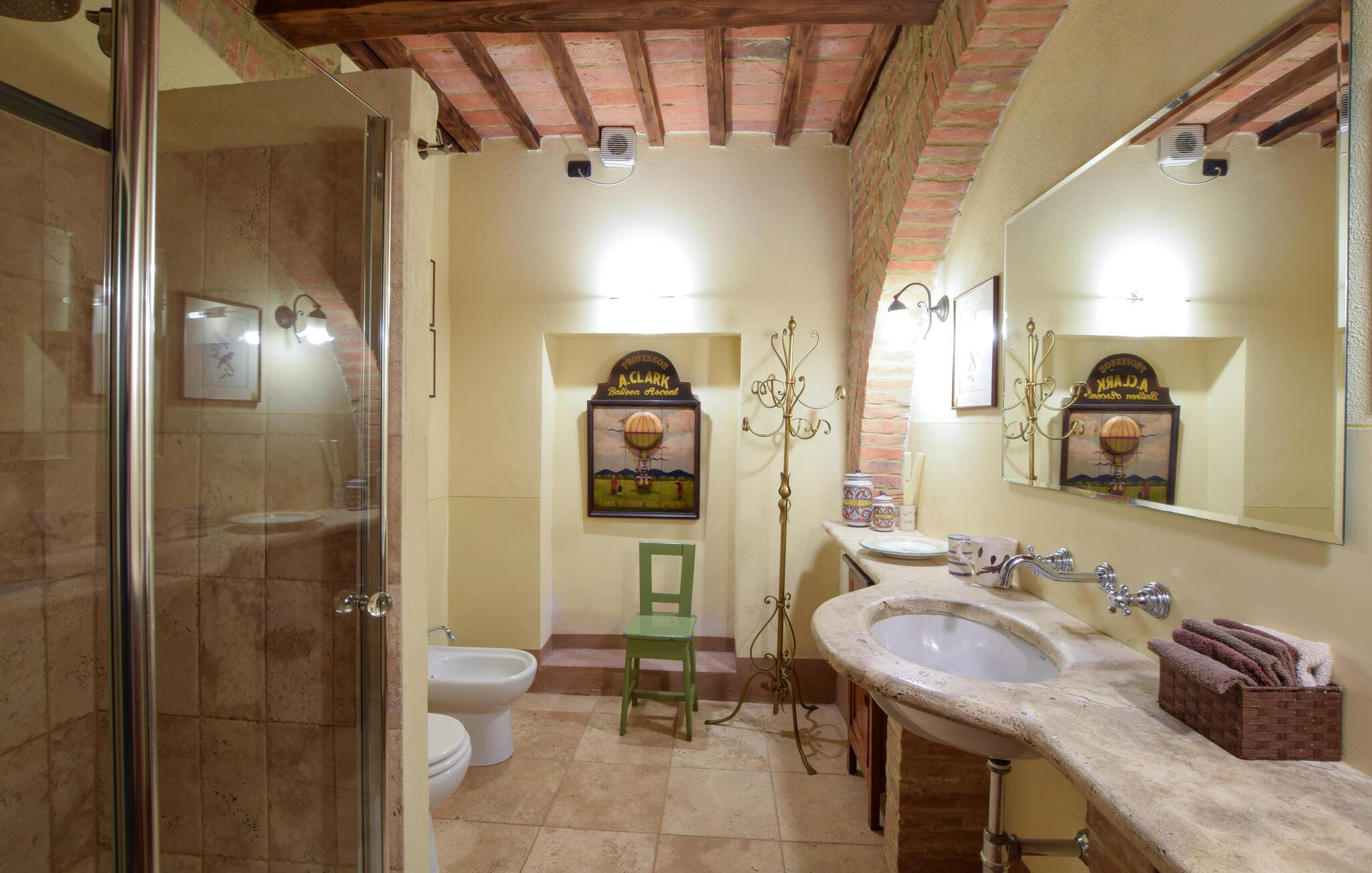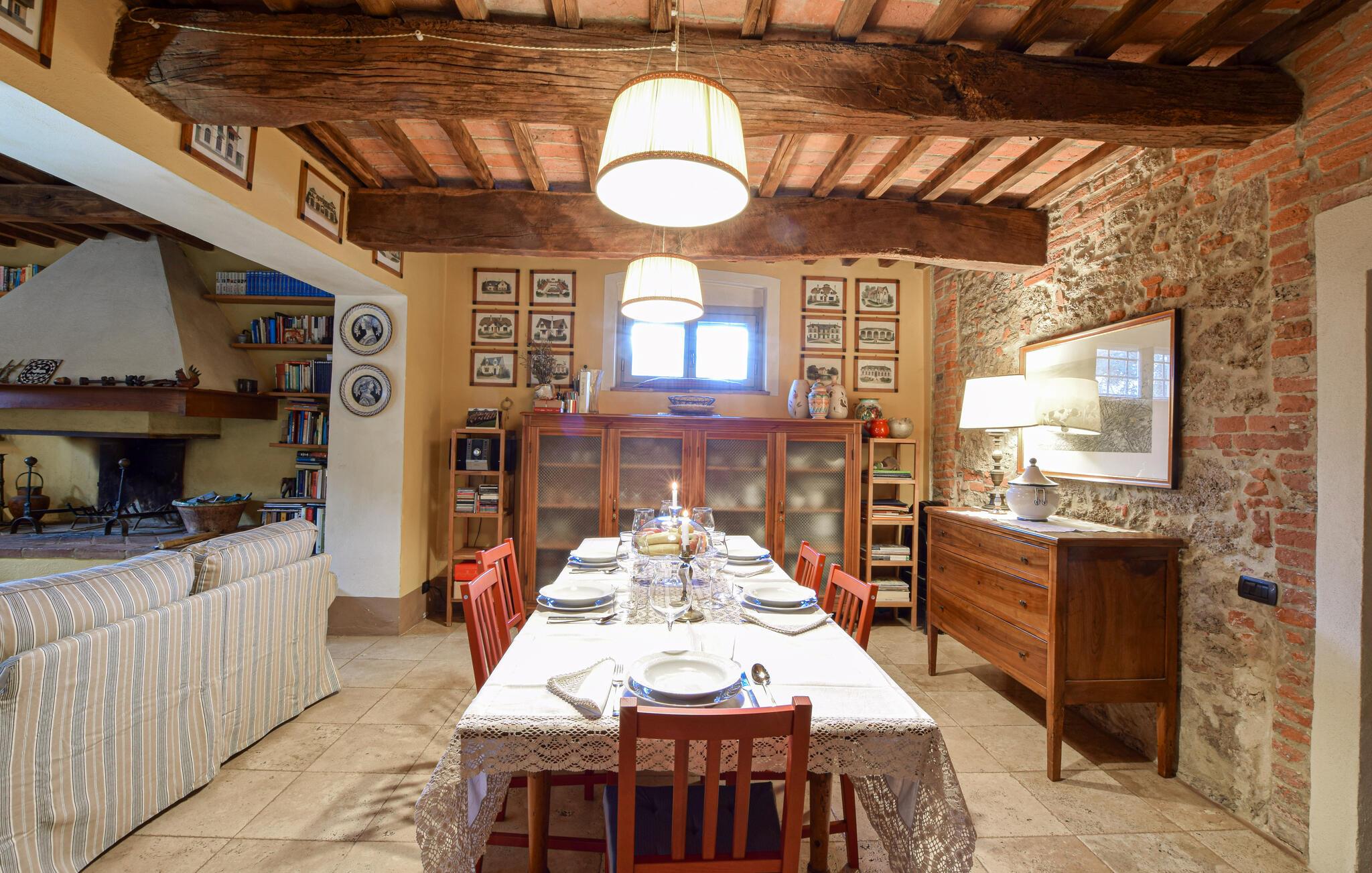 Beliggende i de maleriske omgivelser på Kreta Senesi, inviterer dette kærligt restaurerede hus fra 1700-tallet jer til at tilbringe uforglemmelige dage med venner eller familie. Glæd jer til hyggelige madlavningsaftener i det moderne køkken og spis sammen under gamle træbjælker i den behageligt oplyste spiseplads. find sammen til en filmaften i den hyggelige stue, eller søg en interessant bog i husets bibliotek.