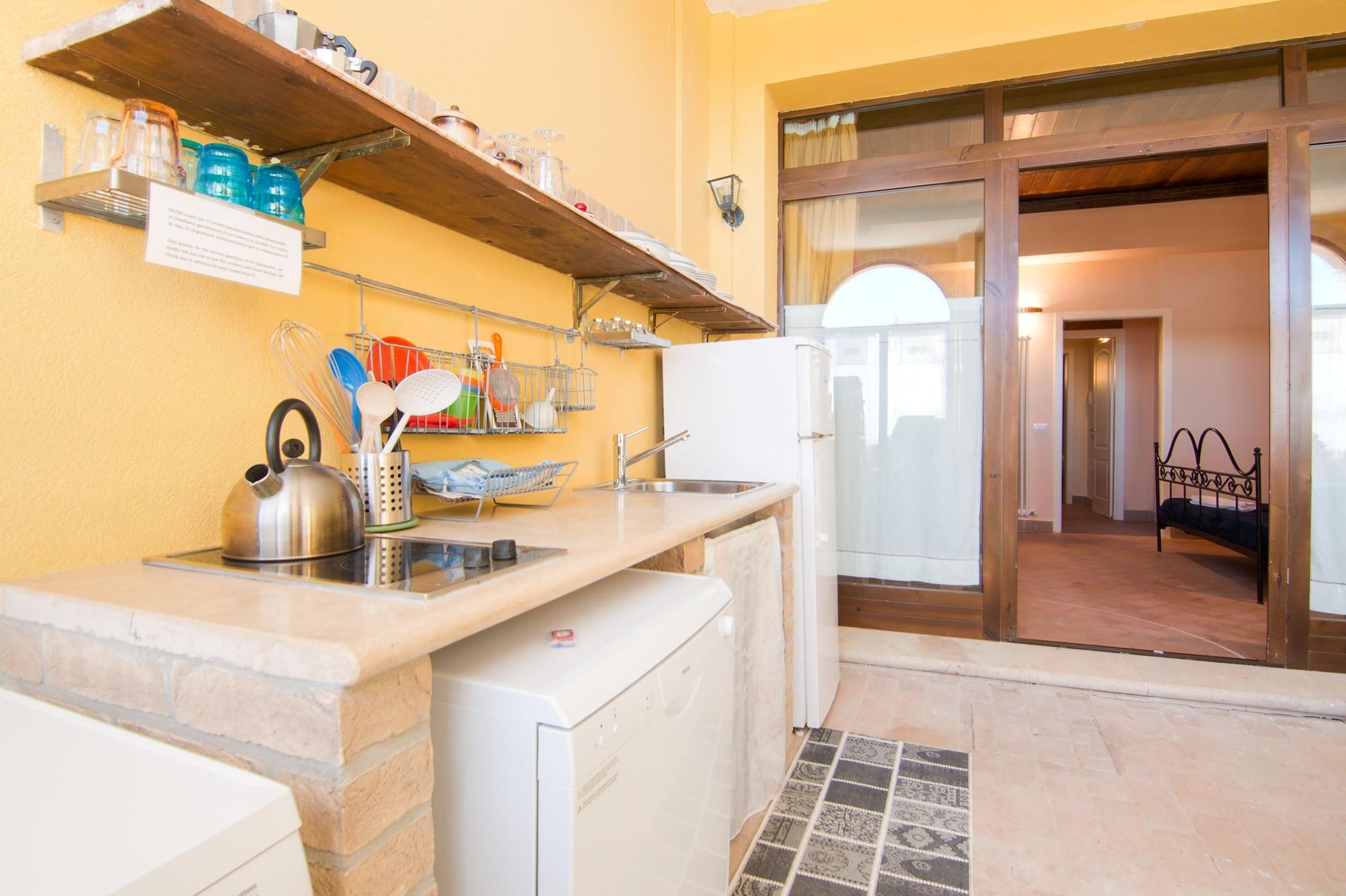 Dette indbydende feriehus på første sal i San Savino, Ascoli Piceno, er en fredelig og kæledyrsvenlig tilflugtssted for op til fire gæster. Kun 2 km fra landsbyens centrum og 7 km fra Adriaterhavskysten tilbyder det en perfekt blanding af landskabsro og adgang til havet. Den historiske by Ascoli Piceno, med sin renæssancearkitektur og pulserende piazzaer, er i nærheden, mens de naturskønne stier i Monte Ascensione og Offidas middelalderlige charme giver mindeværdige dagsture. Boligen har et lyst åbent køkken med moderne hårde hvidevarer, et hyggeligt opholdsområde med TV og to komfortable soveværelser, det ene med dobbeltseng og det andet med to enkeltsenge. To badeværelser, herunder et med boblebad, sikrer komfort og bekvemmelighed. Gæsterne kan nyde måltider på den private terrasse, slappe af i haven med liggestole eller slappe af i den fælles udendørs pool. Yderligere faciliteter omfatter aircondition, vaskemaskine, grill, cykler og en børneseng. Området er omgivet af bølgende bakker og lokal charme og byder på fremragende spisning kun 2 km væk. Nyd det traditionelle Marche-køkken på La Fattoria Da Celestino eller nyd rustikke smagsoplevelser på Casa Tintoria. Uanset om du udforsker kulturelle vartegn eller nyder solen, er dette hjem en dejlig base for dit italienske eventyr.
