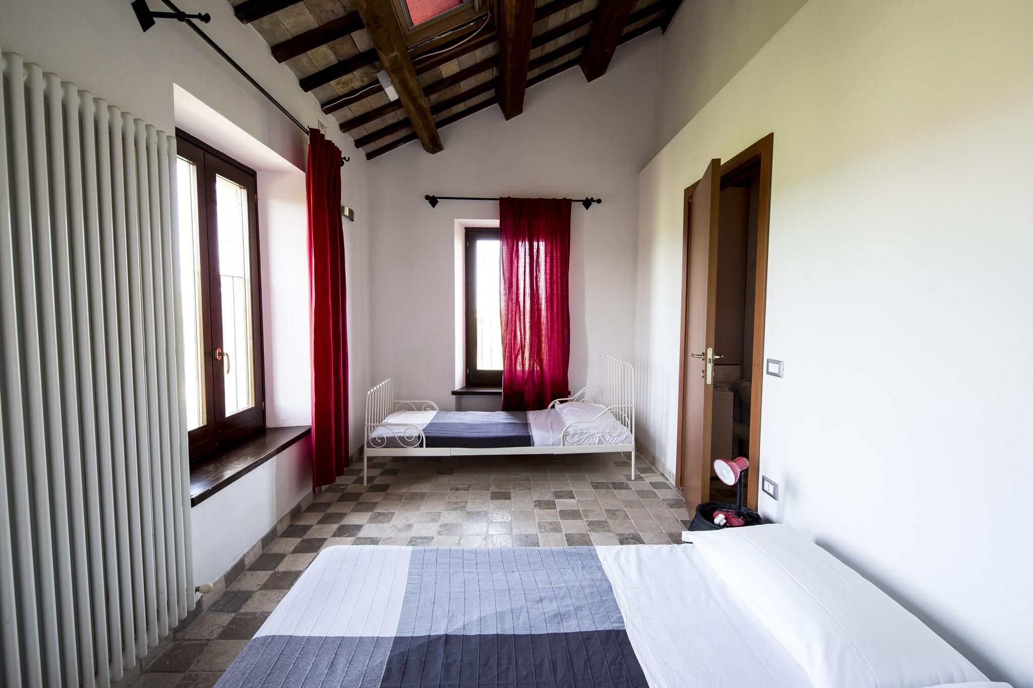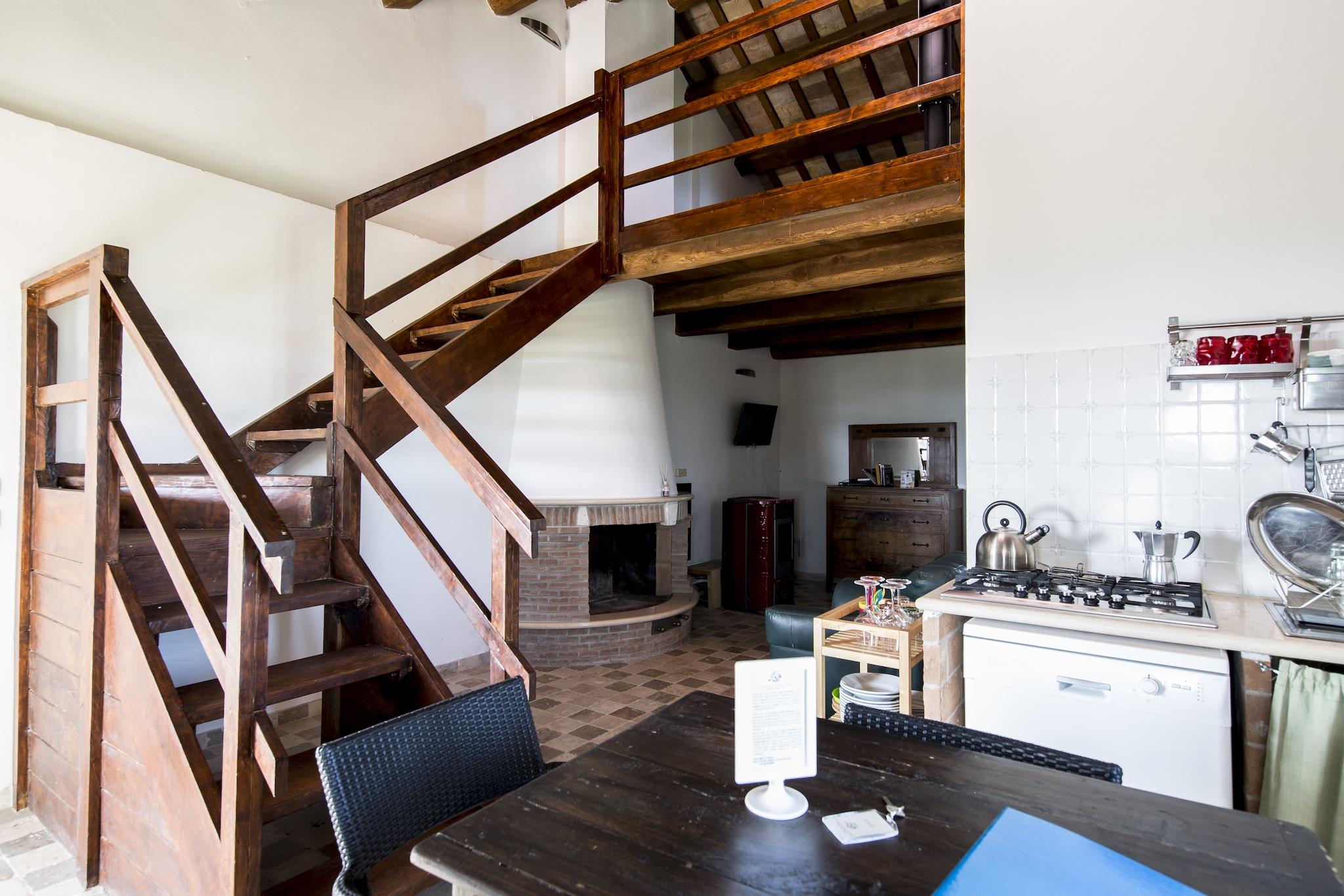 Dette charmerende, kæledyrsvenlige feriehus i San Savino, Ascoli Piceno, tilbyder en fredfyldt flugt for familier eller små grupper. Det er fordelt på to etager og kan komfortabelt rumme op til fem gæster og har en privat terrasse og have. Kun 2 km fra landsbyen og 7 km fra Adriaterhavskysten er det ideelt placeret til at udforske renæssancens skønhed i Ascoli Piceno og de middelalderlige gader i Offida. De panoramiske stier i Monte Ascensione og den historiske Piazza del Popolo er også i nærheden. Indenfor byder boligen på en hyggelig stue med pejs og tv, et fuldt udstyret køkken med moderne apparater og to soveværelser, det ene med køjeseng og enkeltseng, det andet med dobbeltseng på mezzaninen. To badeværelser inkluderer en sauna og et boblebad for ekstra afslapning. Gæsterne kan nyde den private terrasse, have med liggestole, grill og adgang til en fælles udendørs pool. Aircondition, en vaskemaskine og cykler gør det både behageligt og bekvemt. Det omkringliggende område er rigt på kultur og smag. Lokale restauranter kun 2 km væk serverer traditionelle retter fra Marche, prøv La Fattoria Da Celestino for rustikke retter eller Casa Tintoria for en hyggelig madoplevelse. Uanset om du cykler gennem bakkerne eller bader i spabadet, er dette hjem en perfekt base for dit italienske eventyr på landet.