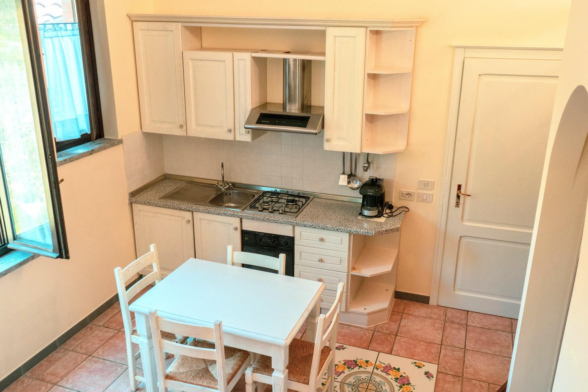 Åbent køkken(kogeplade, espressomaskine, ovn, køleskab, ), Stue/soveværelse(dobbeltsovesofa, Fjernsyn), soveværelse(dobbeltseng), badeværelse(bruser, håndvask, toilet, ), klimaanlæg, have, havemøbler, swimmingpool(deles med andre gæster), tennisbane, legeredskaber, strygebræt, strygejern