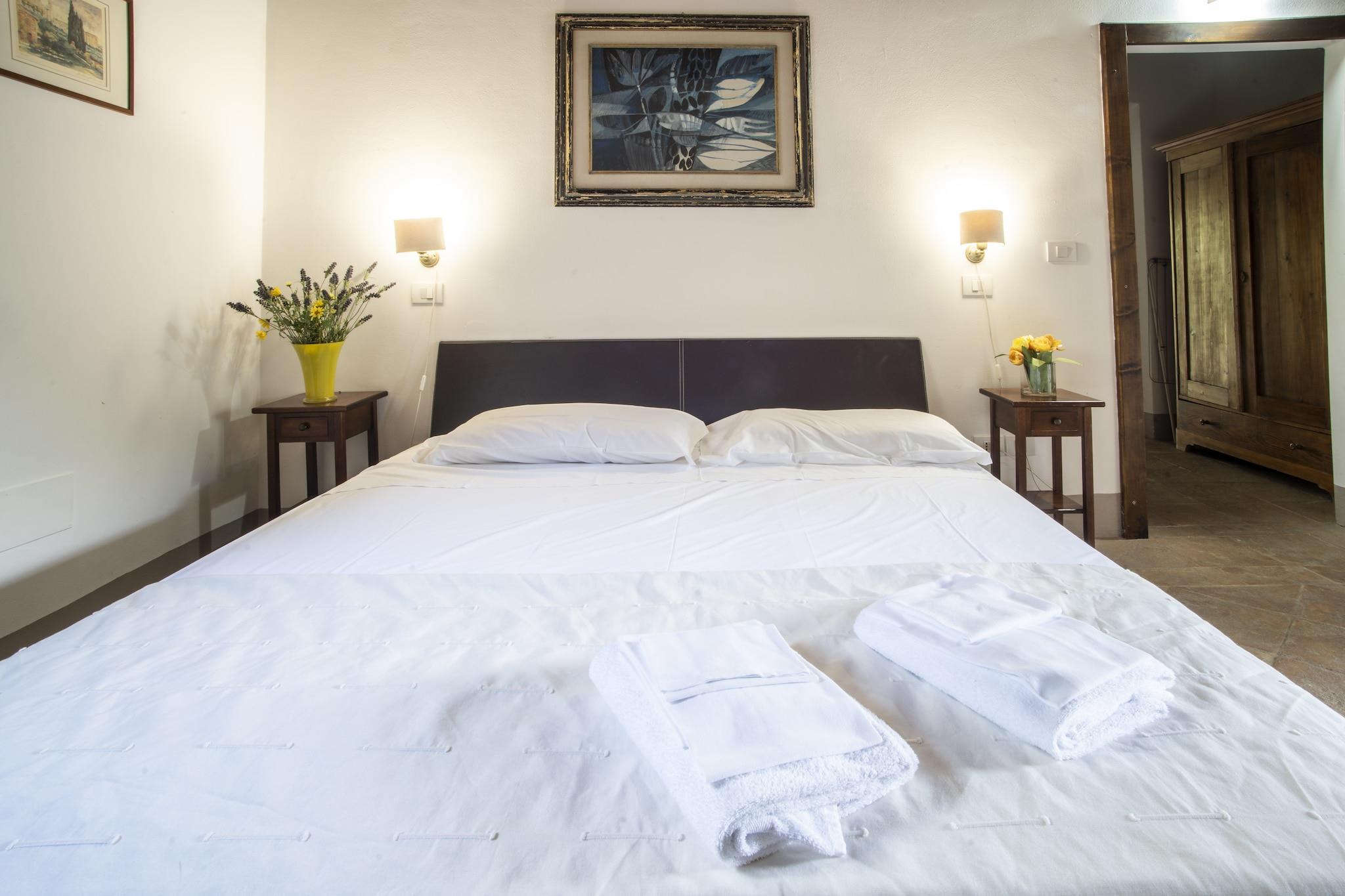 En toværelses lejlighed på cirka 45 kvadratmeter bestående af en stue med spisebord, et fuldt udstyret køkken, en sofa, et soveværelse med dobbeltseng og et badeværelse tilgængeligt for gæster med handicap. Omgivet af uberørt natur og kun en kort afstand fra Assisi, byder ejendommen gæsterne velkommen i en charmerende atmosfære midt i olivenlunde og vinmarker med en pragtfuld udsigt over San Francesco-komplekset. Bondegården, der er tilgængelig via en kort grusvej, har bevaret det autentiske rustikke udseende af et umbrisk bondegård og er opdelt i fem uafhængige lejligheder - studiolejligheder, lejligheder med et soveværelse og en rummelig lejlighed med to soveværelser - dedikeret til de alkymistiske elementer Sol, Måne, Jord, Ild og Vand. Hver lejlighed er omhyggeligt møbleret og har et fuldt udstyret køkken, Wi-Fi, satellit-tv og private udendørsområder såsom haver eller panoramaterrasser. På græsplænen, kun få skridt fra bondegården, ligger swimmingpoolen med et møbleret grønt område. Der er også grill, parkering og mountainbikes til udflugter langs de franciskanske stier. Ejendommen tilbyder også mad- og vinoplevelser med en restaurant, DOP-vin- og olivenoliesmagninger, madlavningskurser, kokkeservice i villaen og en velkomstpakke til kæledyr. Gården på stedet producerer fremragende umbriske vine og olivenolier, hvilket forstærker autenticiteten af dit ophold. Afslapning, kultur og natur kombinerer de ideelle rammer for at opleve Umbriens magi, der kombinerer moderne komfort, gæstfrihed og tradition.