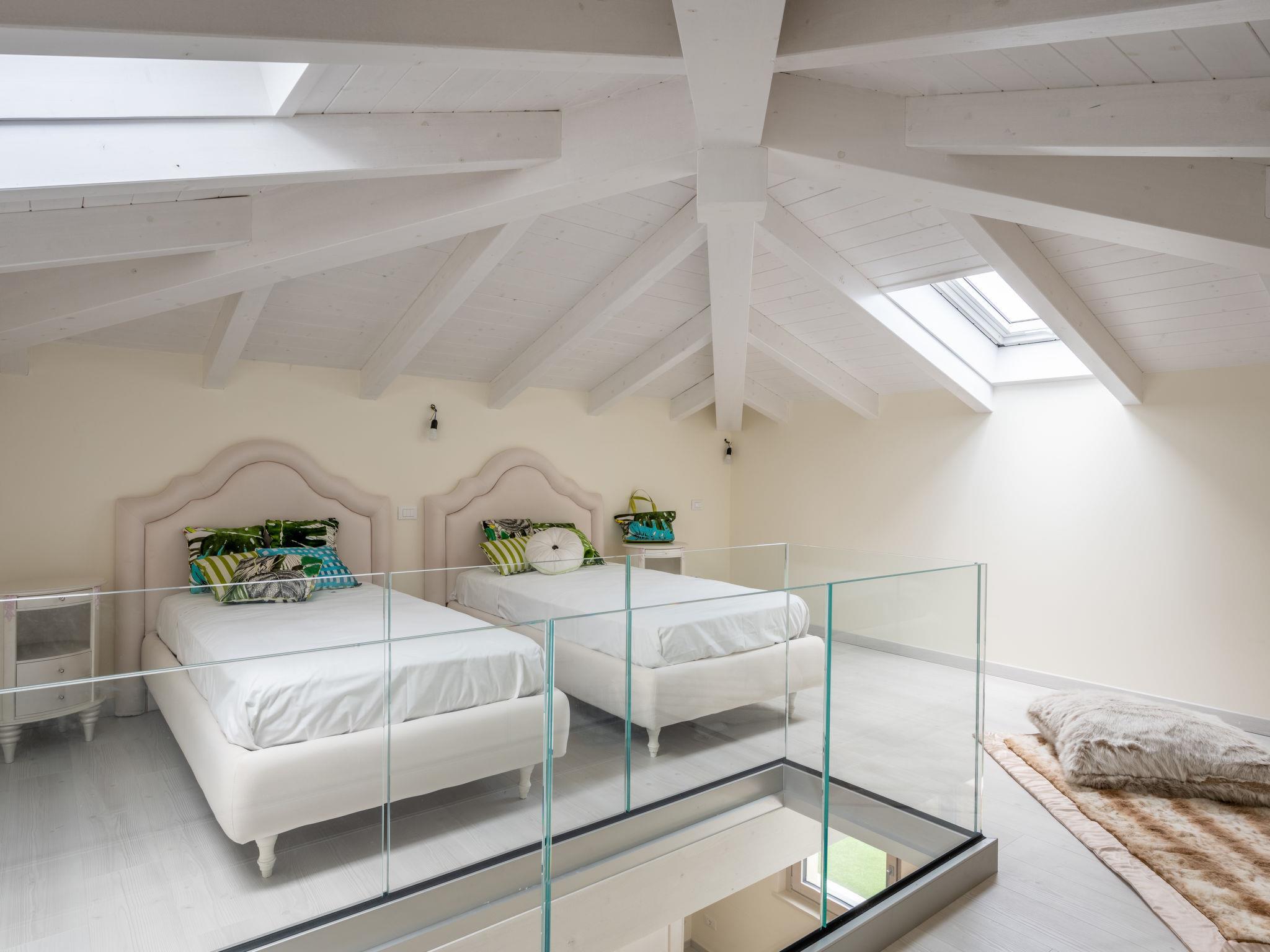 7-room house 250 m2 on 2 levels. Bright, modern and tasteful furnishings: living/dining room with dining table and TV. Exit to the terrace. 1 double bedroom with bath/bidet/WC and double hand-basin. Exit to the garden. Living room. Exit to the terrace. Open kitchen (oven, dishwasher, 5 induction hot plates, toaster, kettle, freezer, electric coffee machine). Exit to the terrace. 2 showers/bidet/WC, double hand-basin. On the lower ground floor: 1 room, without window with 1 french bed (160 cm). 1 room with 1 x 2 bunk beds, 1 pull-out bed (1 pers.). Shower/bidet/WC, double hand-basin. Upper floor: 1 room with Dressing room with 1 french bed (160 cm), shower/bidet/WC. (open staircase), 1 open room with 2 beds (100 cm, length 200 cm), air conditioning. No heating option. Parquet floors. Terrace 30 m2, roofed terrace 50 m2, roofed. Terrace furniture, barbecue, deck chairs. Facilities: washing machine, baby cot. Internet (WiFi, free). Please note: non-smoking house. No internal connecting door between the separated properties. Small driving range on the private estate. IT005106C2YJ9AVVDP