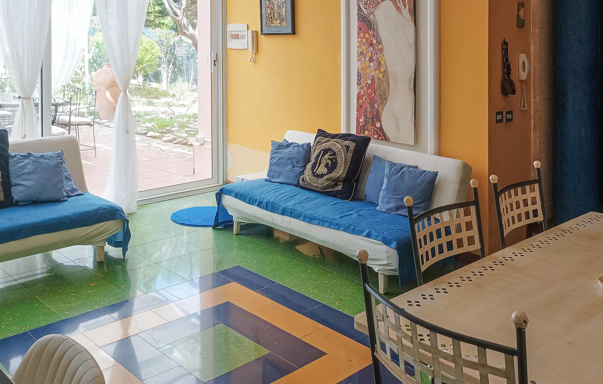 Indenfor venter en farverig boligstemning jer med en stor spiseplads og et veludstyret køkken. Nyd kombinationen af ??et fristed og nærhed til kysten og seværdighederne. Udforsk små bugter, prøv regionale retter og oplev Siciliens kulturelle mangfoldighed.