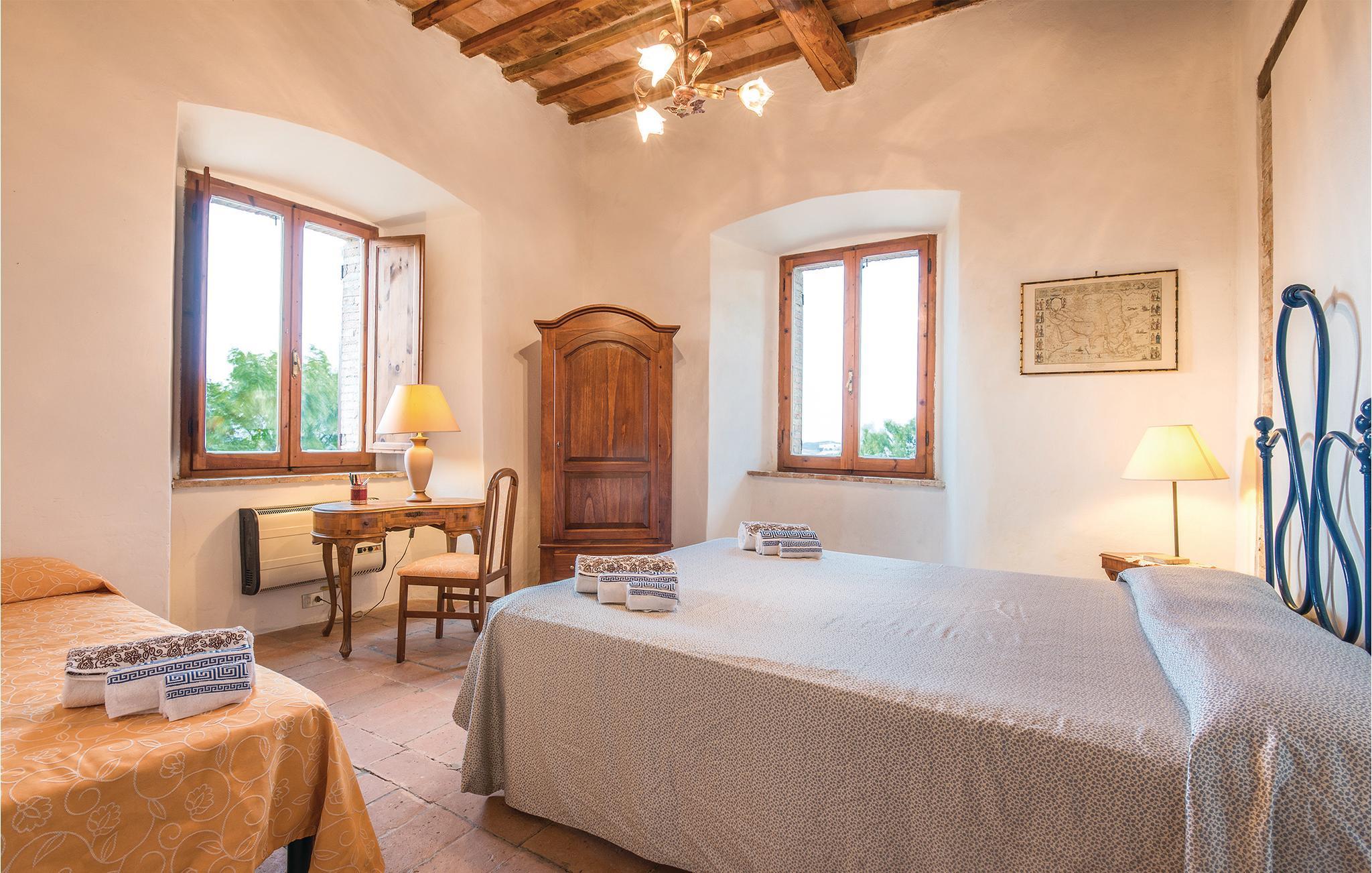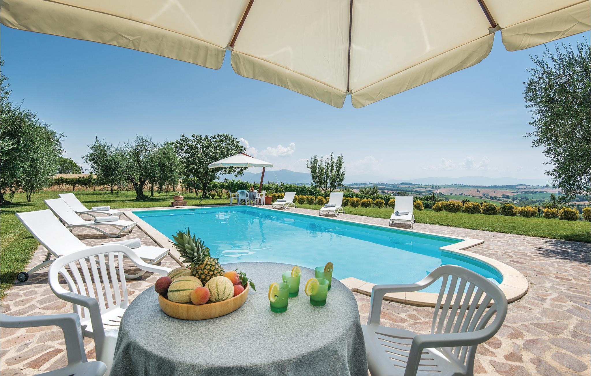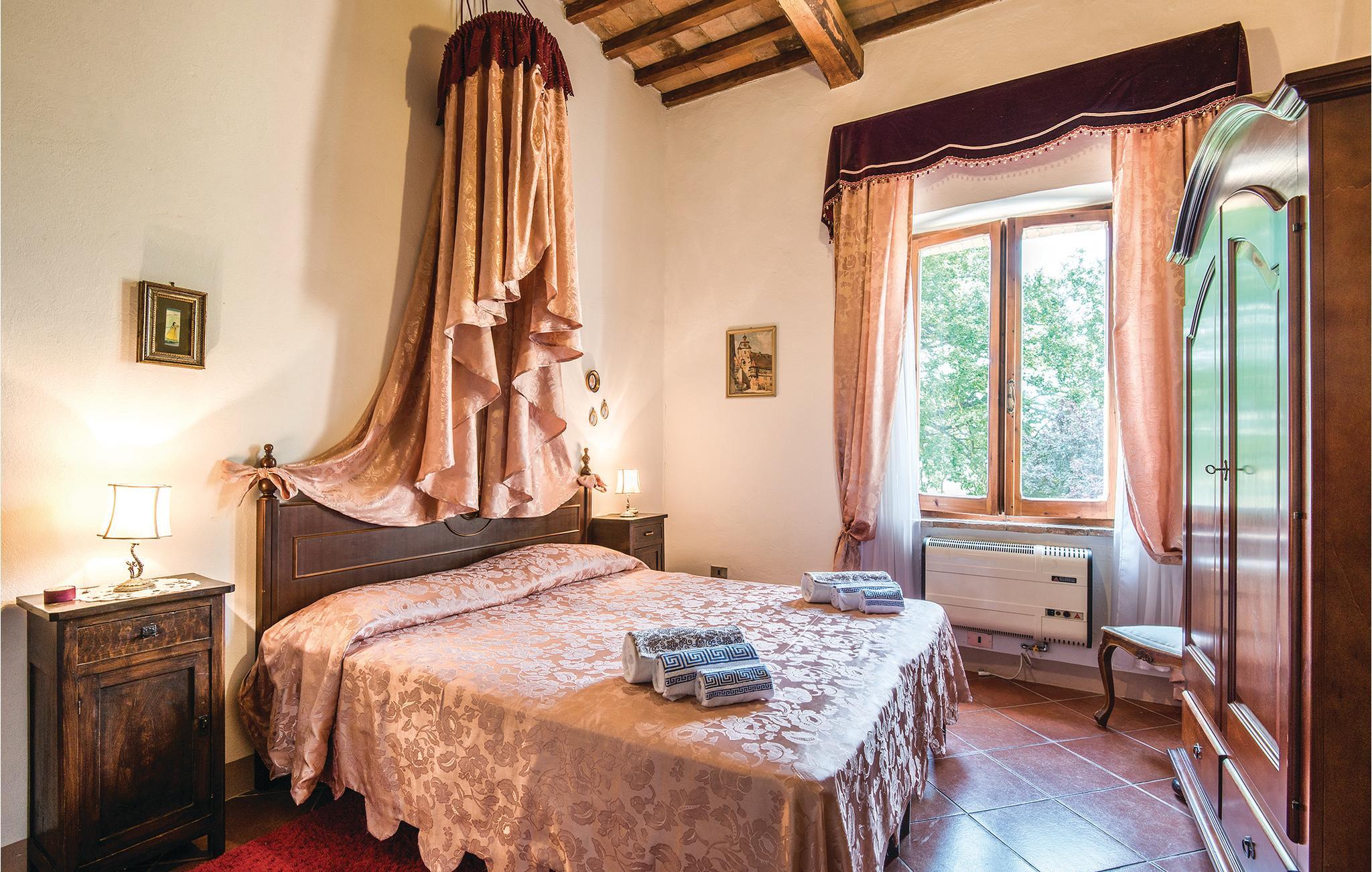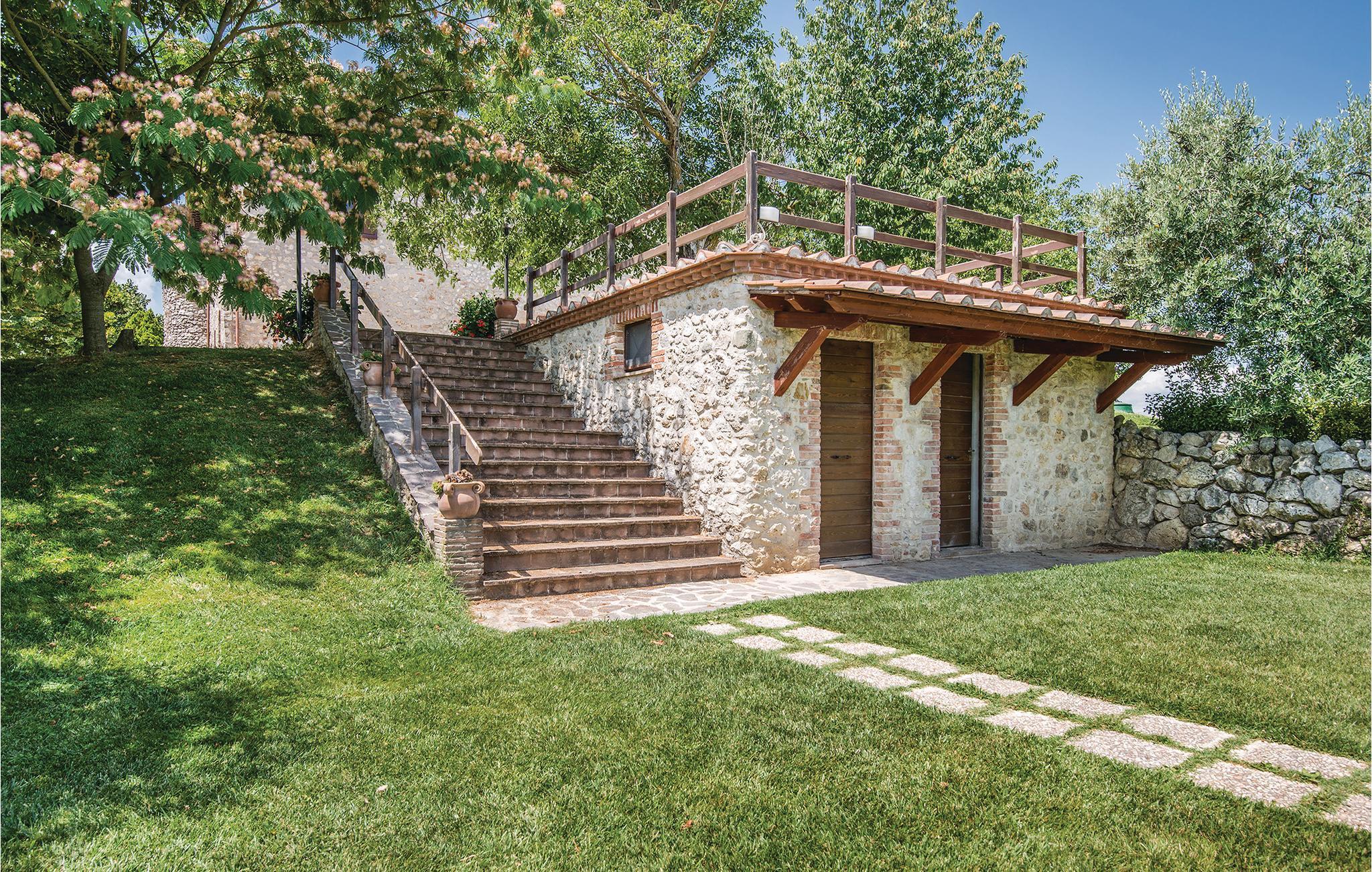 Dejlig lejlighed i et hus til to familier i et gammelt historisk tårn. Privat have med havemøbler på den ca. 2 ha store grund, der er totalt indhegnet. Rolige omgivelser med dejlig udsigt over bakkerne med borge og små gamle landsbyer. Godt udgangspunkt for at opleve alle de skønne områder i Umbrien, smage de mange gode vine, den gode gastronomi og måske tilbringe en dag i naturparken ved floden Nera, med marmorvandfaldet. Besøg Spoletao med klassisk musikfestival hvert år i juli. Smag også på regionens mange lækre retter med trøfler. Afstande: 4 km Dunarobba (fossilskov), 20 km Todi, 40 km Orvieto, 60 km, Perugia, 67 km Assisi. Soveværelset med dobbeltseng har yderligere en 3. seng på en hems (max. loftshøjde 1,70 m). Lejligheden i stueplan benyttes af ejer i forbindelse med ankomst og afrejse.