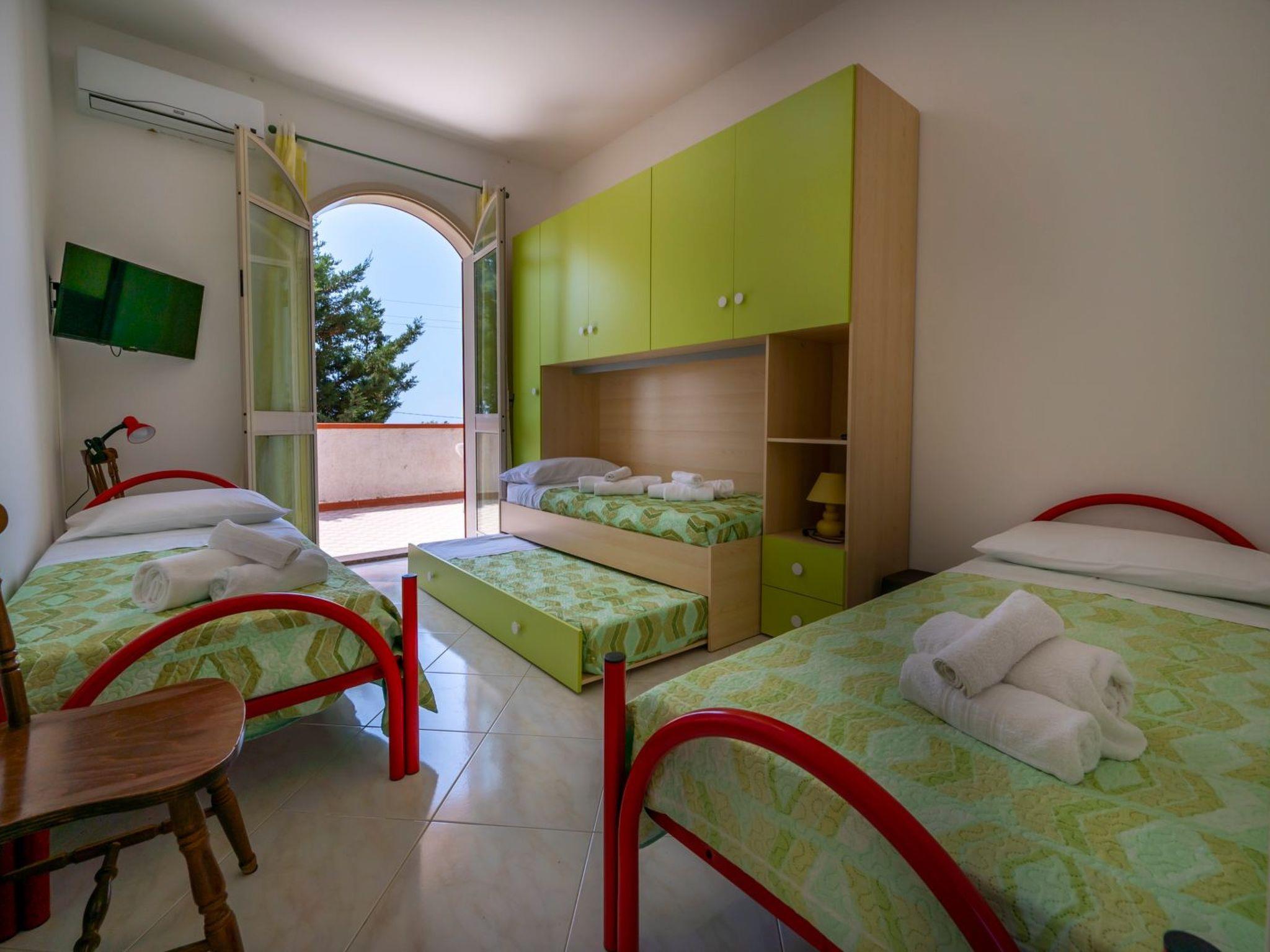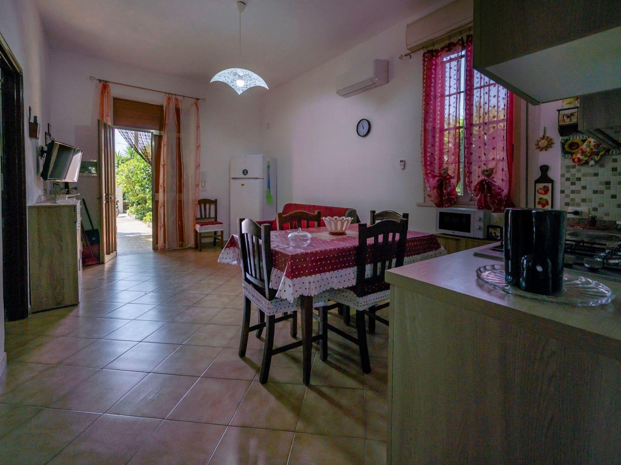 The three comfortable bedrooms are efficiently distributed to ensure privacy and comfort for all guests. Two of these are doubles, while the third is a quadruple with single beds, ideal for younger guests or those who want more independence. Each room is equipped with air conditioning, which is essential for cooling off the hot Sicilian summer days. The presence of convenient facilities, such as a washing machine for shared use and the necessary ironing equipment, ensures a practical and carefree stay.