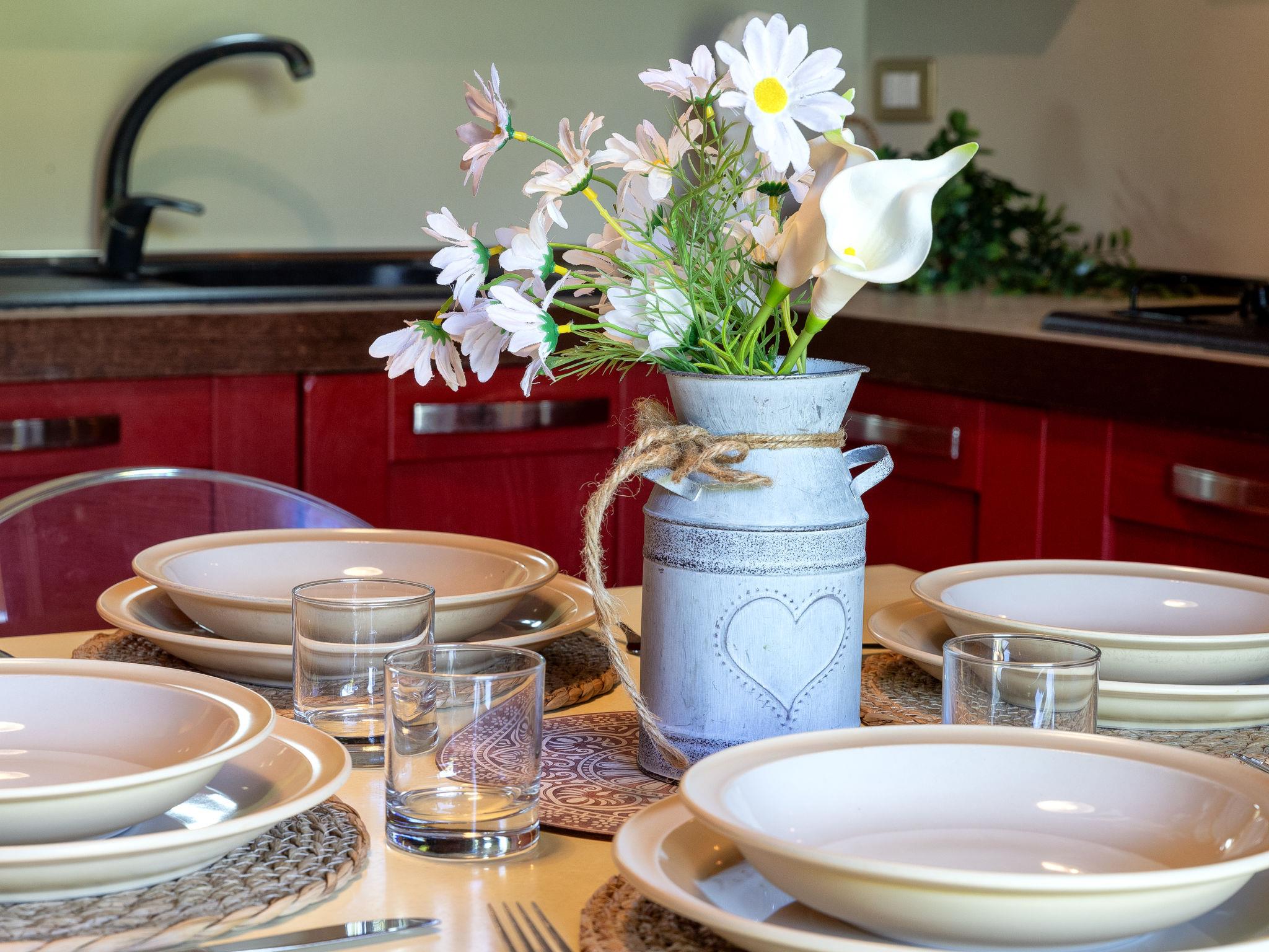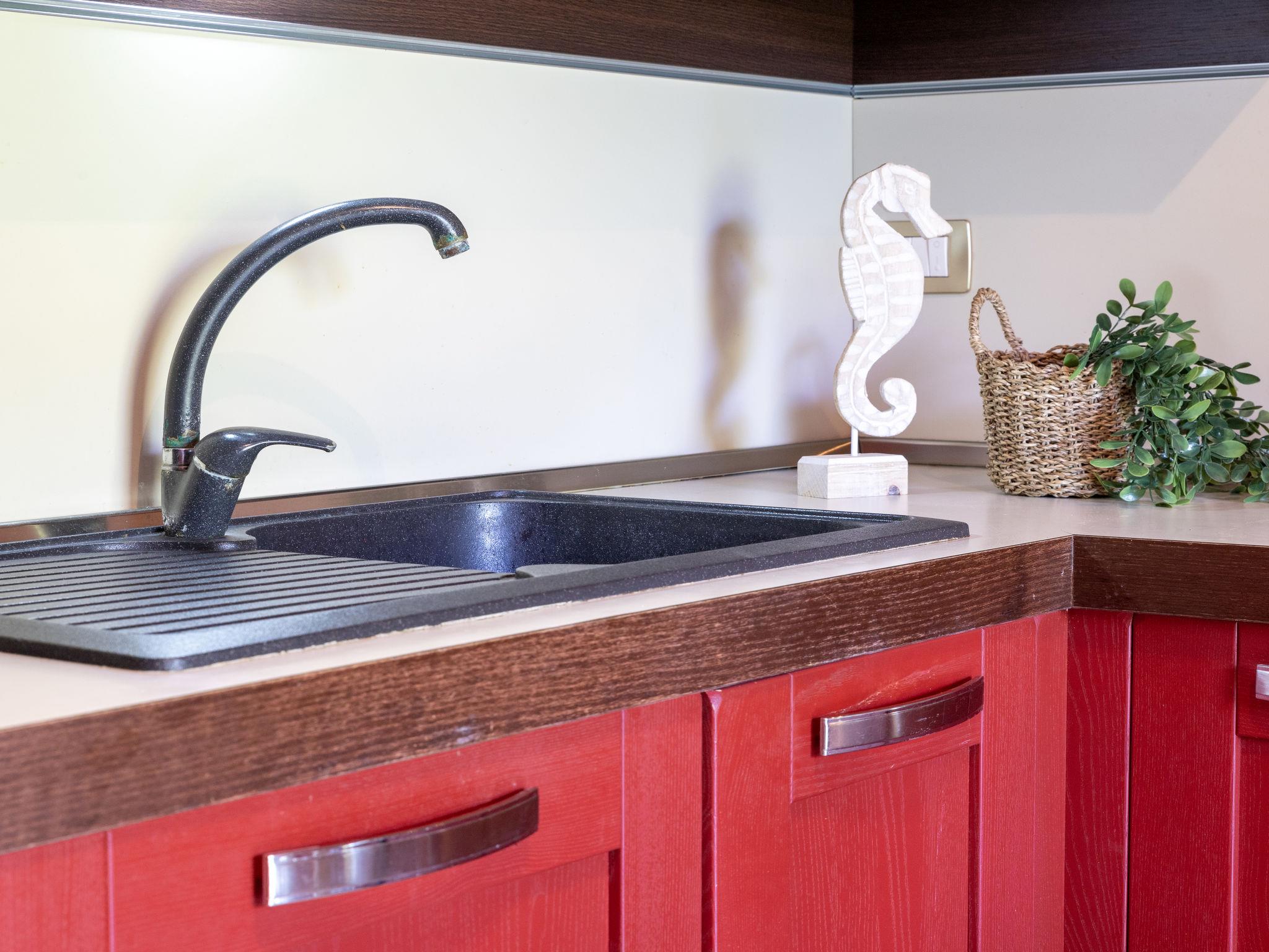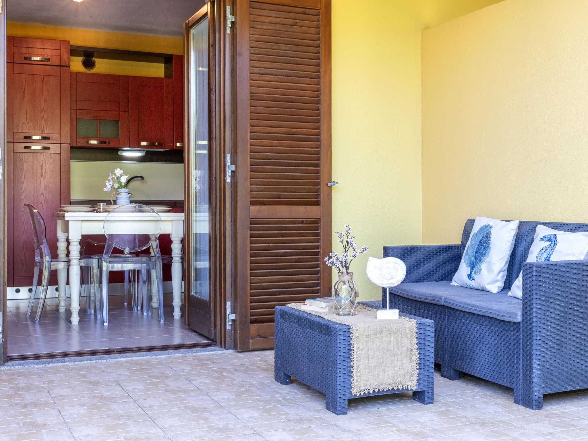 "Rosetta", 2-room apartment 45 m2, on the ground floor. Practical and modern furnishings: living/dining room with 1 double sofabed and TV (flat screen). Exit to the terrace. 1 double bedroom. Exit to the garden. Kitchen (4 hot plates, oven, dishwasher, toaster, kettle). Shower/bidet/WC. Air-conditioning, forced-air heating. Terrace partly roofed. Terrace furniture, barbecue, deck chairs, sitting area. Facilities: washing machine, iron, mosquito net, hair dryer. Internet (WiFi, free). Parking space n 1. Maximum 1 pet/ dog allowed. Linen and air conditioning are available at an additional cost. IT090081C2000T6370