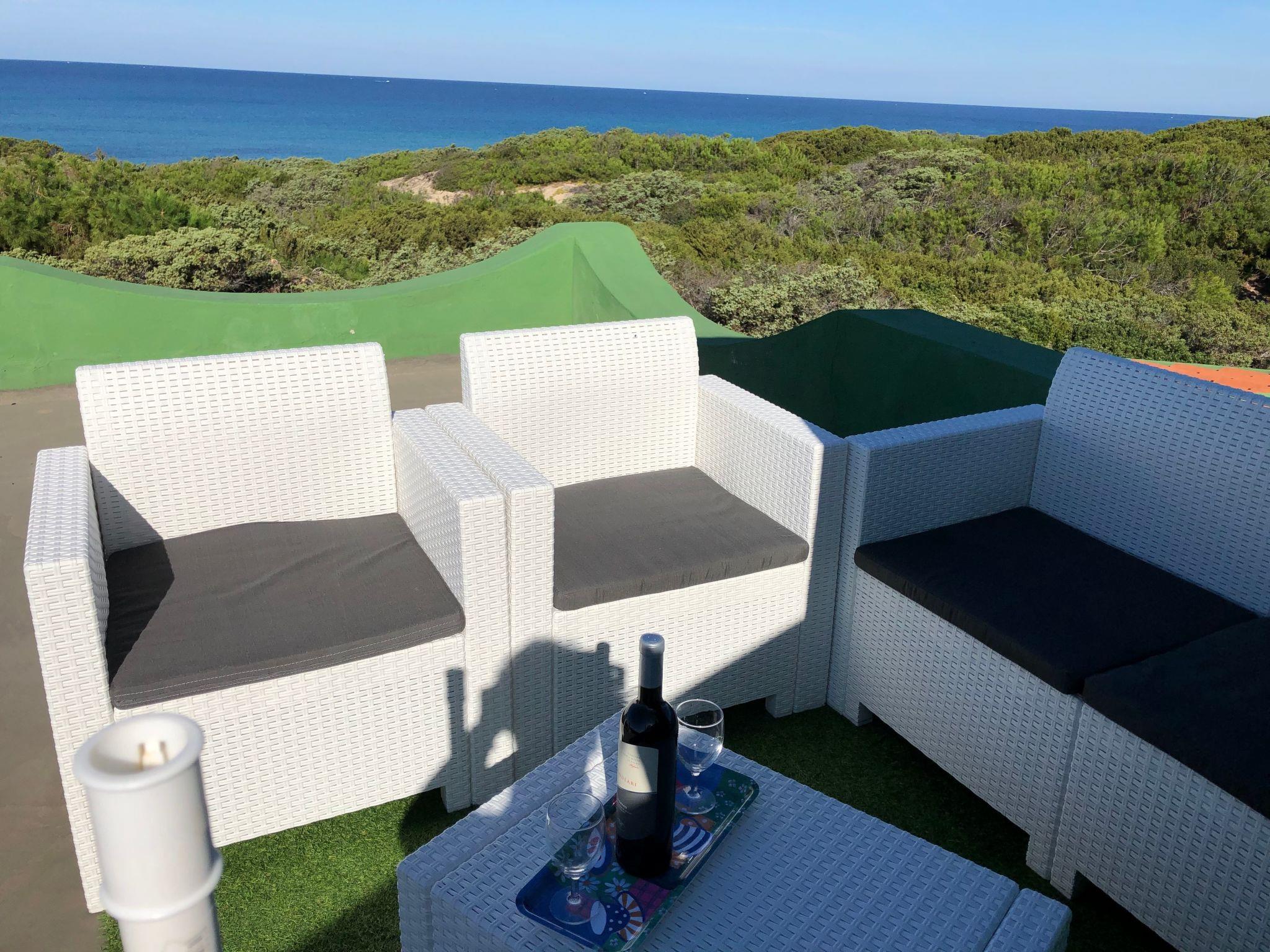 The villa's exterior is equally inviting, with an exclusive-use garden that offers plenty of space to relax in the shade or under the Sardinian sun. The terrace and roof terrace, both for exclusive use, are ideal for enjoying moments of pure peace in the open air, perhaps reading a book or admiring the serenity of the surrounding landscape.