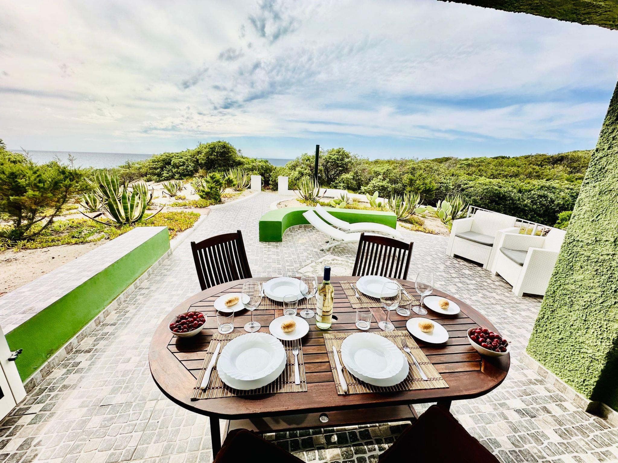 The villa's location is perfect for exploring the natural wonders of Sardinia. Located only 100 metres from the beach, it offers easy access to sunny days and swimming in the crystal clear sea. For pet lovers, a dog-friendly beach is only 2000 metres away. In addition, the proximity to a lake at 10,000 metres offers additional options for outdoor activities. With the nearest centre and grocery shops only 3000 metres away, you will have everything you need at your fingertips for a carefree stay.