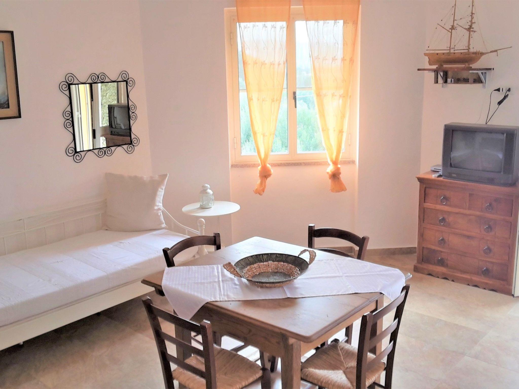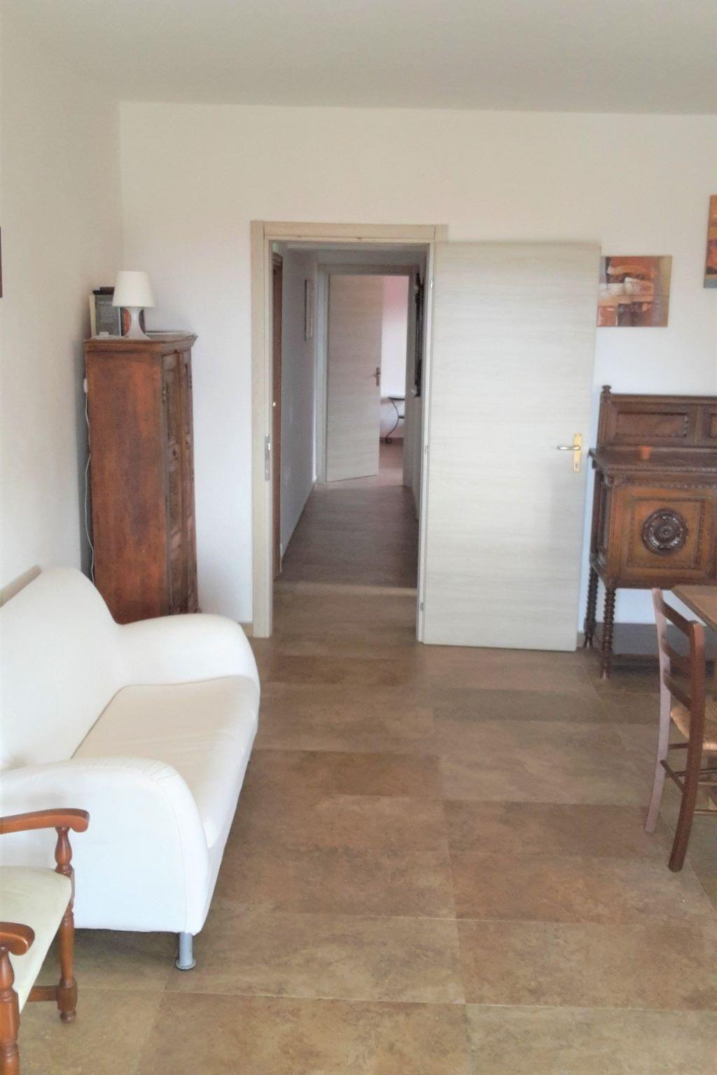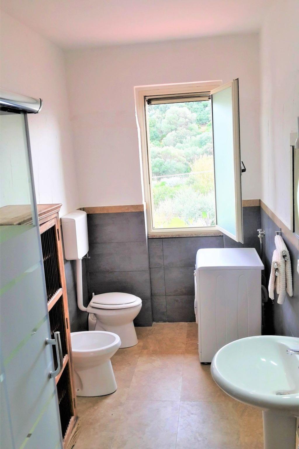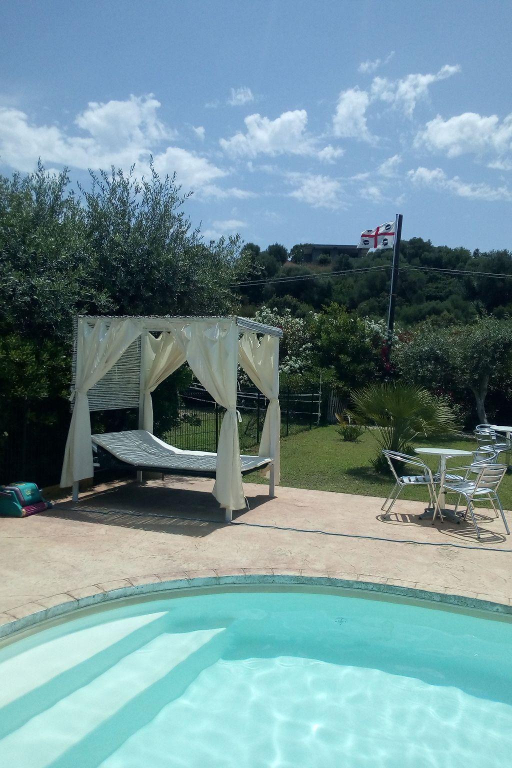 The apartment is located in a newly built villa with pool with only two units, each with separate entrance, in a quiet location on the outskirts of Badesi, surrounded by a 4000 square metre garden with olive, fig, lemon, orange, mandarin and almond trees.The sea with its 11 km long silver sandy beach, one of the longest in North Sardinia, is only 2500 metres from the house and is easily reachable also by bus which runs every half hour on the beach in summer. The apartment is 75 square metres and consists of 2 bedrooms, a large living room, a large terrace with sea view, an equipped kitchen with everything necessary, a bathroom with shower cabin, a terrace with fantastic sea view and garden furniture, ideal to enjoy the sunset while having dinner, the property is fenced and therefore also suitable for children.The village centre, restaurants, ice cream parlours, cafes, supermarkets, bank and pharmacy are only 400m from the house and can be reached on foot in a few minutes. Badesi is strategically located to make many excursions without having to drive a lot to visit the most beautiful places and beaches in northern Sardinia.For surf lovers there are several surf and kite schools in the area.Brief description 1Number of kitchens : 1Other rooms : large covered terrace with sea viewSurroundingsSports facilities in the area : fishing, mountaineering, climbing, mountain biking, cycling, horse riding, sailing, surfing, diving, tennisSurroundings 1Location description : Badesi is a small village with 1800 inhabitants and is located in the north of Sardinia, in Gallura, in a dreamlike landscape where the red of the granite meets the blue of the crystal clear water, where the mountain landscape and the sea join hands. The 10 kilometre long beach at Badesi, with its yellow sand, is one of the longest in Sardinia. Badesi is about 70 km from Olbia and Alghero, 60 km from Porto Torres, 230 km from Cagliari and has the advantage of being located in a privileged position from where you can easily reach the most beautiful and interesting places (villages and towns) in the north of Sardinia such as Valledoria, Castelsardo, Alghero, Stintino, Isola Rossa, Costa Paradiso, Santa Teresa.Garden and outdoor facilitiesRecreational facilities at the property : Outdoor pool for shared use, Solarium, Playground, Swimming poolGarden equipment : Garden furniture available, Barbecue, Sandpit, Play equipment