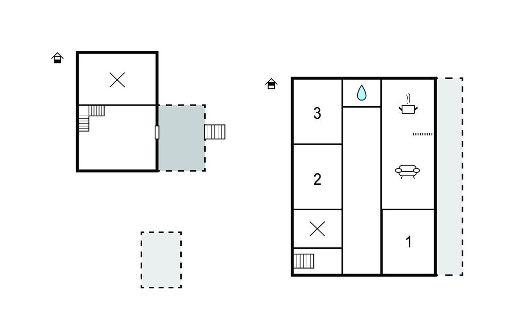 Soveværelse (nr. 2) - 1 Soveplads. (Enkeltseng(e)). 2 Sovepladser. (Dobbeltseng(e)).