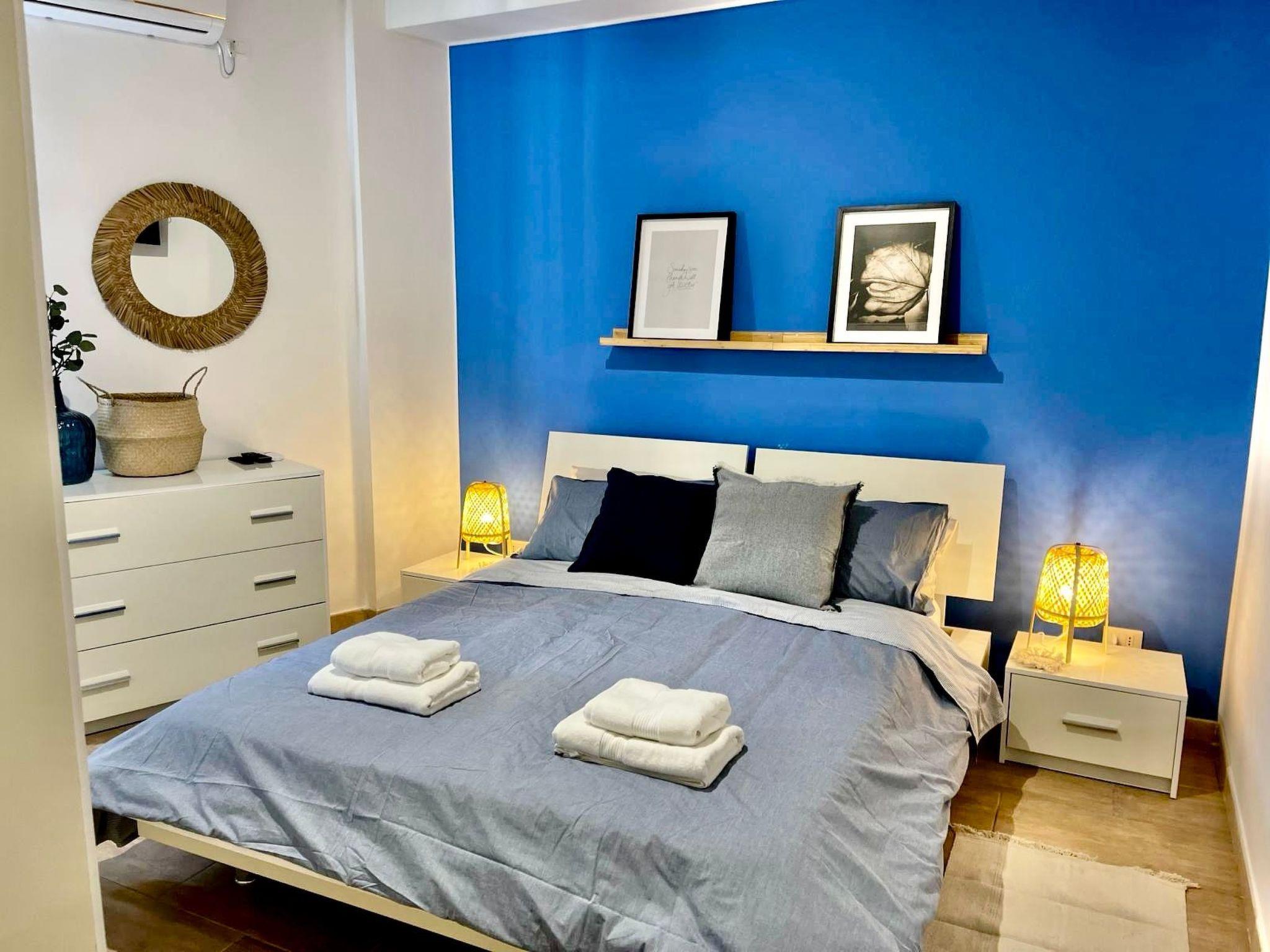 The interior of the flat provides comfortable accommodation with full air-conditioning, creating a pleasant environment to relax even on the hottest days. Comfortable beds in the two bedrooms and access to modern amenities, such as a washing machine for your own use and a clothes dryer, make your stay comfortable for every guest. In addition, for lovers of home-cooked meals, the kitchen is equipped with a gas cooker, a coaster coffee machine and a kettle so that you can prepare your favourite snacks and drinks.