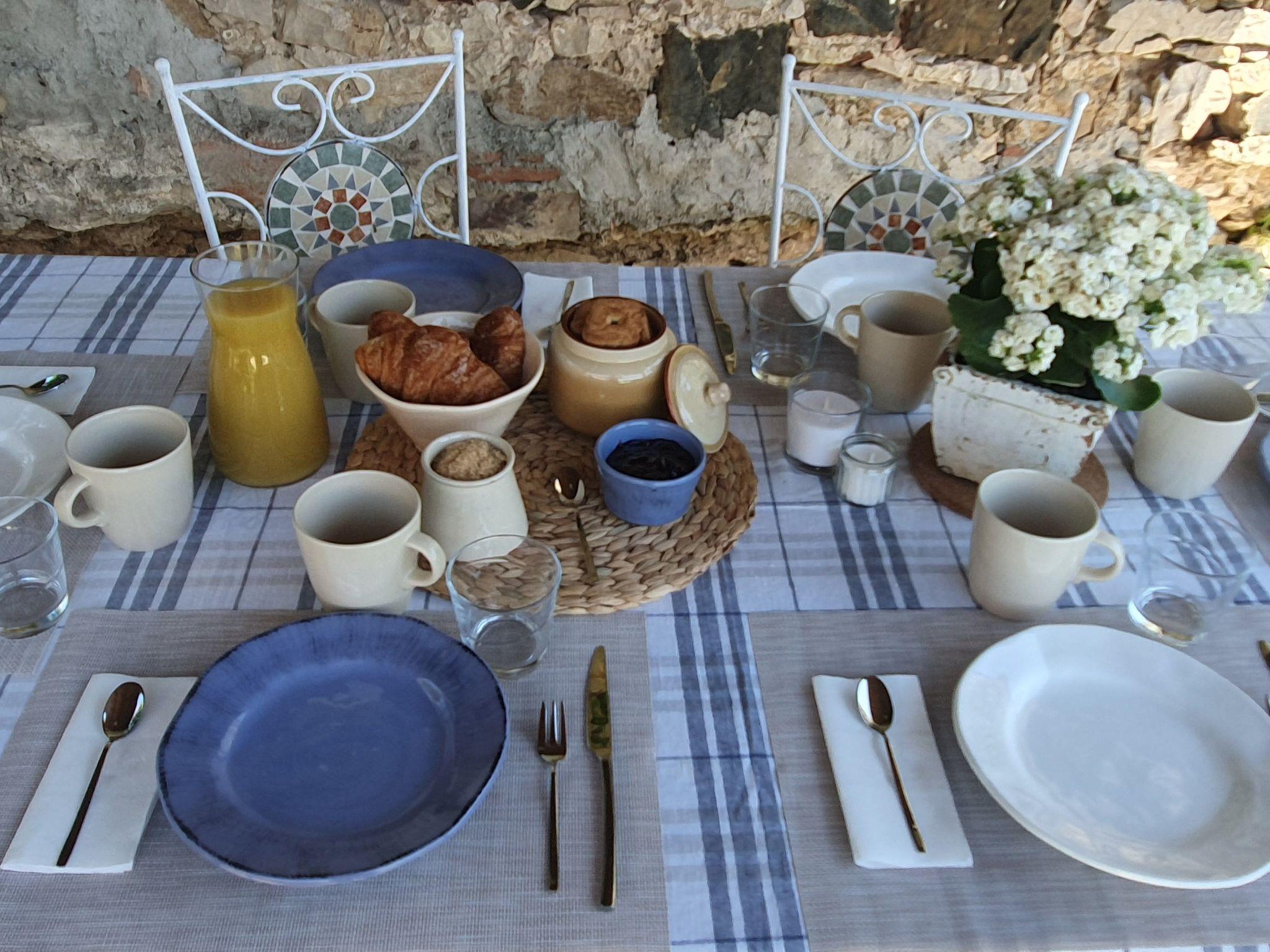 The accommodation is suitable for six or seven people. The layout of the house is comfortable. There are three spacious bedrooms, two of which are double and one with two single beds. An extra bed can be added on request. The bathroom is spacious and equipped with a bathtub. There is also a guest bathroom. The large kitchen offers plenty of space and is furnished with a table and chairs next to the kitchenette. The large living room is equipped with armchairs, sofa, TV with DVD and a fireplace. So, as you see, TV and Wi-Fi are available, but you can choose if you prefer to enjoy the peace and quiet of this charming village.