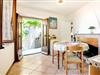 På 1. etage: (åbent køkken(komfur(Komfur med fire kogeplader), ovn, mikrobølgeovn, køleskab), stue / spisestue(enkeltsovesofa, Fjernsyn, spisebord, pejs), soveværelse(dobbeltseng), badeværelse(bruser, håndvask, toilet)) varme(træ), varme(central, gas), terrasse(privat), have(privat), havemøbler
