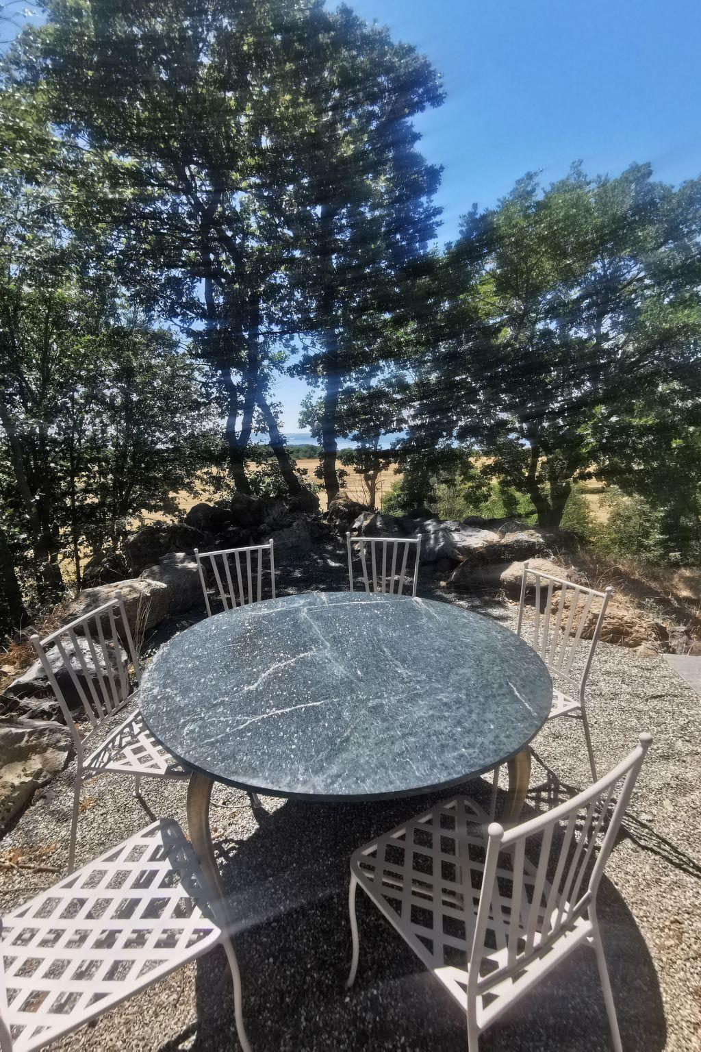 4-room house 130 m2 on 2 levels. Comfortable and stylish furnishings: dining room with open fireplace, kitchenette and shower/bidet/WC. 1 double bedroom with shower/bidet/WC and TV (flat screen). Exit to the garden. Kitchenette (4 hotplates, oven, dishwasher, toaster, electric coffee machine). Electric heating, air conditioning. Upper floor: 2 double bedrooms, each room with shower/bidet/WC and TV (flat screen). Exit to terrace. 2 covered terraces, outdoor seating area 10 m2, covered, large outdoor seating area 60 m2, covered. Terrace furniture. Nice view of the landscape. Facilities: washing machine, mosquito nets, hairdryer. Internet (wifi).