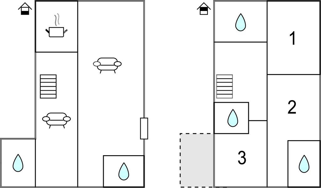 Soveværelse 14m2 (nr. 1) - 1 Soveplads. (Enkeltseng(e)). 2 Sovepladser. (Dobbeltseng(e)).