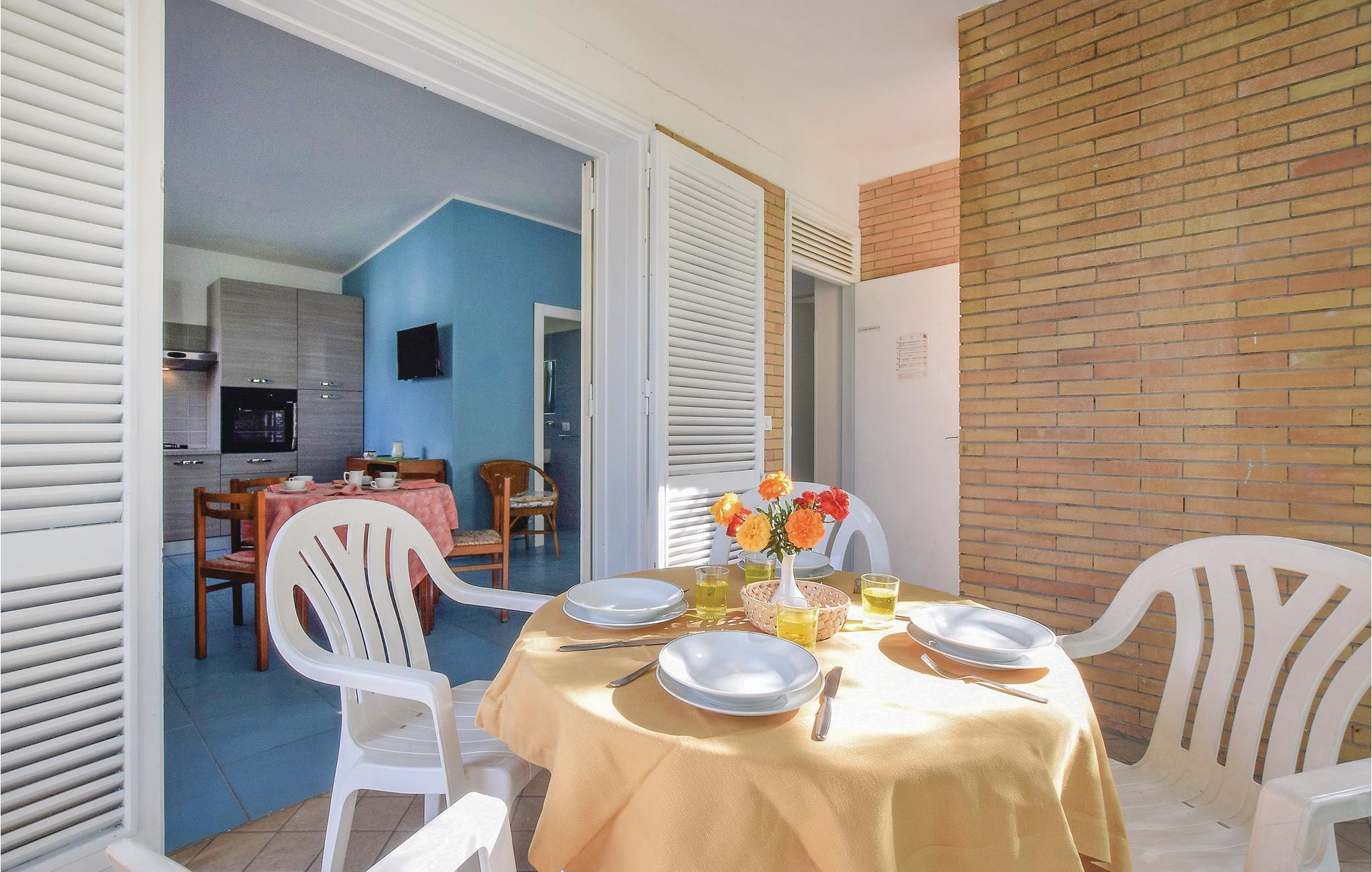 Ferielejlighed i et tofamiliershus i et boliganlæg med svømmebad i udkanten af naturparken Roccamonfina. Den ligger i hjertet af en stor fyrreskov ved havet på 18 ha - perfekt til løbeture. Børnefamilier kan se frem til et hav af aktiviteter så som tennisbane, basketball, fodbold, minigolf, bordtennis og bowling. Ud over løb og vandreture er området velegnet til cykelture. Cykler kan lejes i landsbyen. Stranden ligger ligeledes kun 100 m fra huset.
