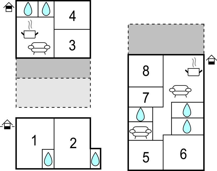 Soveværelse (nr. 8) - 1 Soveplads. (Enkeltseng(e)). 2 Sovepladser. (Dobbeltseng(e)).