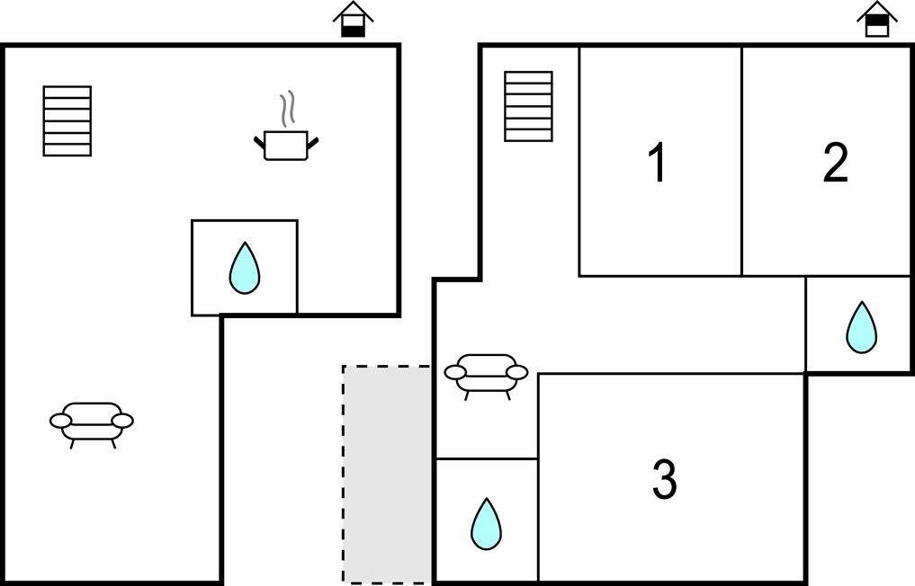 Opholdsstue 50m2 - 2 Sovepladser. (Sofa, madras eller lignende).