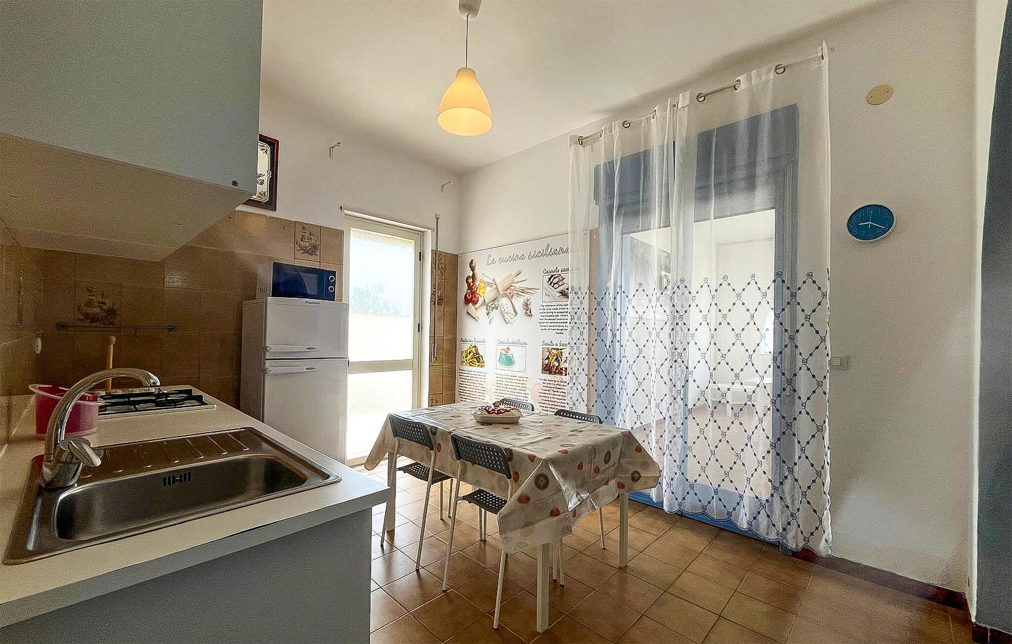 Kun en kort gåtur fra de lange, familievenlige strande i Balestrate byder denne rummelige ferielejlighed jer velkommen med en frisk og venlig atmosfære. Føl jer hjemme, mens I tilbereder lækre måltider med friske råvarer sammen med familien, planlægger jeres aktiviteter og afslutter en begivenhedsrig dag med en harmonisk aften med spil.