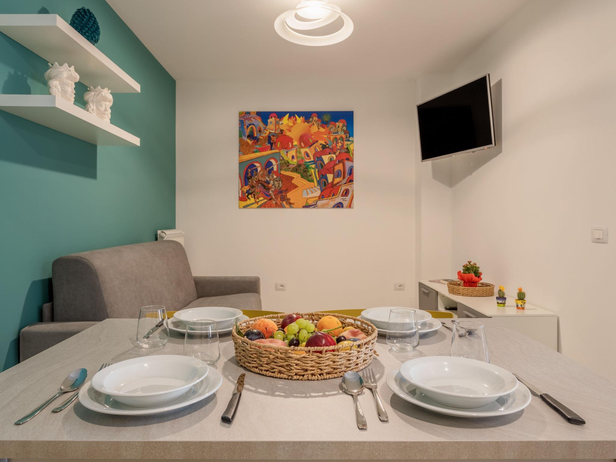 "Palermo", 2-room apartment 60 m2 on 1st floor. Comfortable and modern furnishings: large living/dining room with 2 double sofabeds and satellite TV (flat screen), air conditioning and forced-air heating. Exit to the terrace. 1 double bedroom with satellite TV, air conditioning and forced-air heating. Kitchenette (4 hot plates, oven, toaster, kettle, microwave, electric coffee machine). Shower/bidet/WC. Heating, forced-air heating. Heating available only from 01.12. to 31.03. Terrace 4 m2, roofed. Terrace furniture. Facilities: washing machine, safe, iron, children's high chair, baby cot for up to 2 year olds (extra), hair dryer. Internet (WiFi, free). Please note: non-smoking house. Smoke alarm, fire extinguisher. IT082007B4I4YZ6YYU