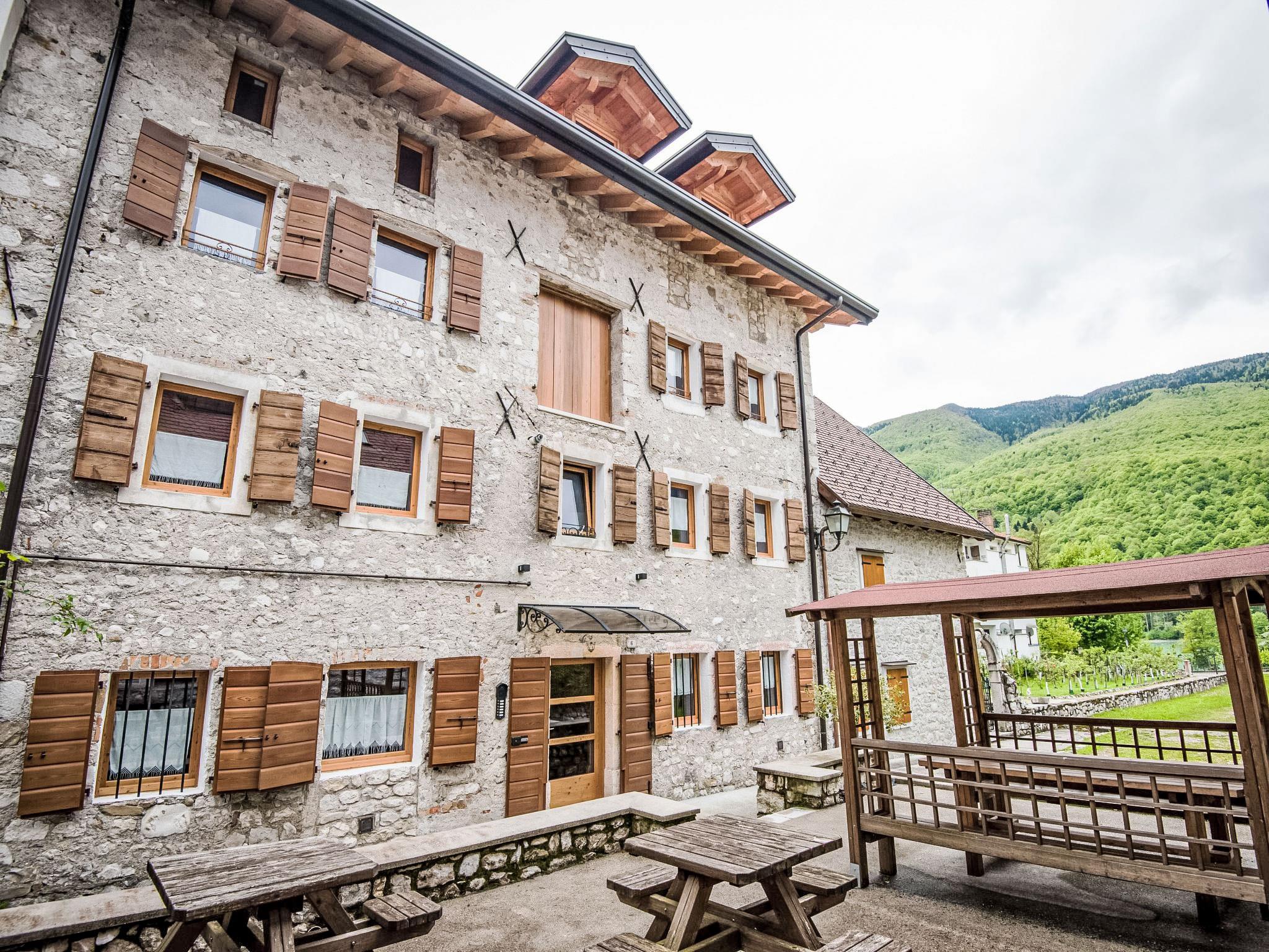 Beautiful, rustic apartment house "Albergo Diffuso - Cjasa Ustin", 409 m a.s.l., 3 storeys, renovated in 2012. 5 apartments in the property. In the resort Barcis, in a quiet, sunny position, 100 m from the lake, 15 km from the skiing area. For shared use: property, garden. Pergola, garden furniture, barbecue. In the house: storage room for skis, central heating system. Linen change daily (suppl. charge extra). Towel change daily (suppl. charge extra). Room cleaning daily on request (extra). In Winter: please take snow chains. Parking on the premises, public parking on the road. Supermarket 300 m, restaurant 100 m, bar, café 50 m, bus stop 250 m, bathing lake "Barcis" 100 m. Golf course (18 hole) 23 km, walking paths from the house 1 km, cycle lane 1 km. Nearby attractions: Parco Naturale Dolomiti Friulane, Riserva Naturale Forra del Cellina. Well-known ski regions can easily be reached: Piancavallo 15 km. Please note: no lift. Additional accommodations can be booked.