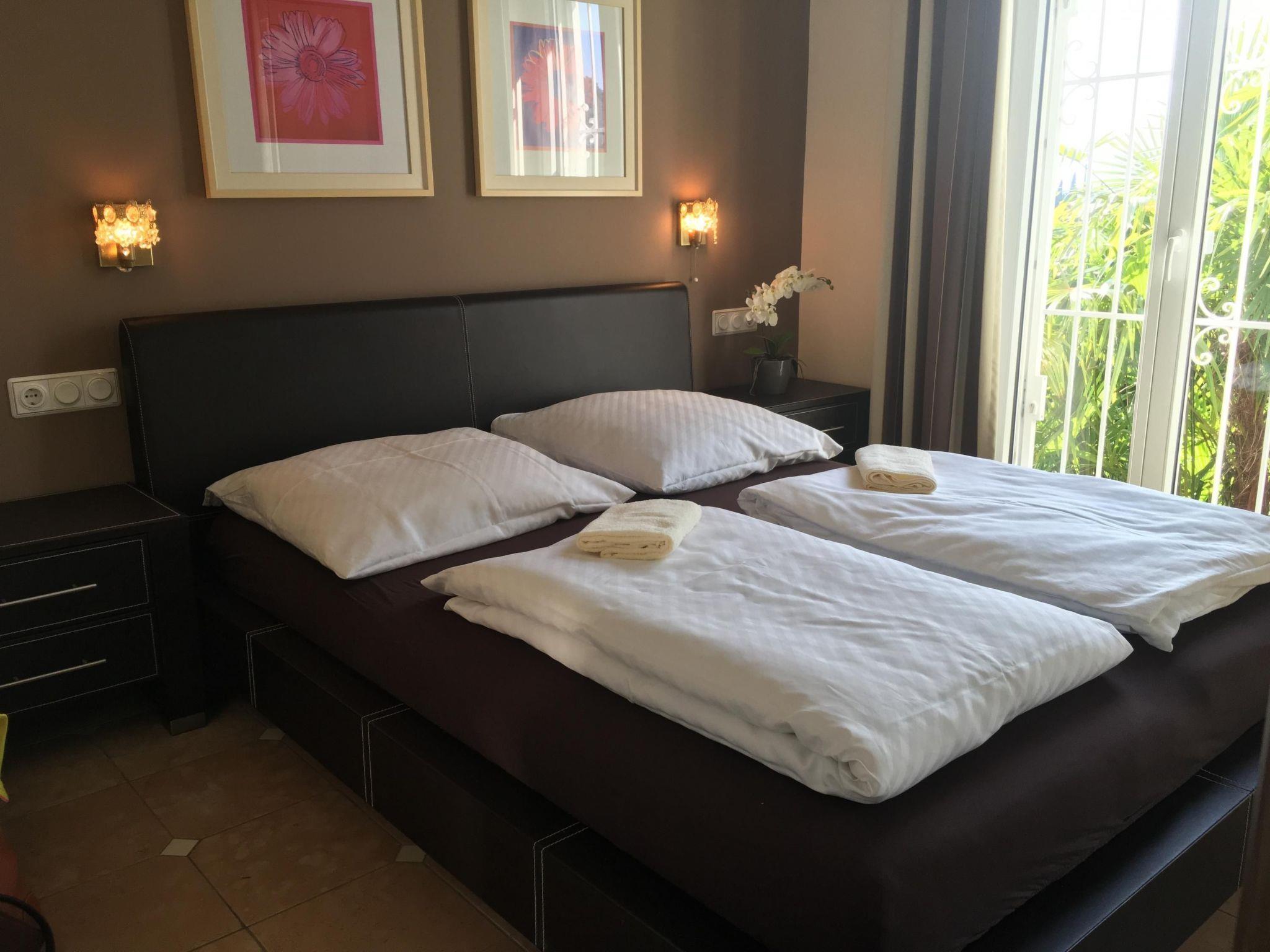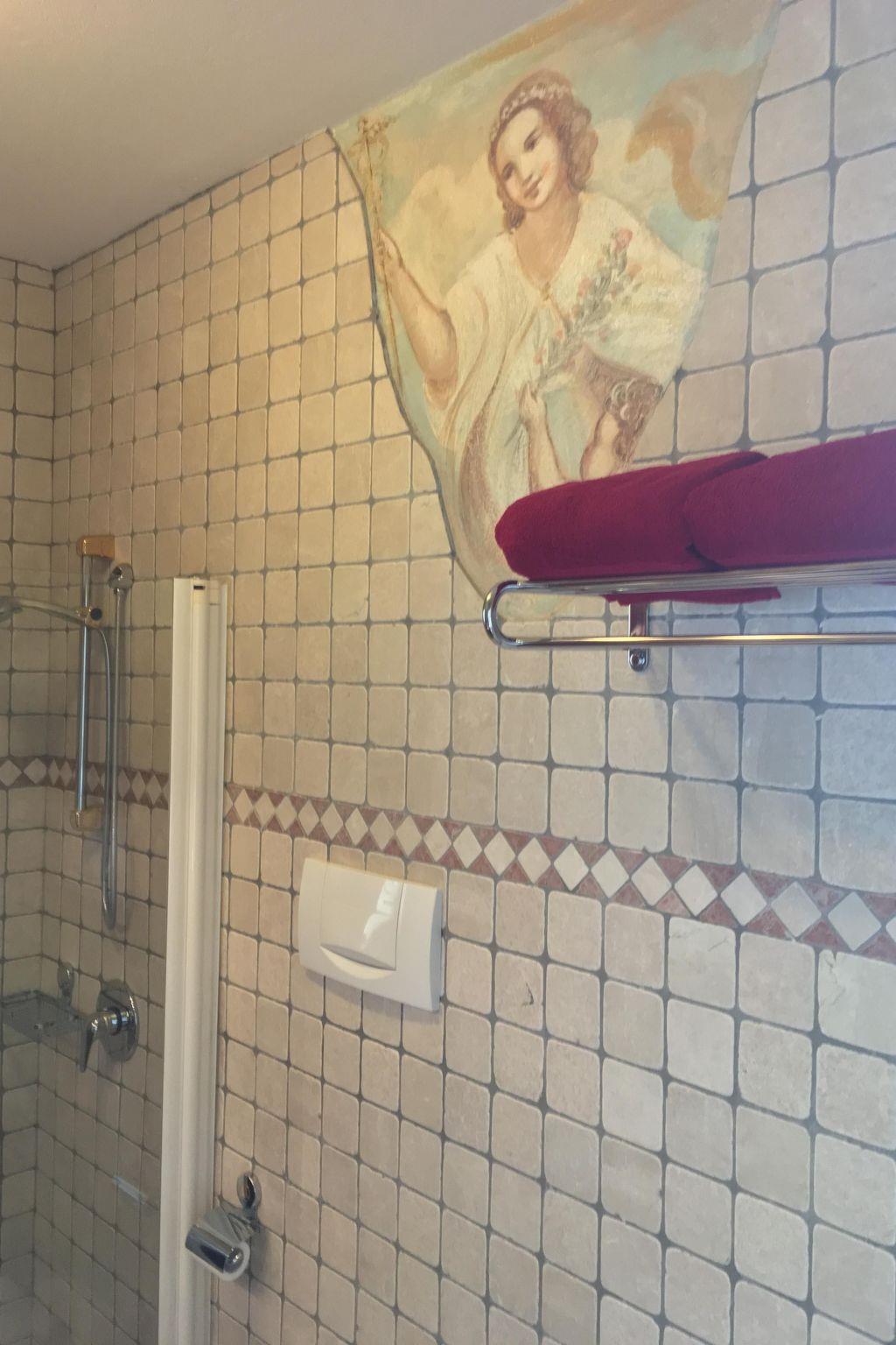 The panoramic terrace affords a grandiose view of Lake Garda. The terrace has a brick-built, open grill fireplace, lovely seating with cushions, a big table and a parasol shading the whole table. The house has window grids for your safety, also during your absence. The completely fenced garden of 600m² with a big palm tree is right in front of the terrace. Steps lead conveniently to the big shared pool, used by nine apartments and not crowded. The pool area is very well-maintained and is taken care of several times a week by a specialist company. It is open from around mid-May to the end of September. Cars can be parked conveniently and securely in the big double garage for two cars, with an electronic garage door.