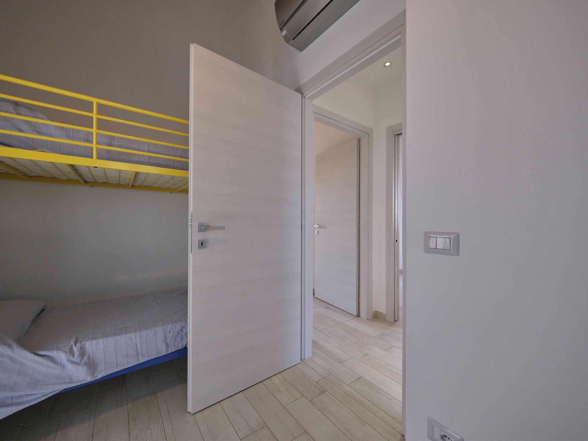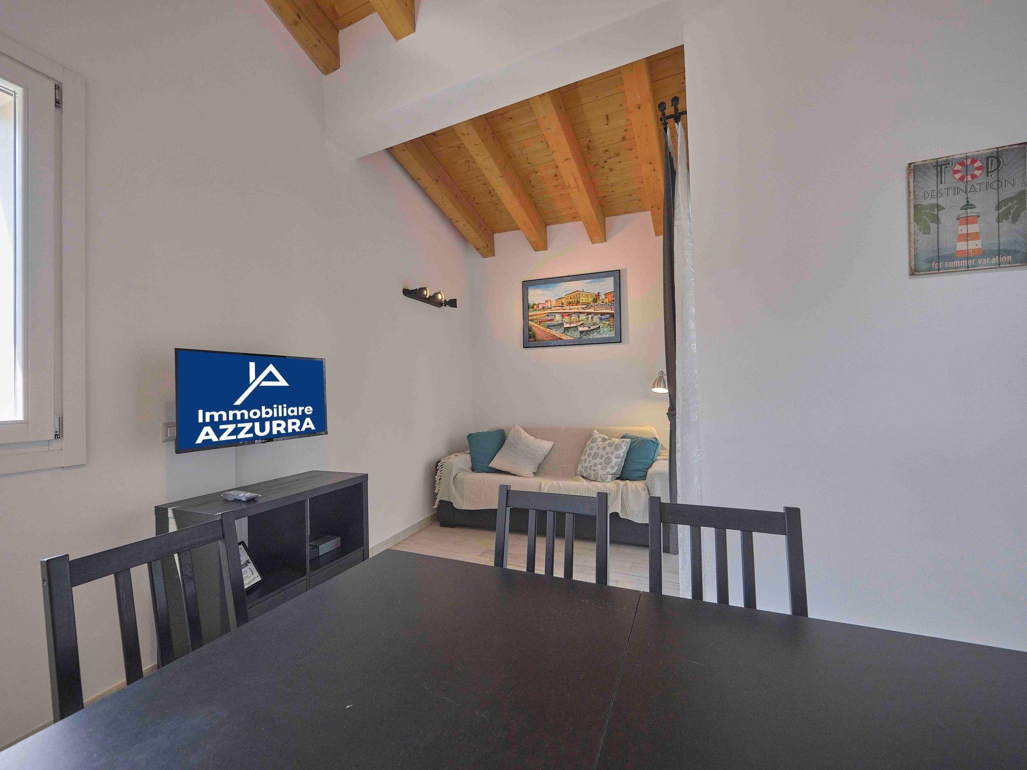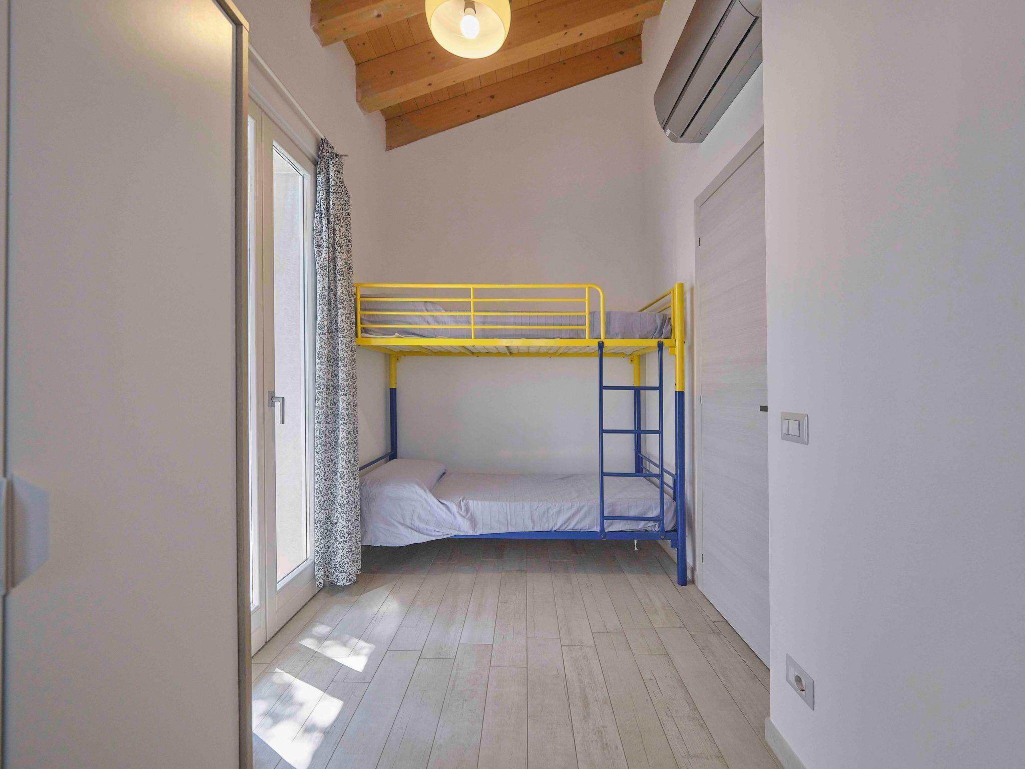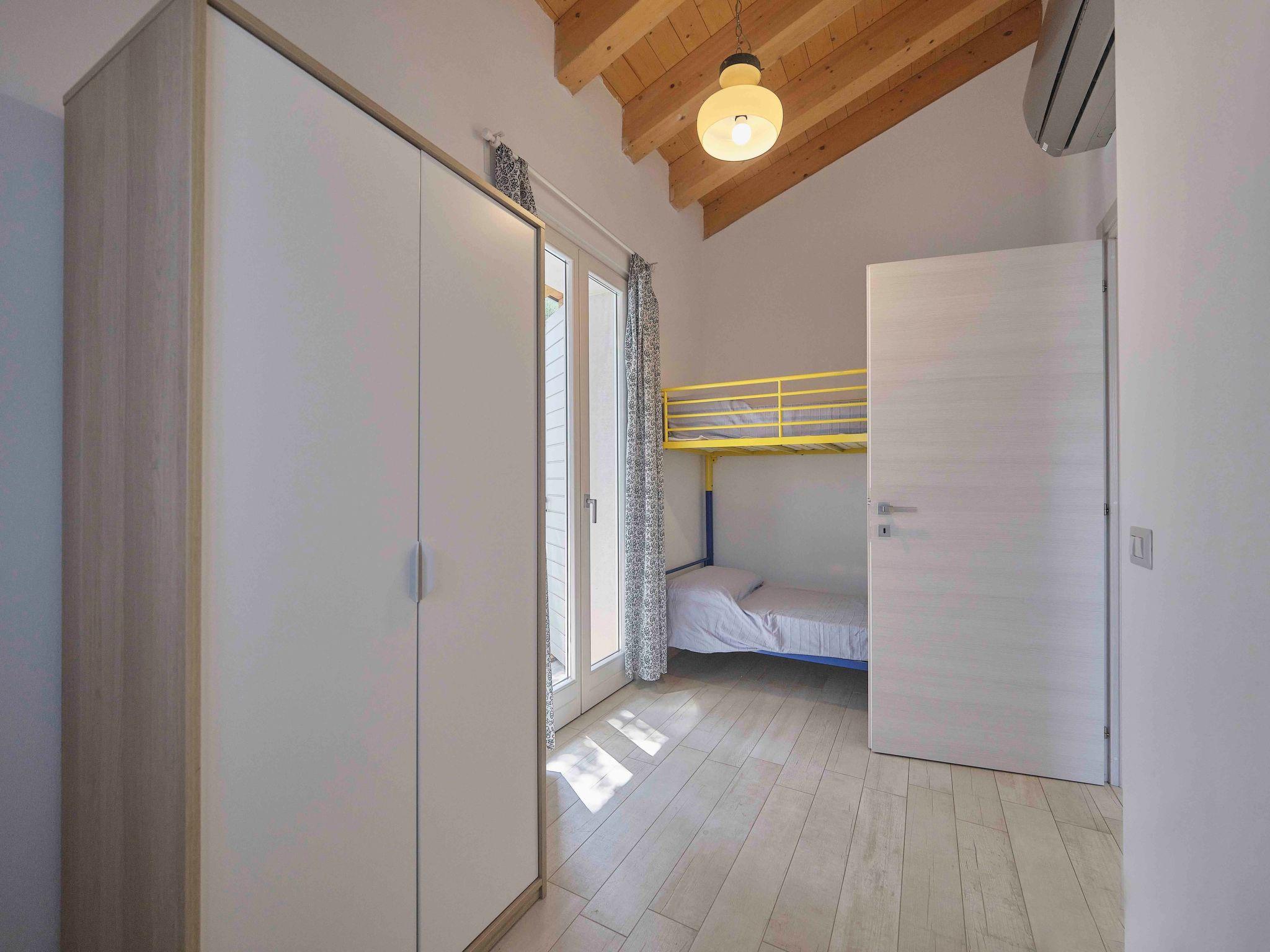 Inside, the cottage has all the necessary comforts for a pleasant and carefree stay. You will find a cosy living room with a 140 cm wide sofa bed, perfect for relaxing after a day spent exploring the surroundings. The kitchenette, complete with washing machine, will allow you to prepare your own meals. With a double bedroom and a small bedroom with 2 bunk beds, the cottage can comfortably accommodate up to 6 people. A windowed bathroom and a porch area complete the interior of the house, which is also equipped with satellite TV, wifi and air conditioning to ensure maximum comfort at all times.