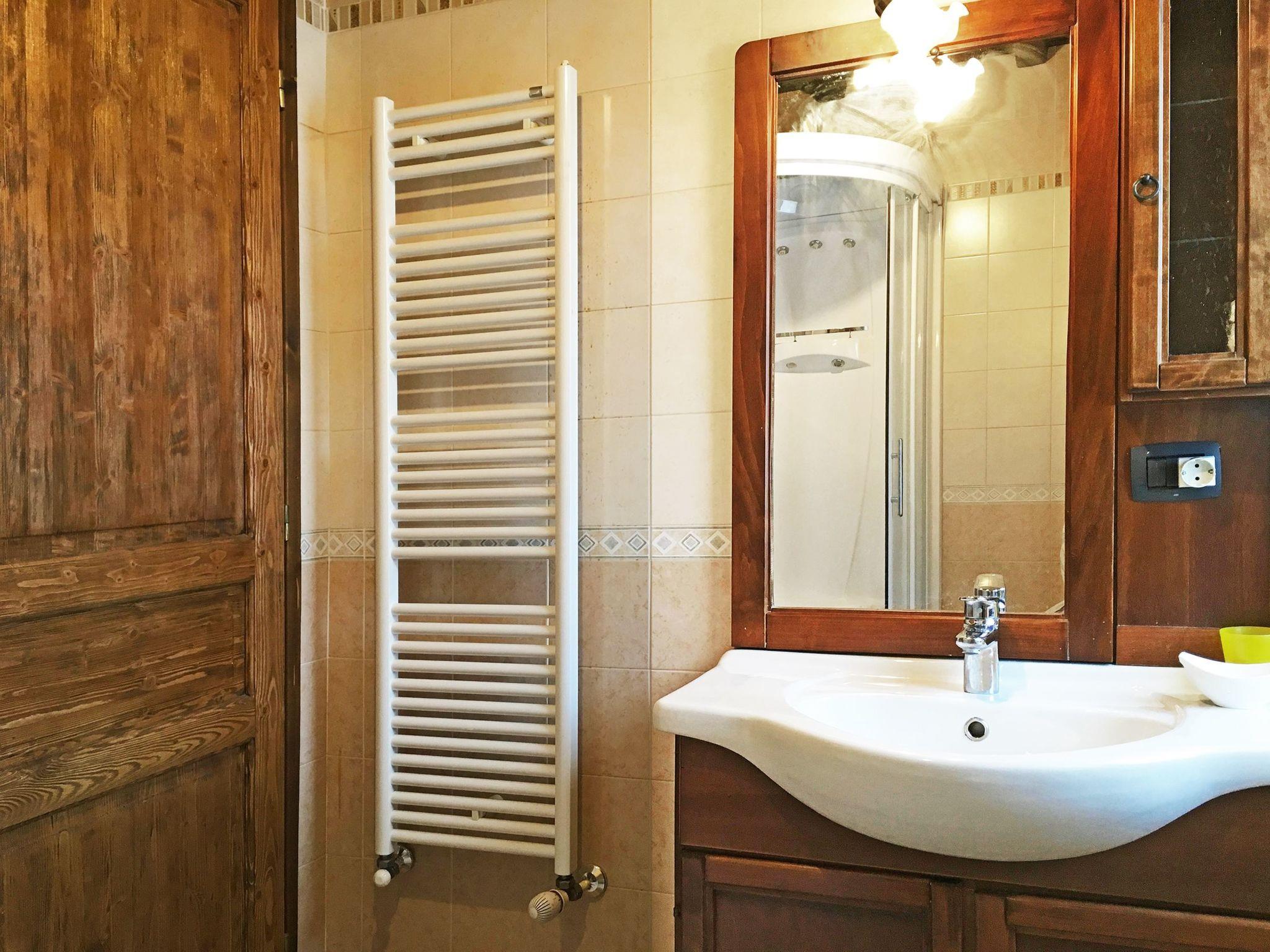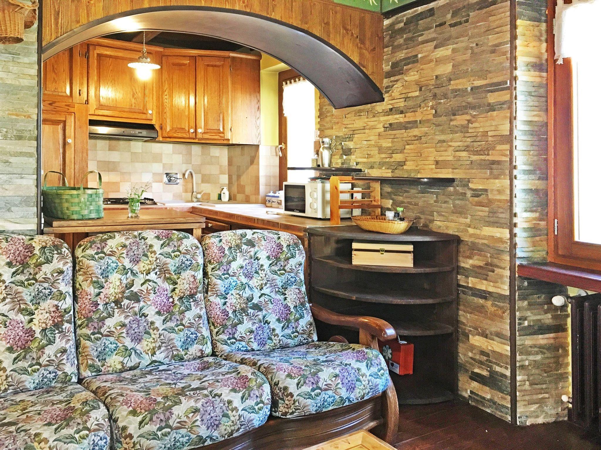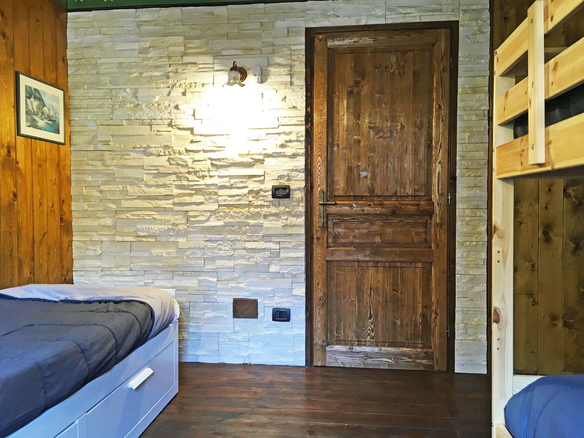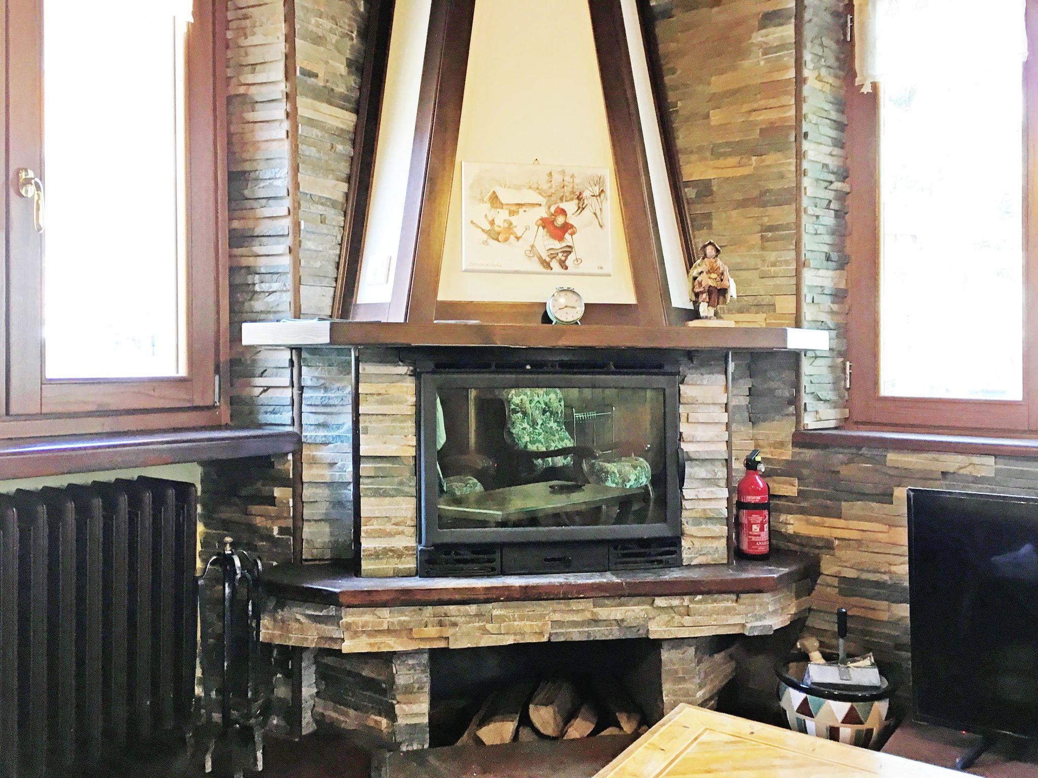 The flat is particularly appreciated for the mountain style of the interior decorations in wood and stone and for the precious fireplace in the living room.