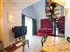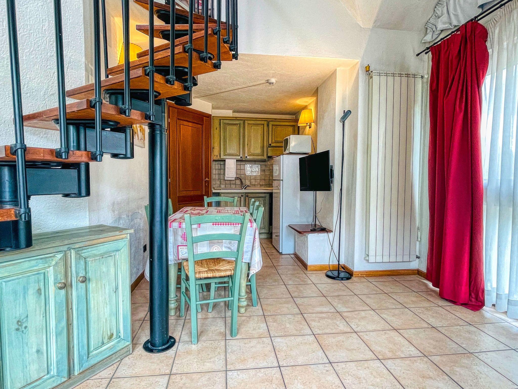 The three-room loft apartment is on two levels: living room downstairs (with double sofa bed) and stairs leading to the loft with double bed. The loft leads to the second small room separated by a door, with two single beds. Bath/bed linen is provided free of charge, as well as wi-fi, TV, covered garage, ski-room, sauna, gym, children's play area and a communal washing machine. The kitchenette is equipped with electric hotplates and is supplied with pots and pans/cutlery. in the bathroom there is a shower and hairdryer.
