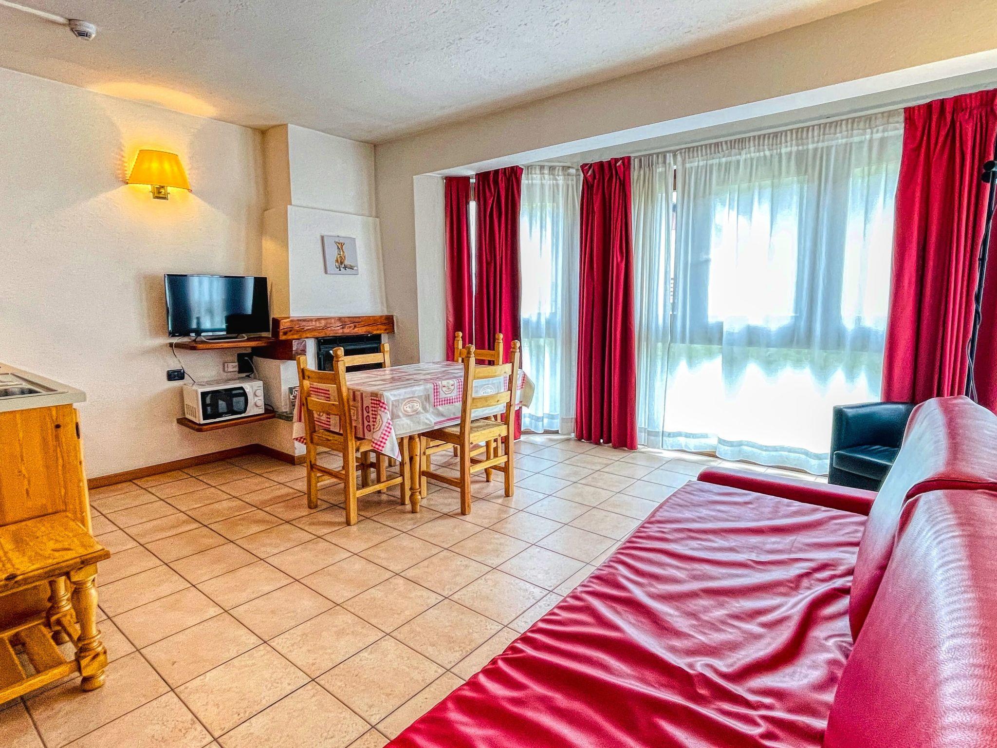 The 'classic' two-room apartments consist of a living room and a bedroom separated by a door. These flats have a fireplace in the living room (wood can be purchased at reception). Bathroom/bed linen is provided free of charge (changed weekly), as is Wi-Fi, TV, covered garage, ski room, sauna, gym, children's play area and a communal washing machine. The kitchenette is equipped with electric hotplates and pots and pans/cutlery. in the bathroom there is a shower and hairdryer.