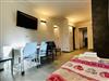 Inside, each 2-room apartment, available on the 1st and 2nd floors with convenient lift access, offers everything you need for an unforgettable stay. Guests can relax in a cosy living room equipped with a kitchenette, table and single sofa bed, as well as enjoy a peaceful rest in the separate bedroom, which accommodates a double bed and a single bed. Comfort is ensured by amenities such as a private bathroom with shower cubicle, hairdryer, and bathroom and bed linen provided weekly.