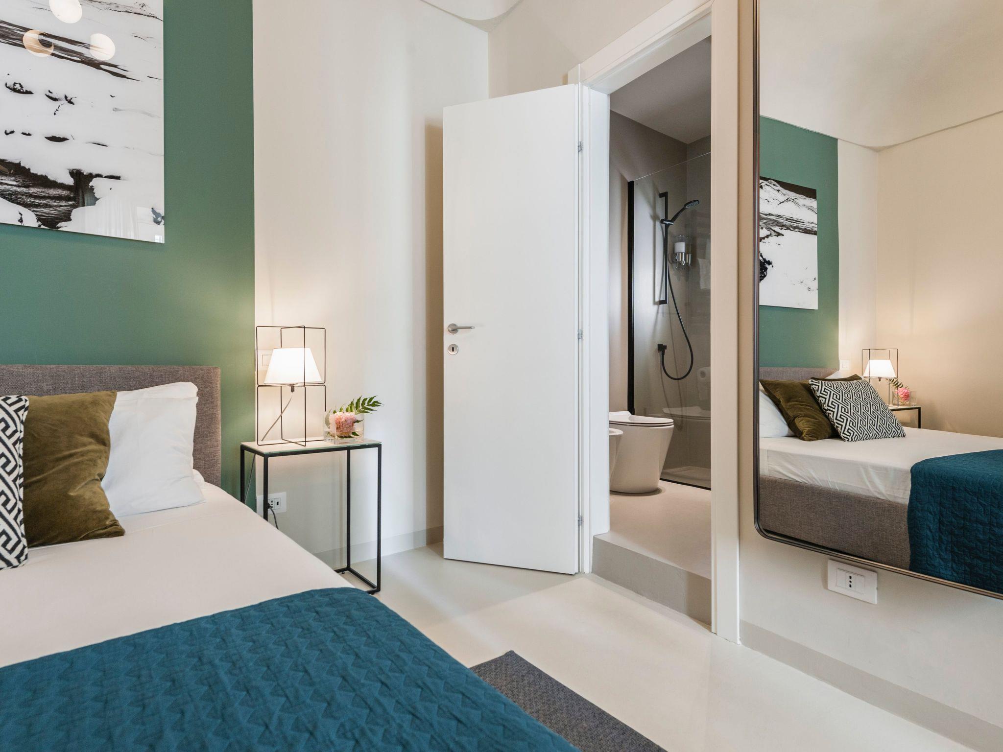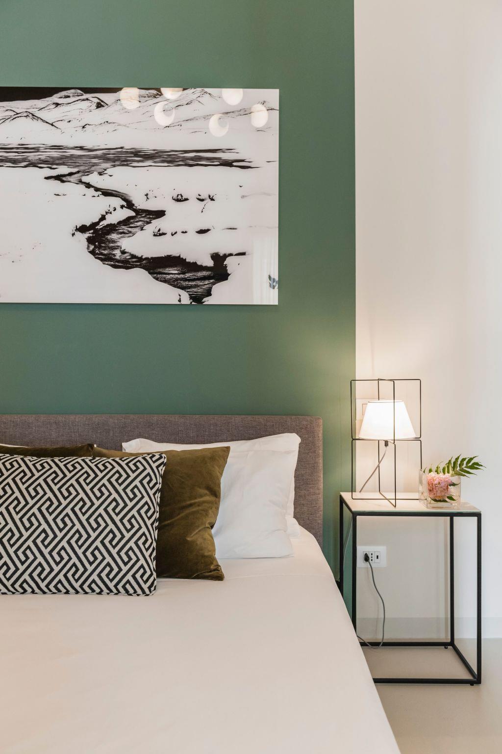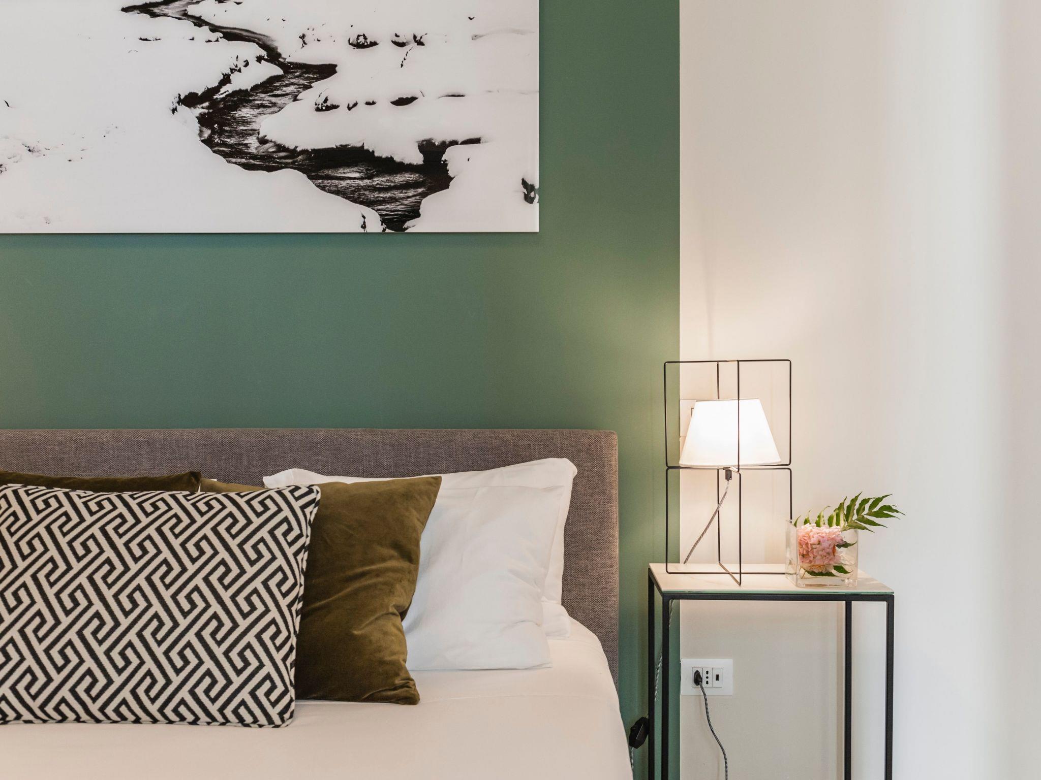 - on the first floor the kitchen equipped with everything you need to cook and eat in comfort; then the large and bright living area with a double sofa bed and bathroom; finally the "Green Room", a bedroom characterised by a soft minimal style, enriched by a bathroom and a walk-in wardrobe that also serves as a convenient laundry room complete with tumble dryer and iron;-