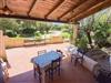 It consists of 2 covered outdoor terraces, both equipped with table, chairs and benches - a large garden with green lawn, palm trees, pine trees and Mediterranean maquis