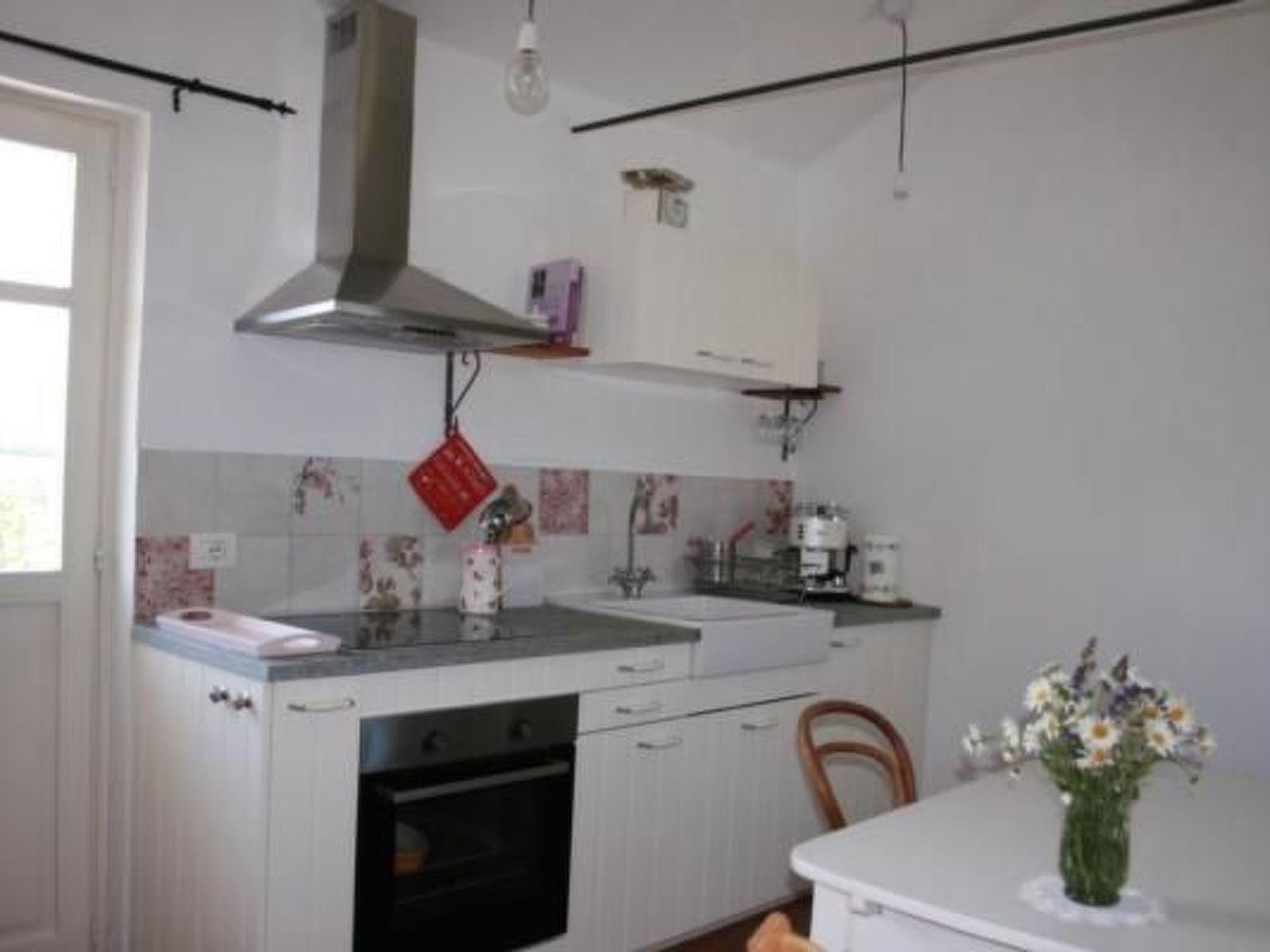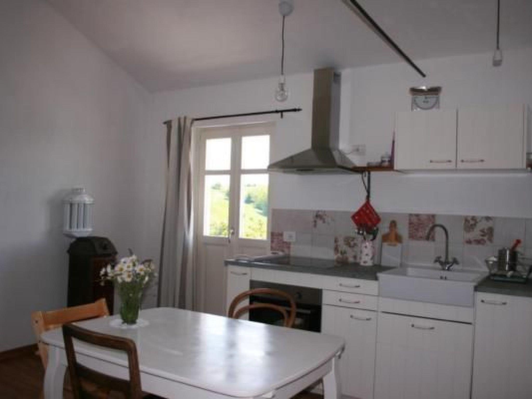 Downstairs with 1 bedroom and 1 adjoining small room for children. Direct access to the covered seating area with unobstructed views of the vineyards and the Alps. On the upper floor (entrance area) is a living room with integrated kitchen and pull-out sofa and a bathroom with shower. In the living room is the exit to the terrace.