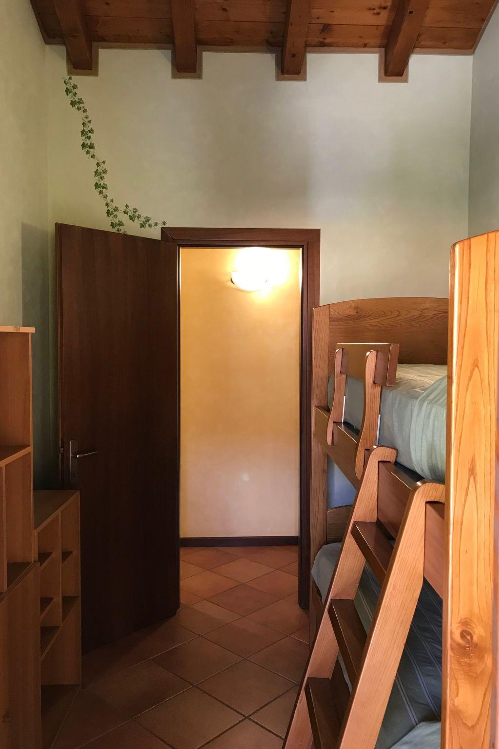 The flat is spread over two floors, is equipped with bed linen and towels, can accommodate up to five people and consists of a double bedroom, a bedroom with bunk beds, a bathroom, living room and kitchenette on the first floor; the entrance hall with a sofa bed and a small bathroom on the ground floor.