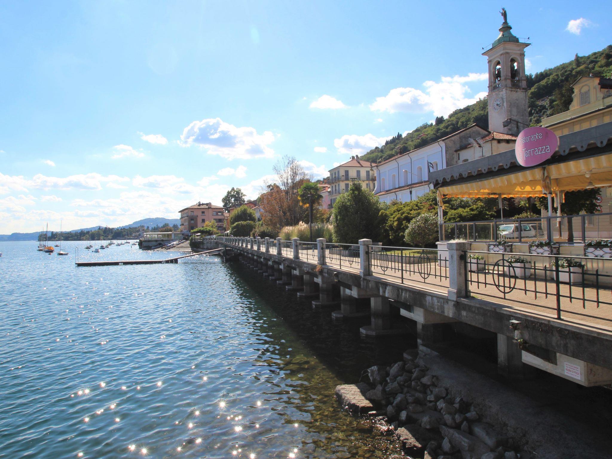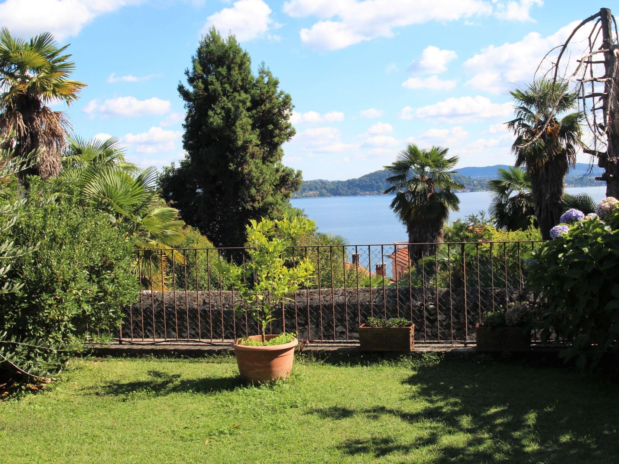 Apartment house. 6 apartments in the property. Belgirate, 6.5 km from the centre of Stresa, 11 km from the centre of Arona, on a slope, 100 m from the lake, 400 m from the beach. Private: well-kept garden 300 m2 (fenced) with lawn and wildlife garden. 250 m long narrow motor access to the house. 100 m footpath to the house. Width of access road: 180 cm. Public parking 100 m. Grocery 200 m, restaurant 300 m, bus stop 140 m, railway station "Belgirate" 600 m, grass beach 400 m. Please note: Loading and unloading of baggage is possible at the holiday house. Railway line 80 m from the property.