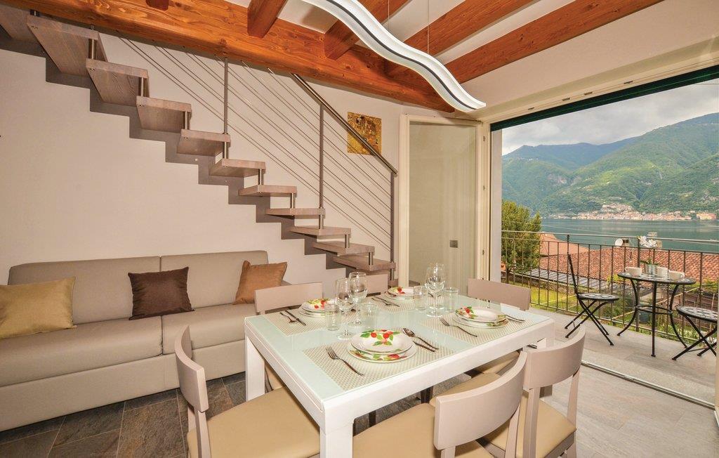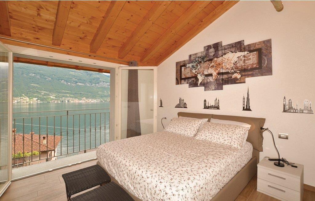 Ferielejlighed i den lille by Lezzeno, kun 50 meter fra bredden af Comosøen. Lejligheden er fordelt på 2 etager. I stueetagen: Stue med satellit-tv og tekøkken, terrasse med søudsigt, et soveværelse med dobbeltseng og badeværelse med bruser. På 1. sal: Dobbeltværelse med lille altan med panoramaudsigt over søen, stort værelse med 2 sovesofaer og et badeværelse med bruser. Fra boligen fører et vej gennem skoven ned til søen. Beliggenheden giver mulighed for at tage ture på utallige vandrestier i de omkringliggende bjerge. Reserveret parkering. Wi-Fi-forbindelse. Afstande: Købmand, apotek og restaurant, busstoppested til Como og Bellagio 50 m. Fra Lezzeno (1 km) kan I tage færgen til de forskellige landsbyer ved søen. Bellagio 8 km, Como 20 km, Lecco 28 km, Milano 69 km.