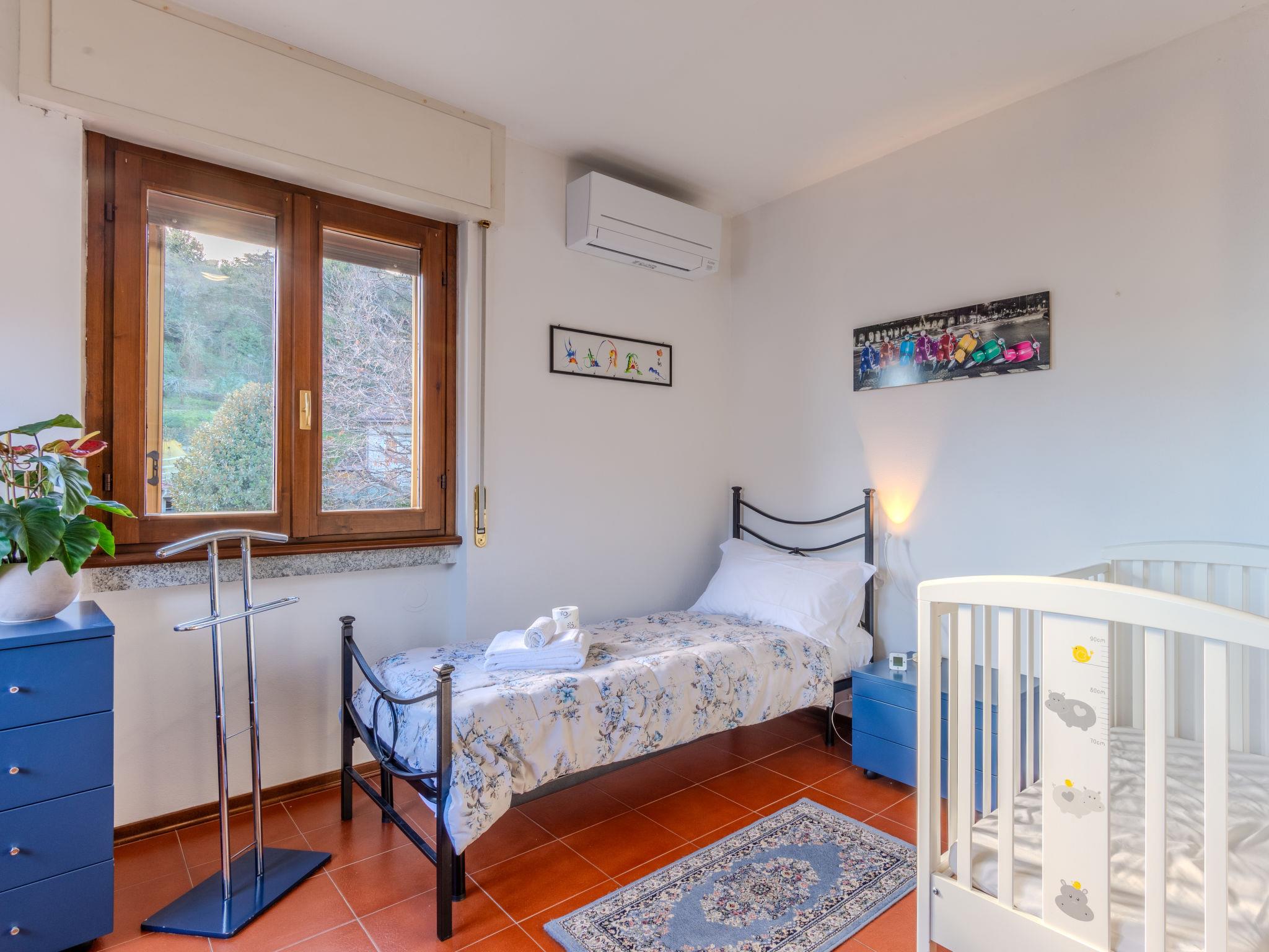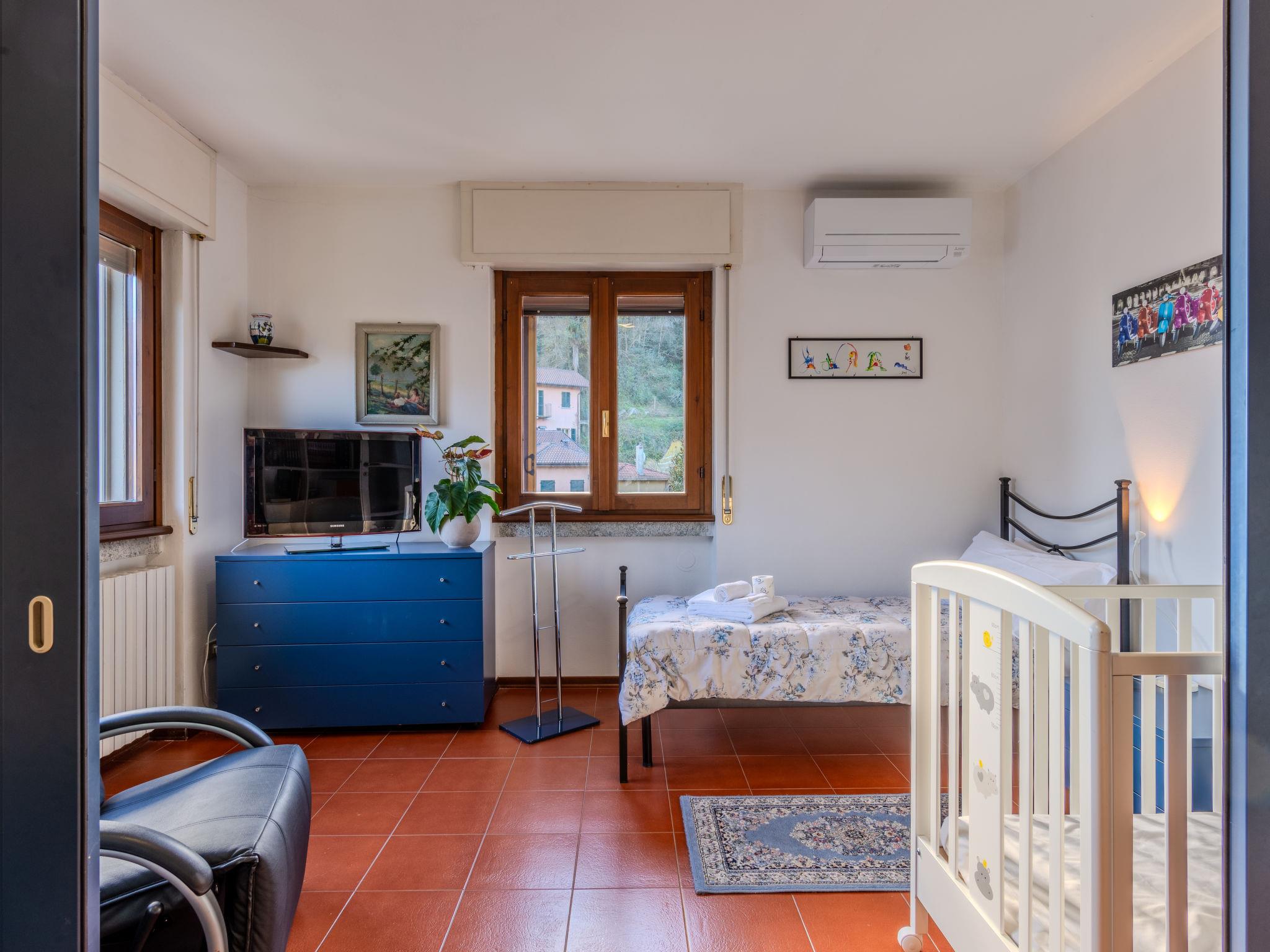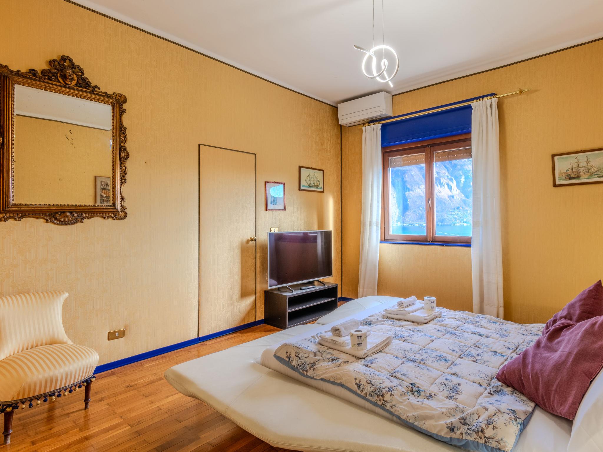 5-room villa 210 m2 on 3 levels. Spacious, comfortable and beautiful furnishings: living/dining room with open-hearth fireplace (only for decoration), dining table and satellite TV. Exit to the balcony. 1 room with Dressing room with 1 double bed (160 cm, length 190 cm), satellite TV. Kitchen (oven, dishwasher, 4 gas rings, toaster, microwave, freezer, electric coffee machine) with small dining table. Exit to the garden. Shower/WC. On the lower ground floor: sep. WC. Upper floor: 1 room with 2 beds. 1 room with 1 double bed (160 cm, length 190 cm), satellite TV. 1 room with 1 bed. Bath/WC. Gas heating (extra), air-conditioning (extra). Parquet floors, natural stone floors. Balcony, terrace, patio. Terrace furniture, balcony furniture, deck chairs (5). Marvellous view of the lake. Facilities: washing machine, iron, children's high chair, baby cot for up to 2 year olds. Internet (WiFi, free). E-charging station. Please note: non-smokers only. Maximum 1 pet/ dog allowed. IT013250C2JHAW3DNG